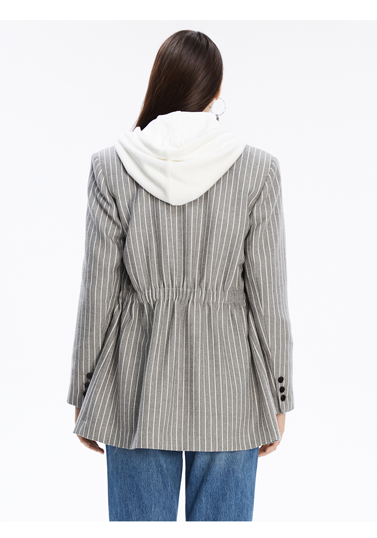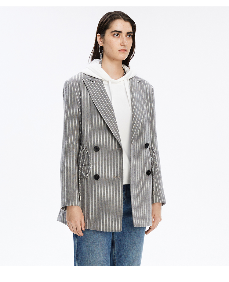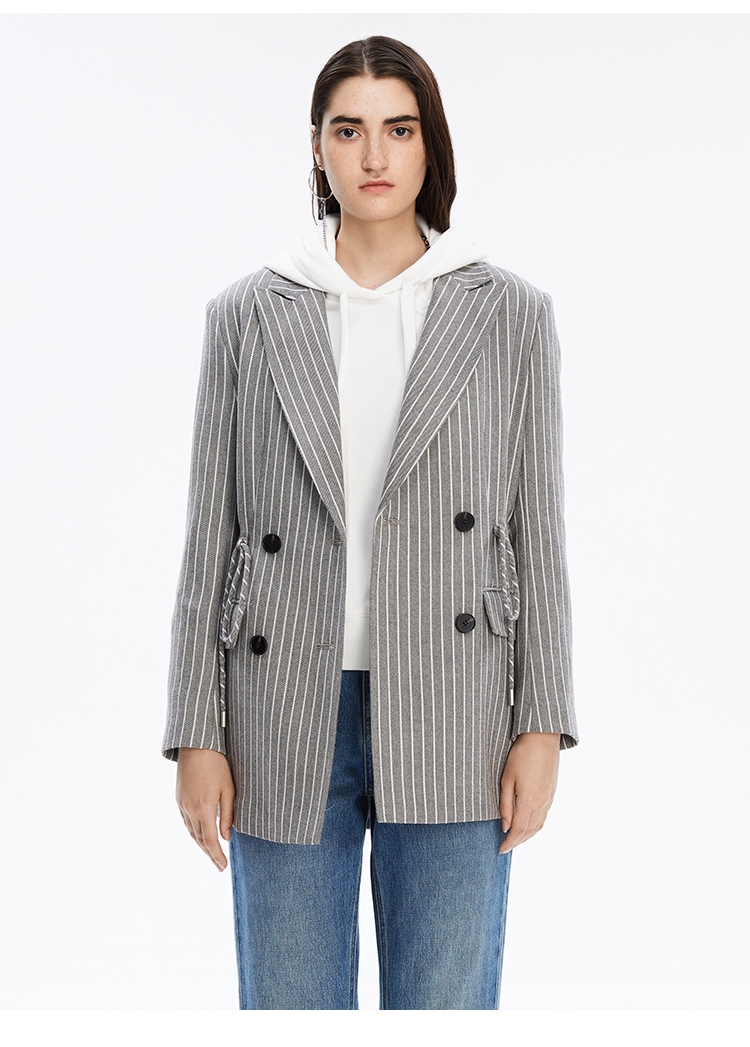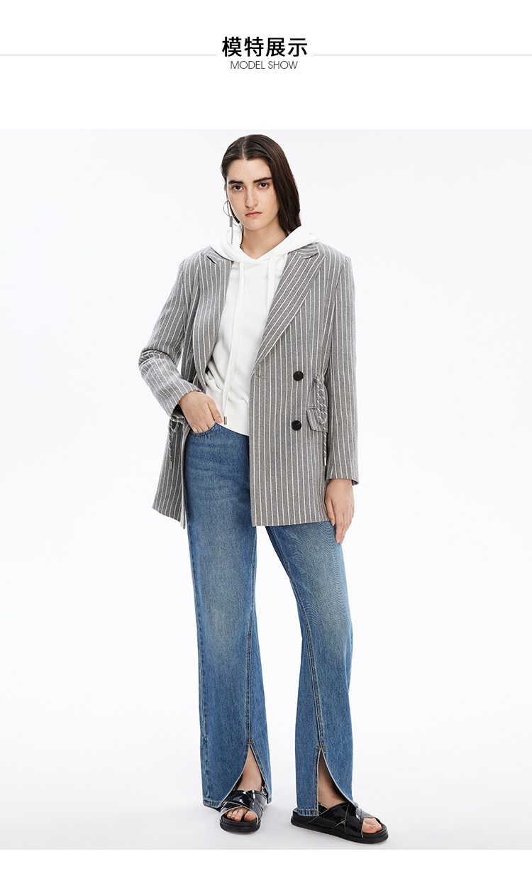 VIMAGE纬漫纪秋冬新款条纹修身休闲女士西装双排扣外套V1603223