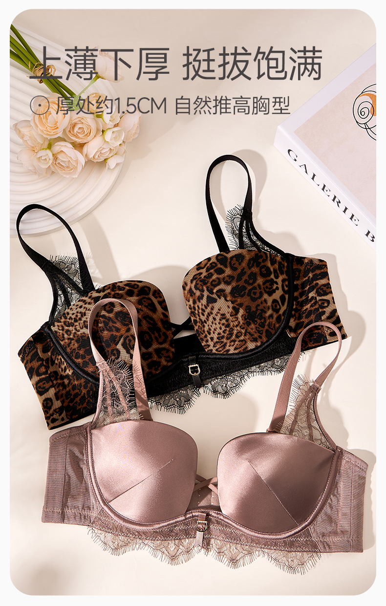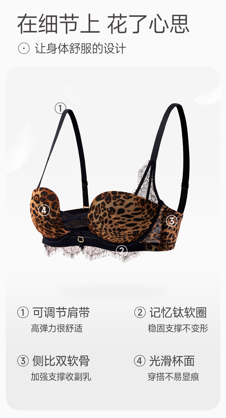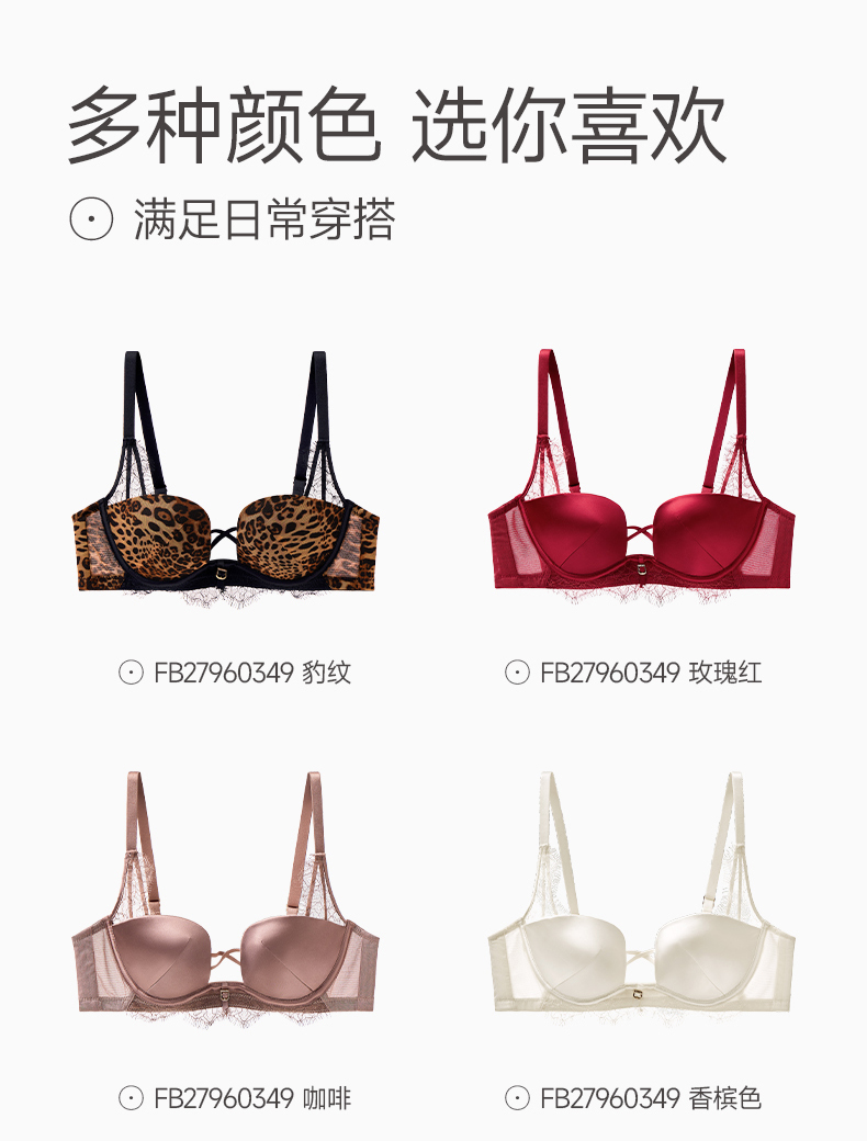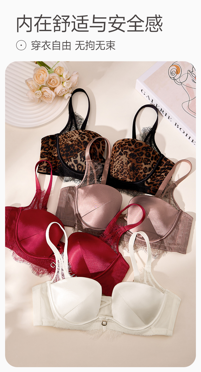 芬腾女士内衣记忆钛软圈性感蕾丝舒适聚拢文胸上托防下垂透气胸罩