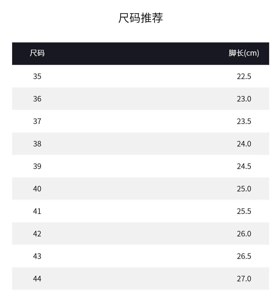 注意事项:鞋子码数为正码!脚大脚宽或者卡码者,建议拍大一码!码数问题不作为质量问题处理售后,介意者慎拍!!