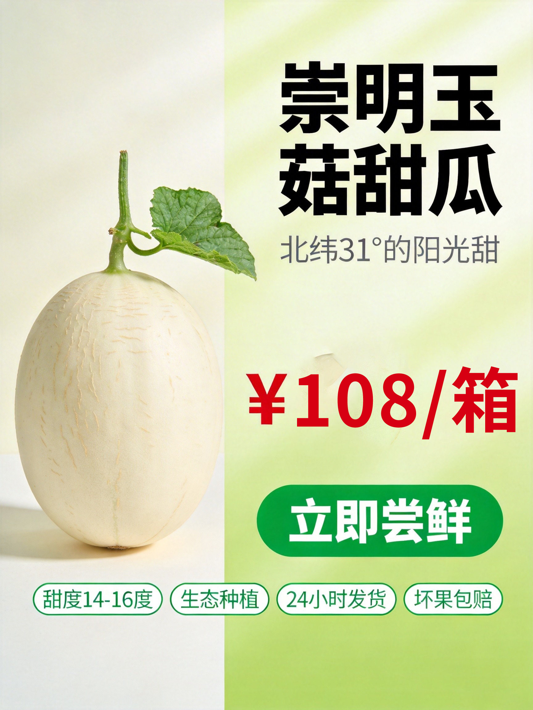 【预售】崇明东滩玉菇甜瓜3-4只/箱(约5kg/箱)根据订单顺序陆续发货