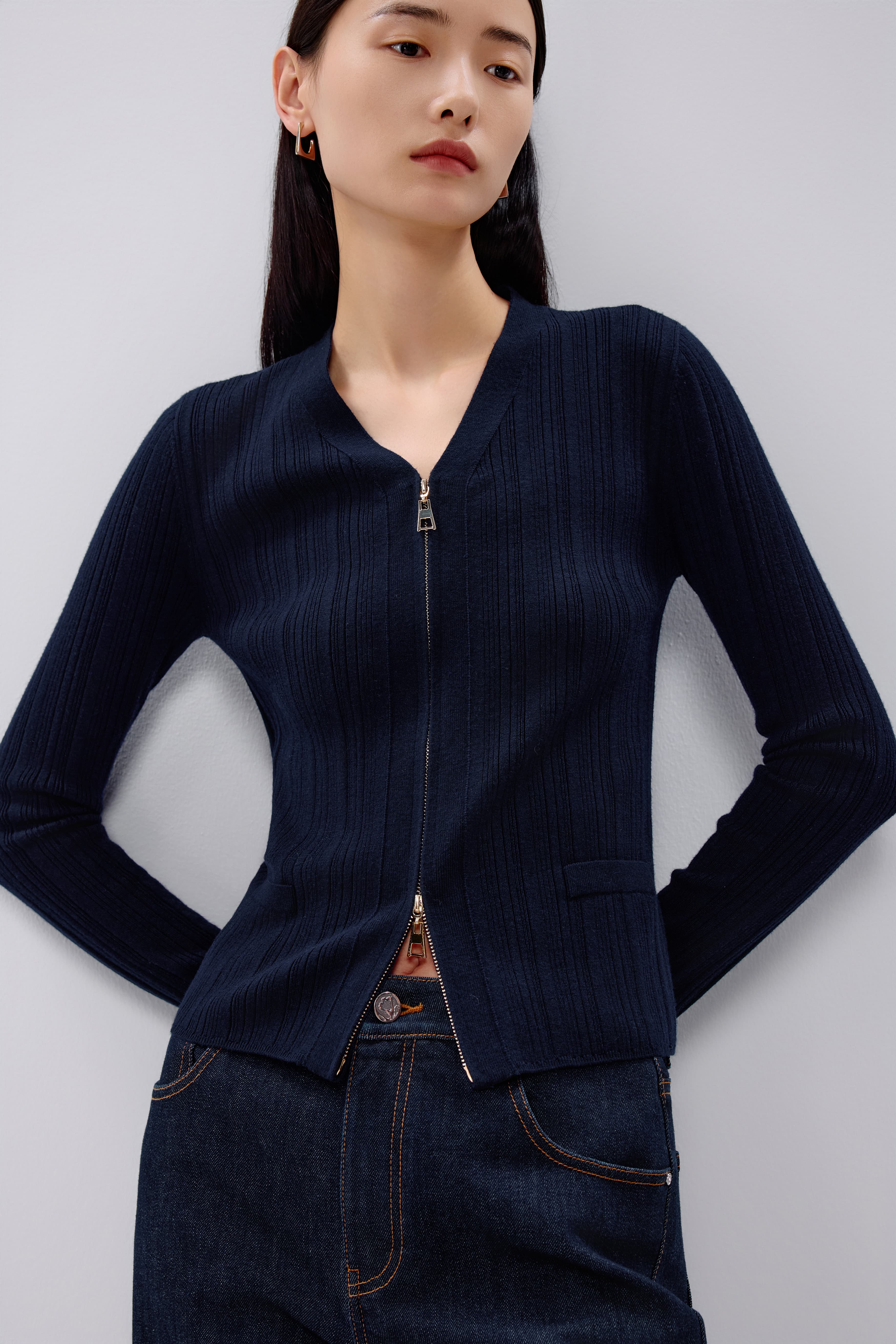 朗姿 针织针织开衫月夜深蓝色LAJK04KCD439A21