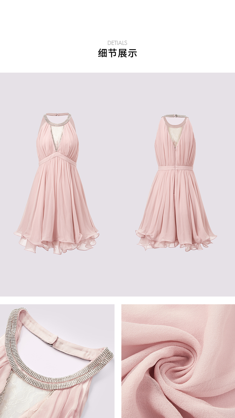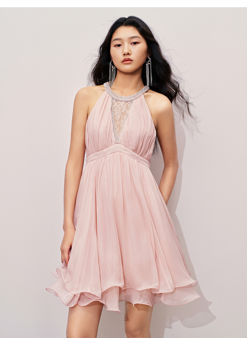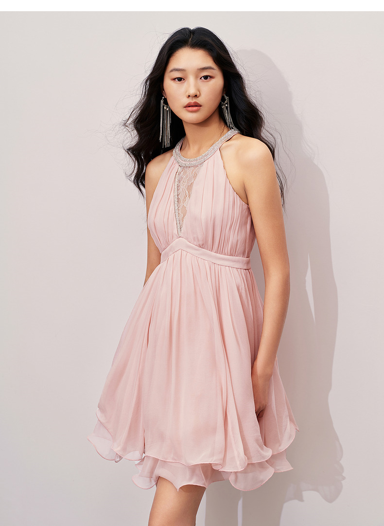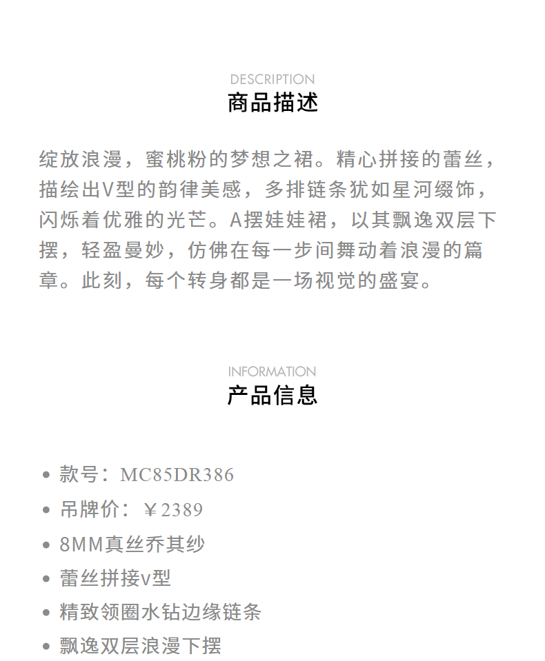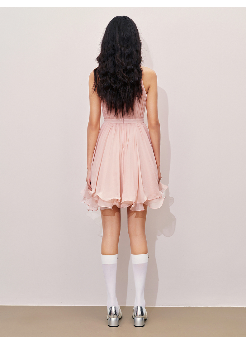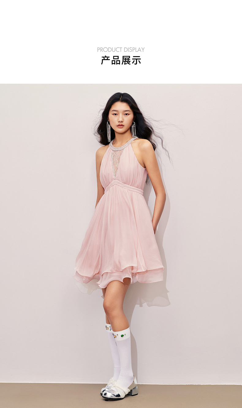 【异域·摩洛哥-商场同款】MAXRIENY优雅浪漫风蜜桃粉A摆娃娃裙(货号:MC85DR386)