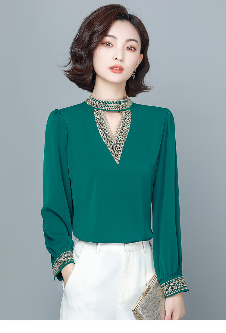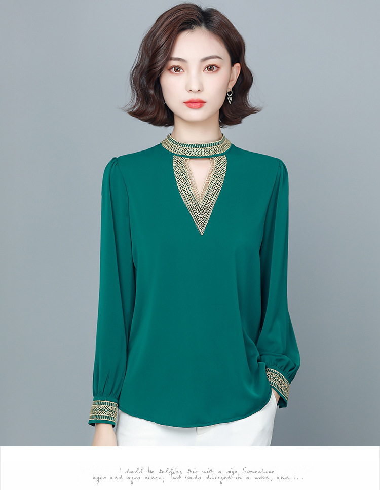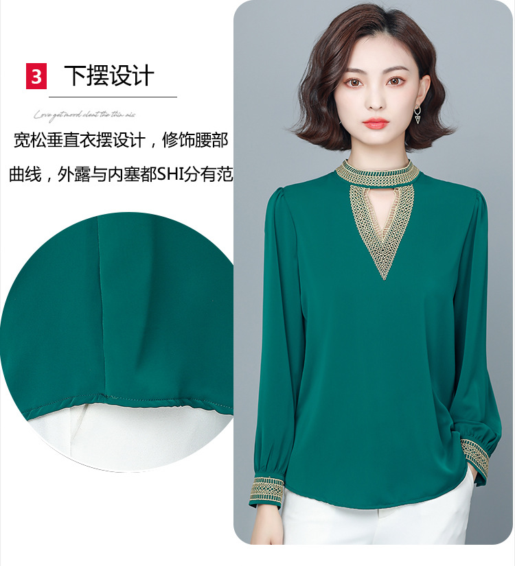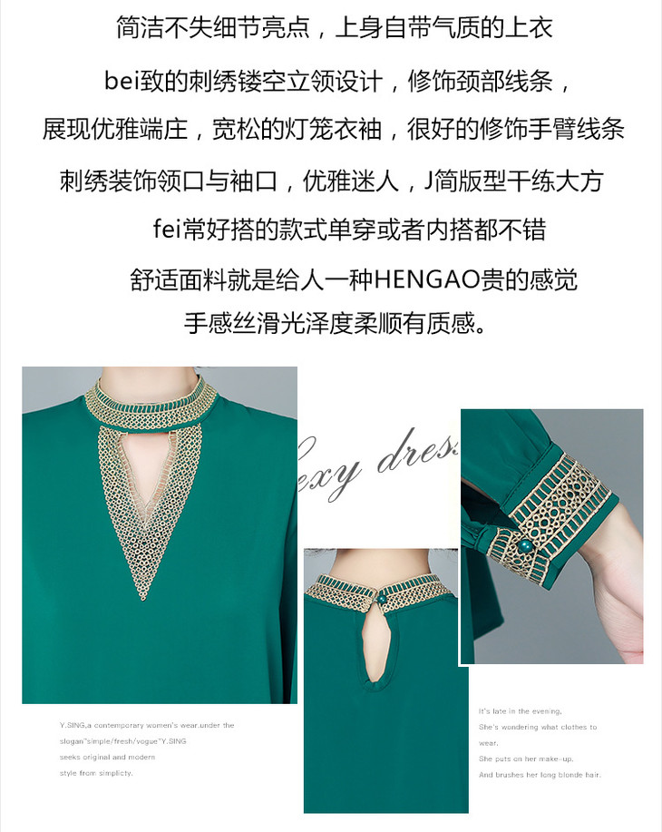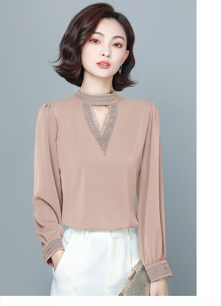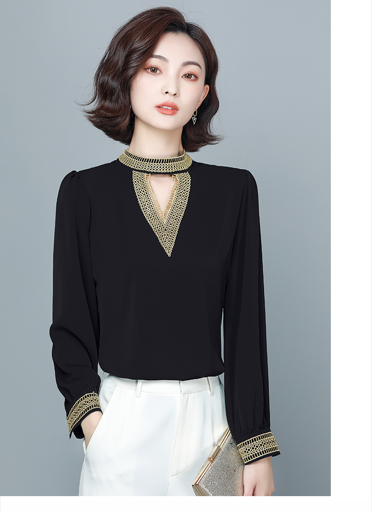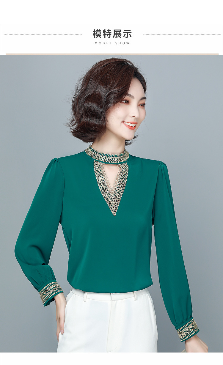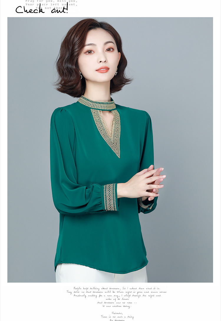 YHSS209639新款时尚气质宽松V领长袖仿真丝绣花衬衫