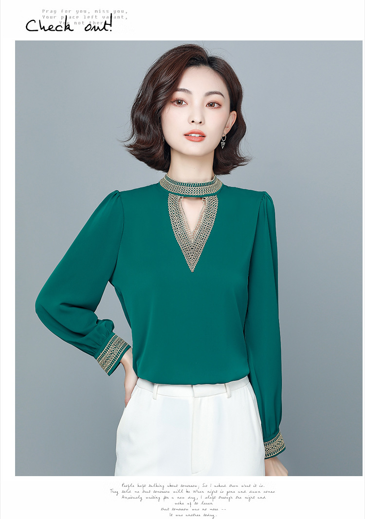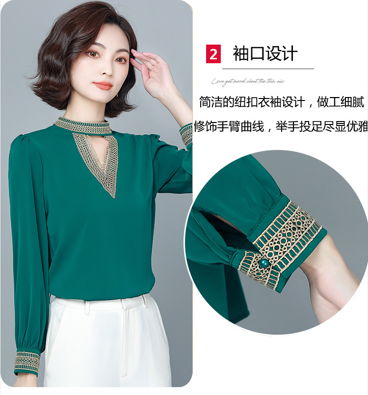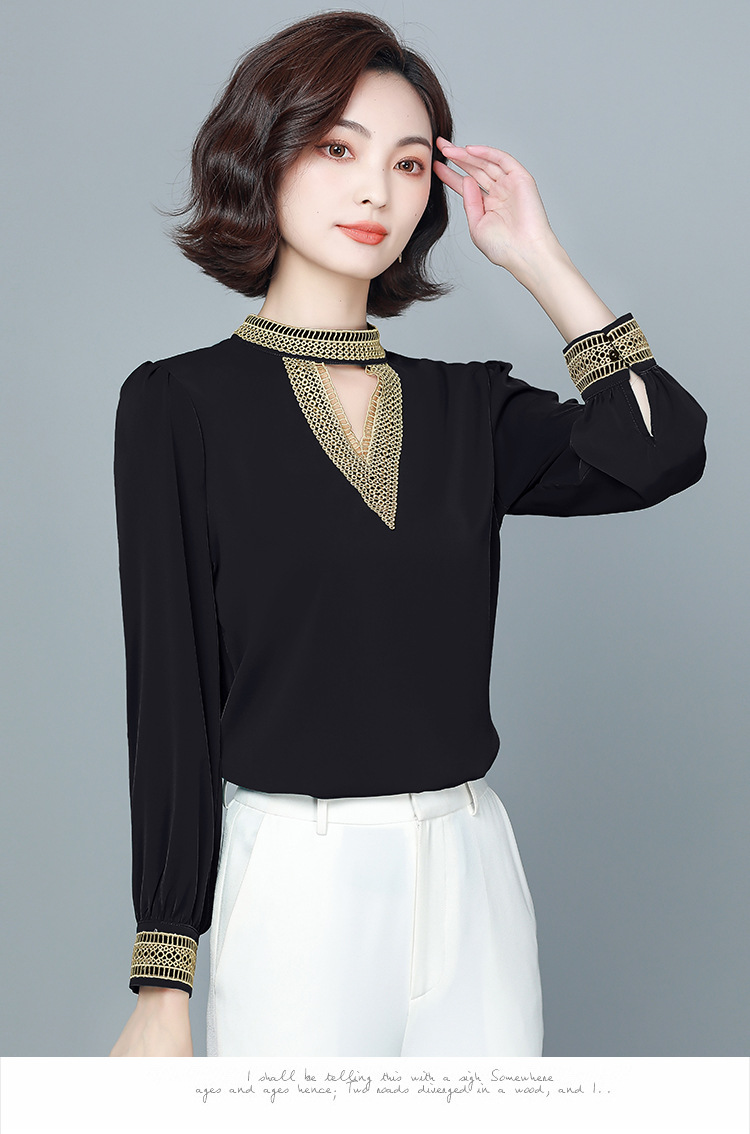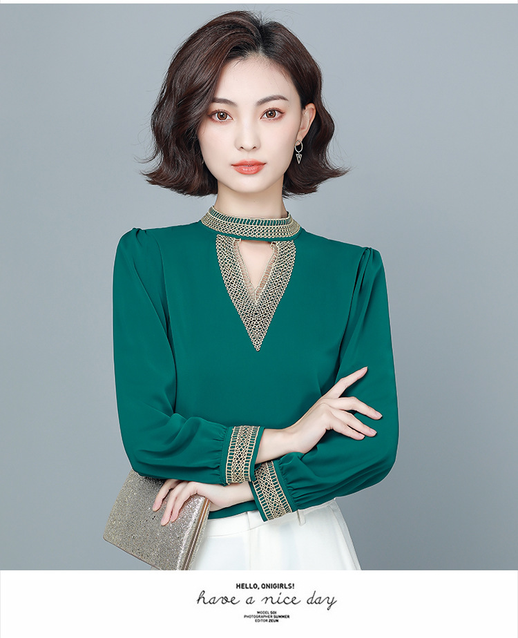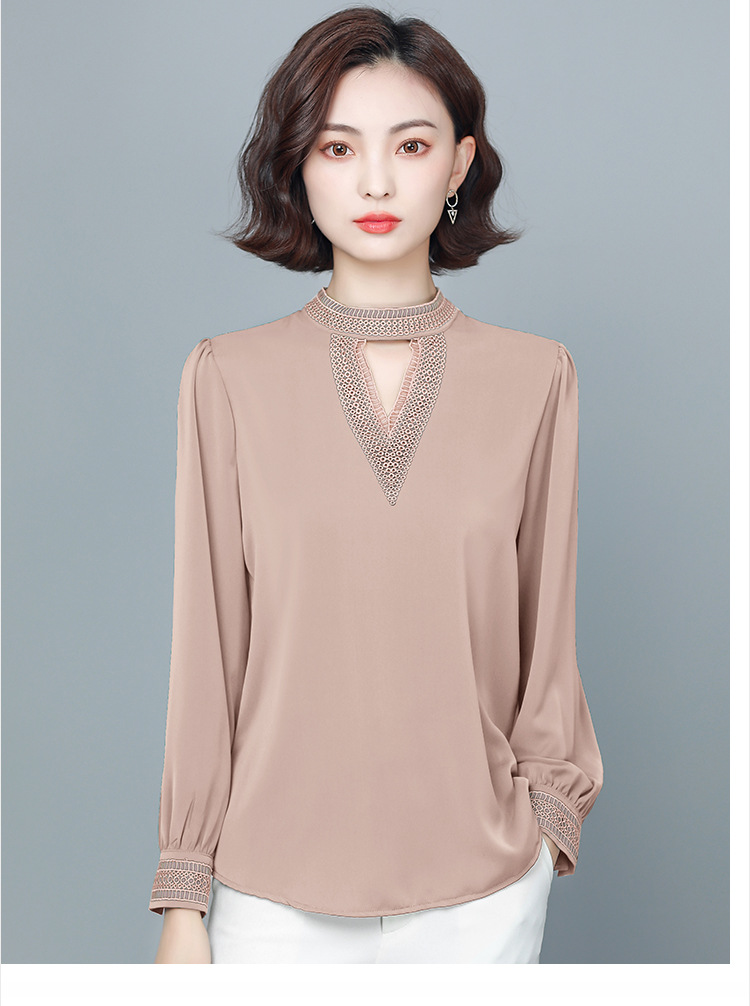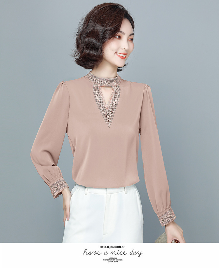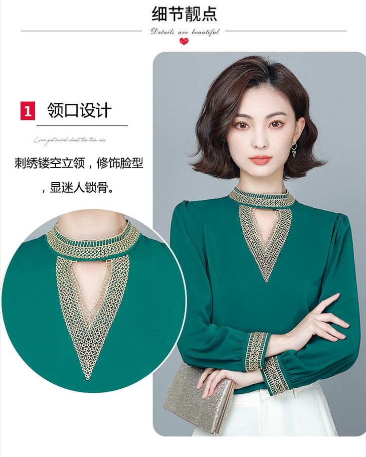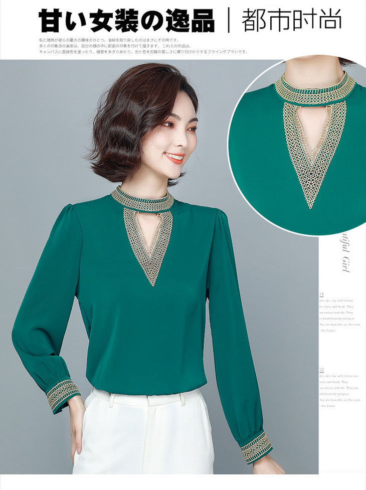 YHSS209639新款时尚气质宽松V领长袖仿真丝绣花衬衫