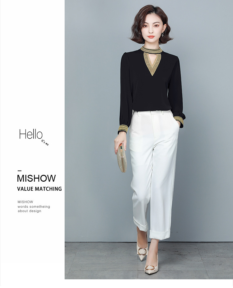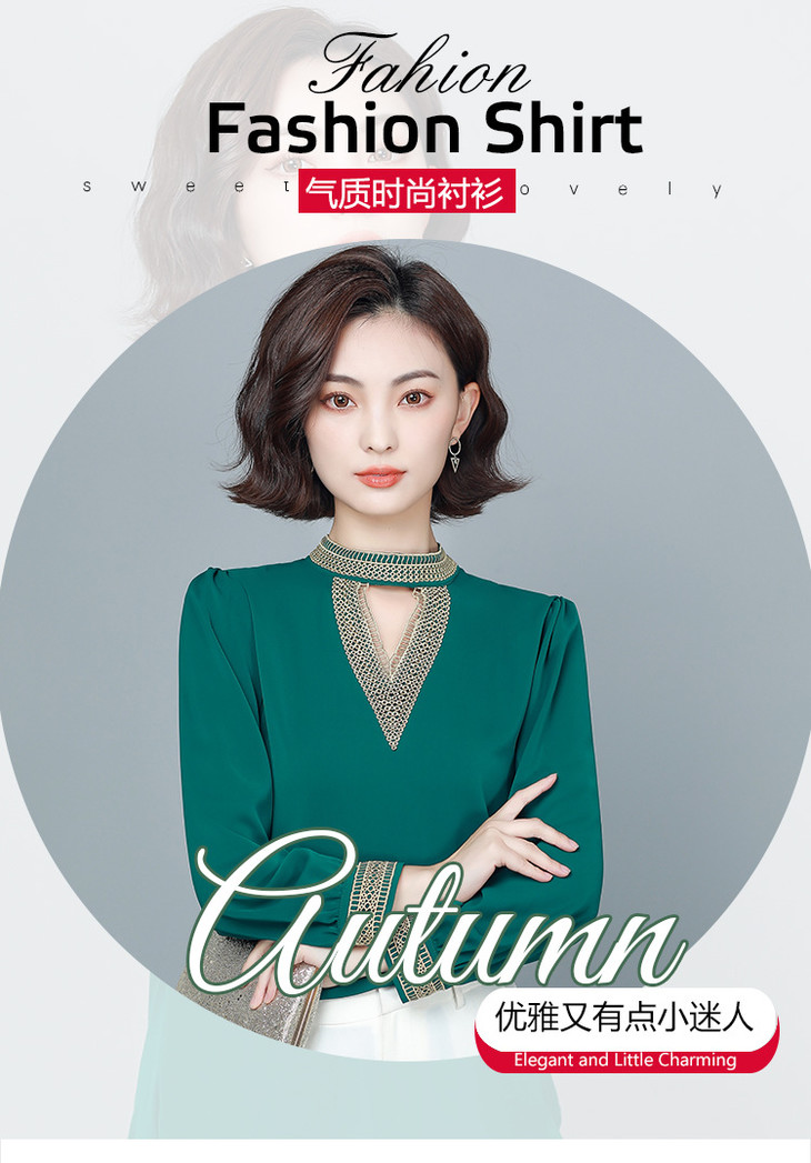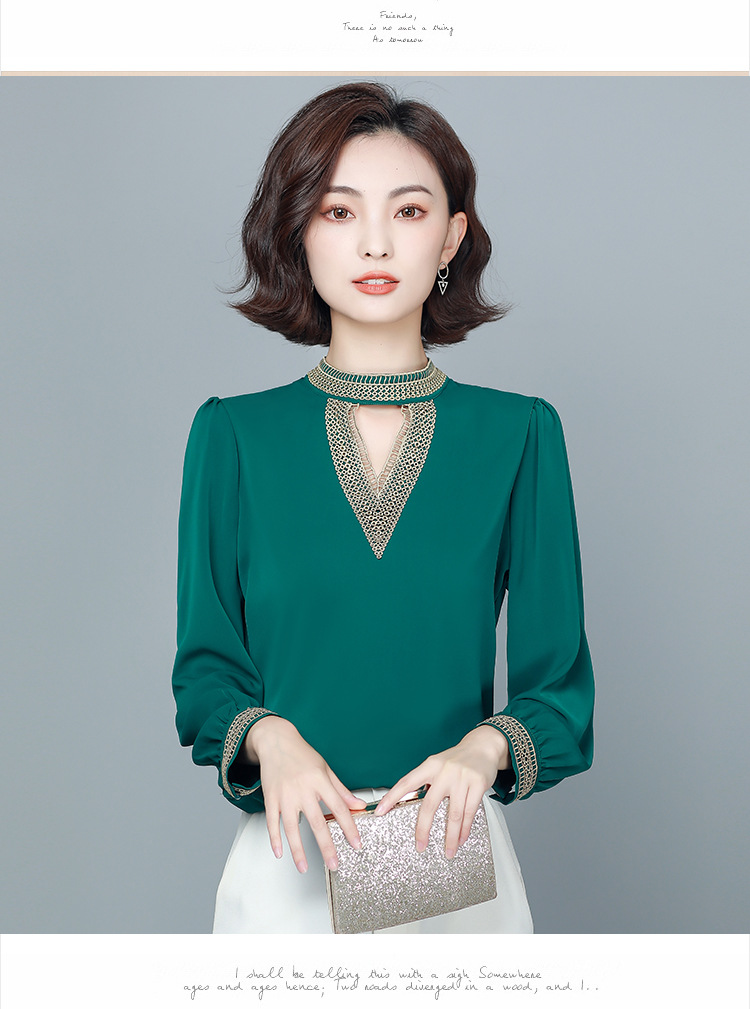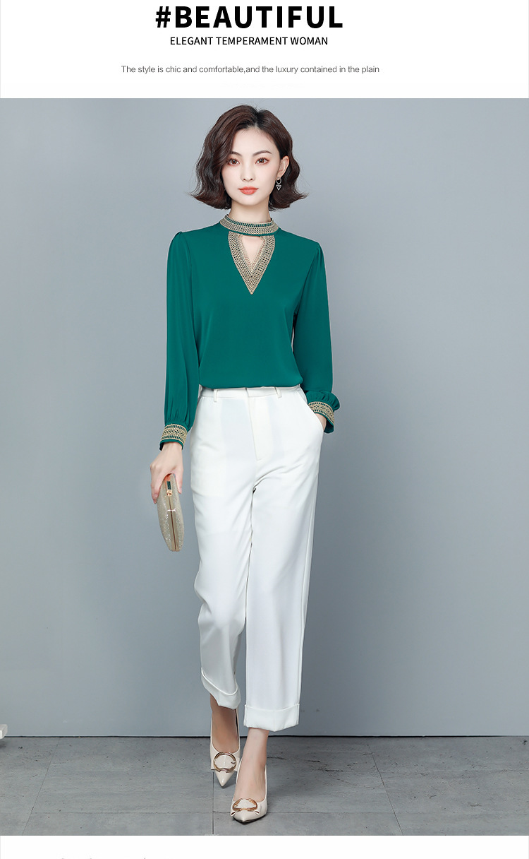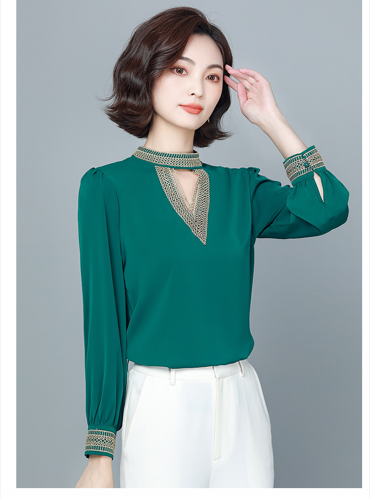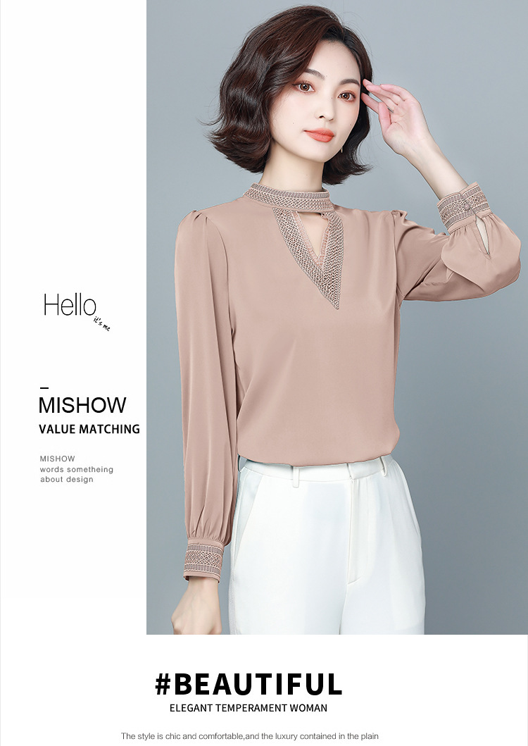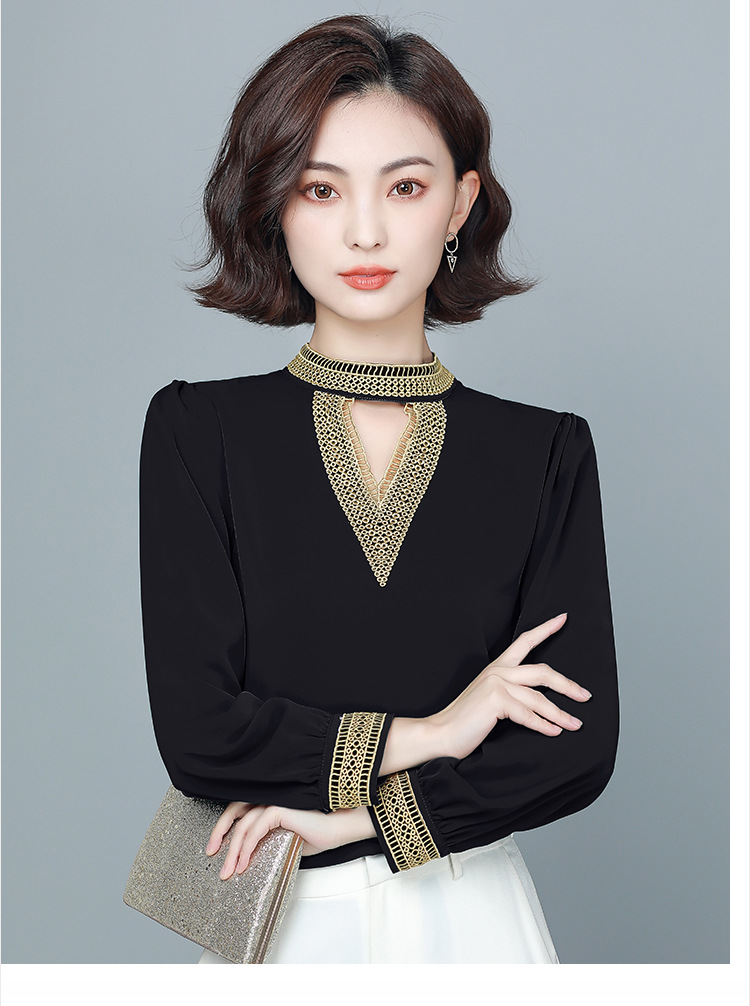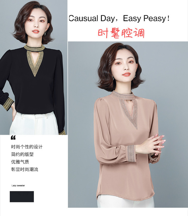 YHSS209639新款时尚气质宽松V领长袖仿真丝绣花衬衫