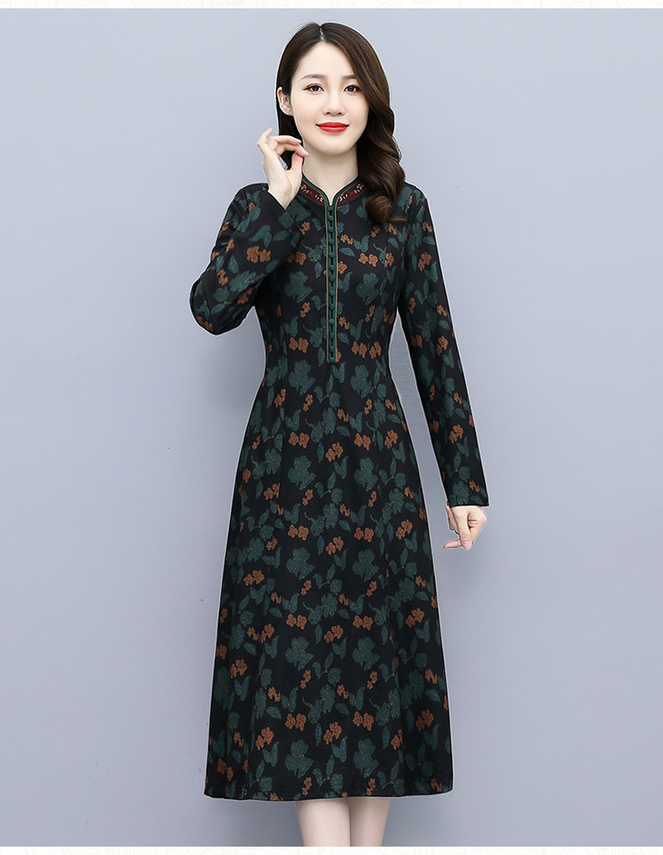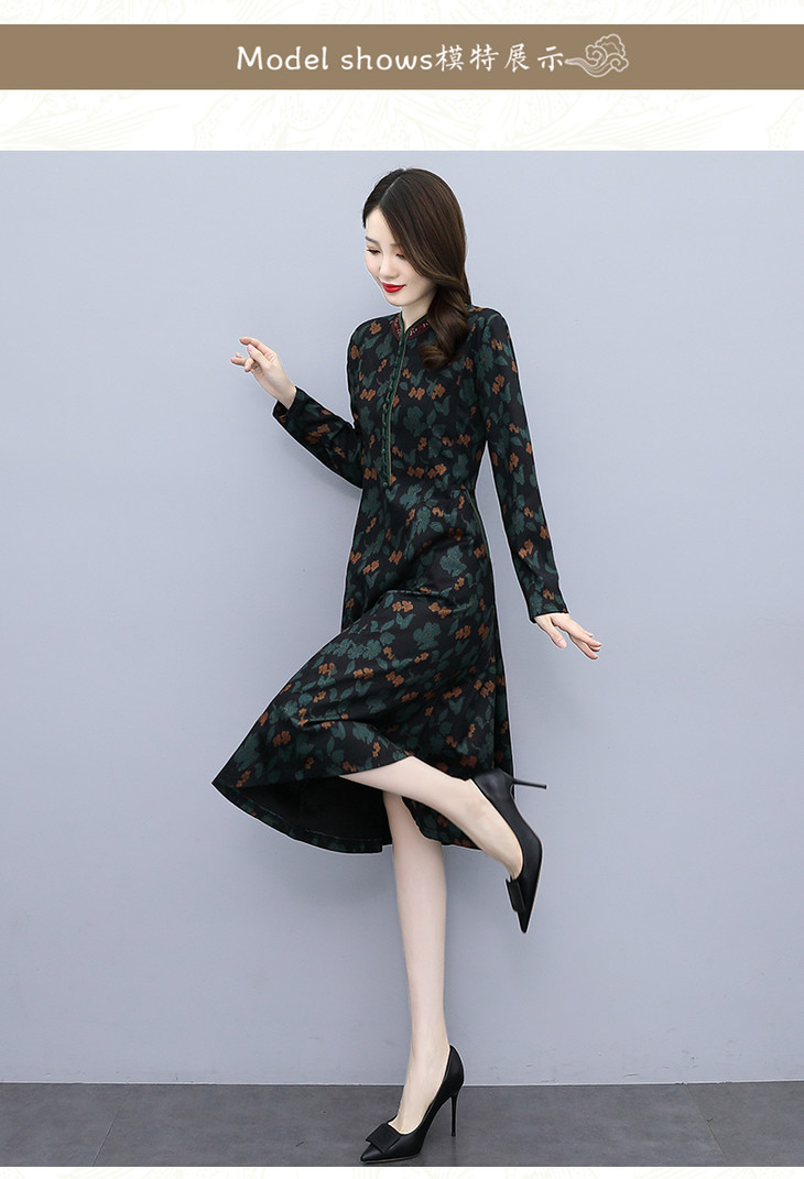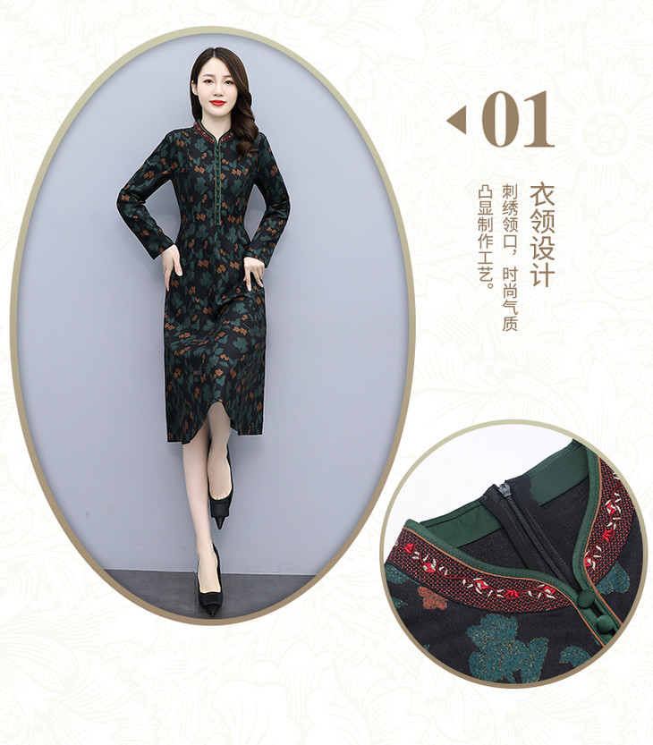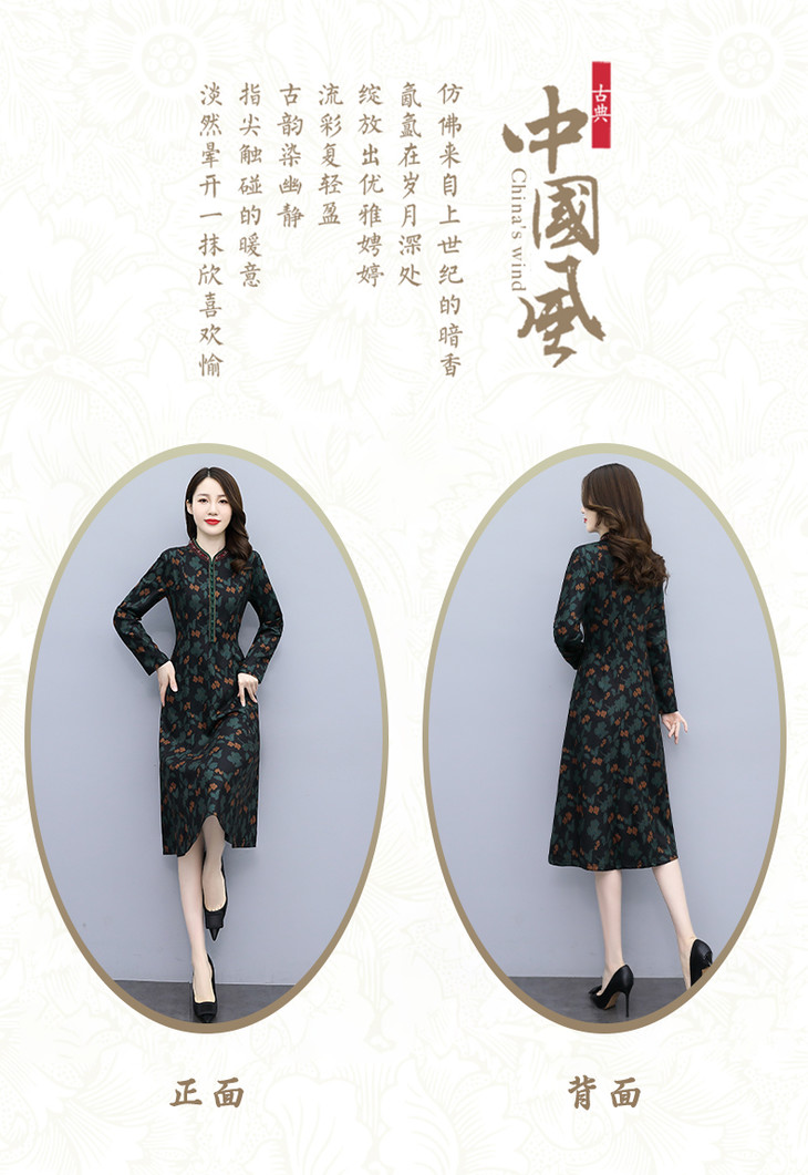 TX020春秋新款低开衩旗袍