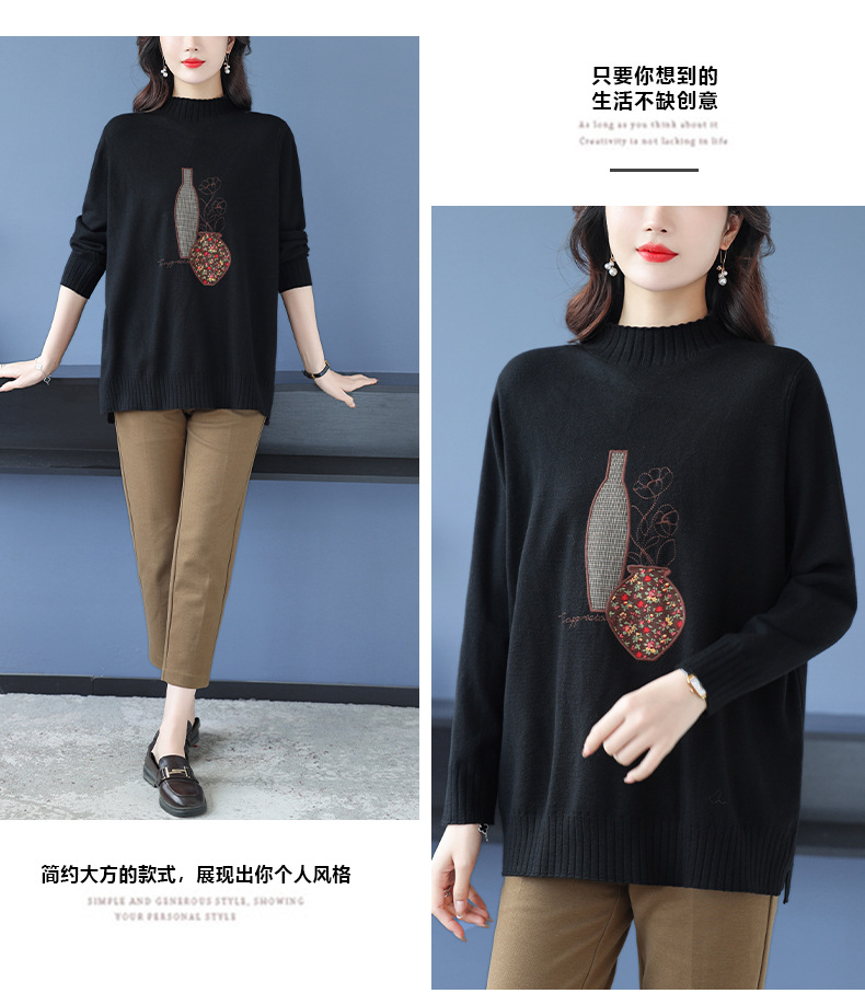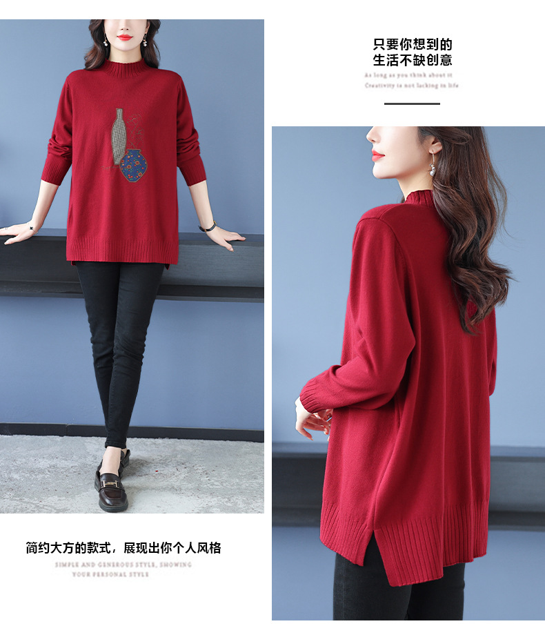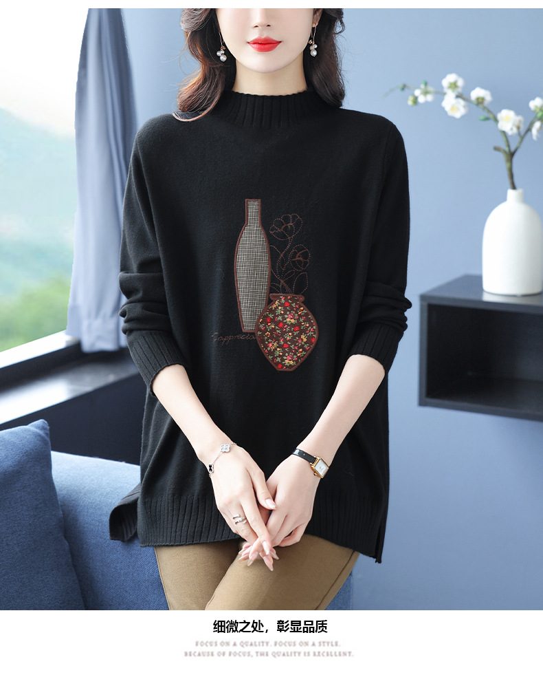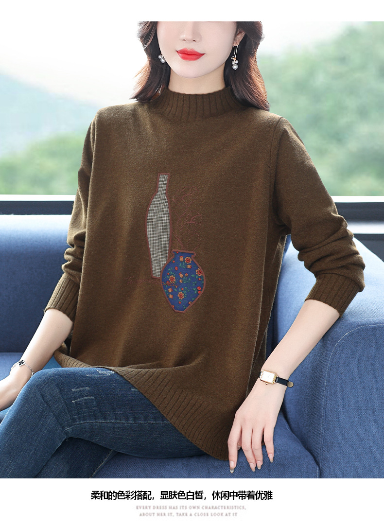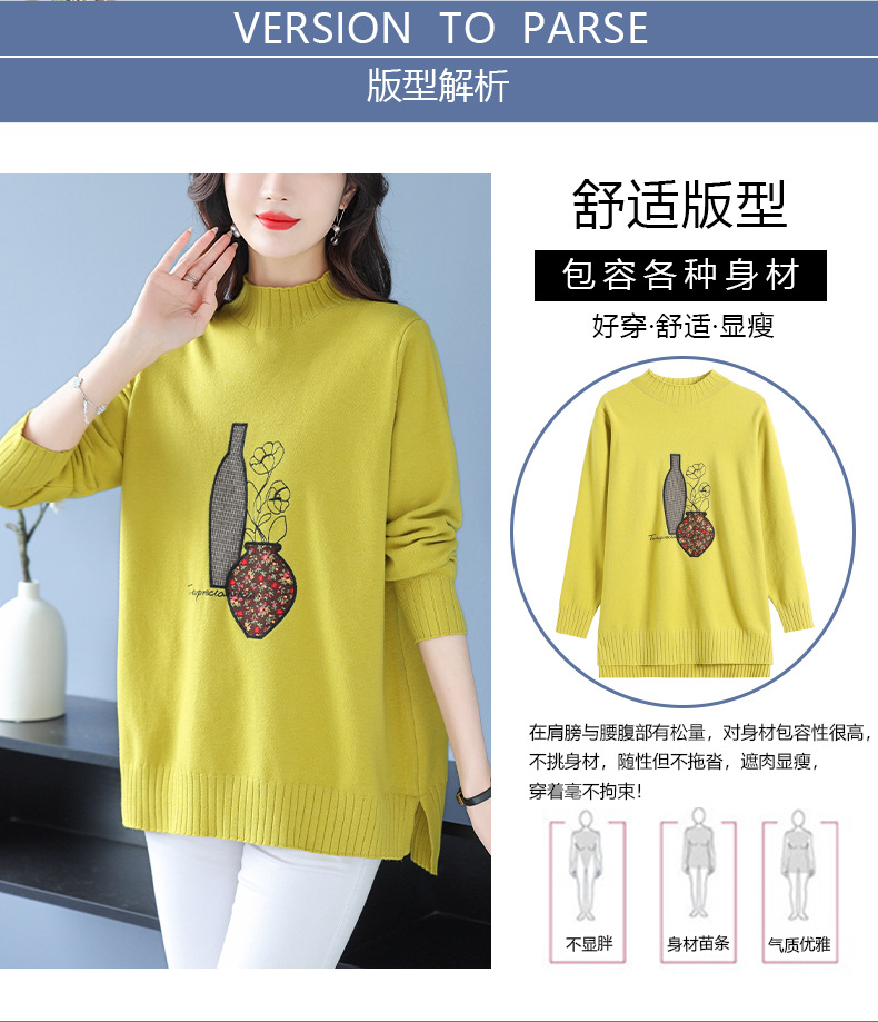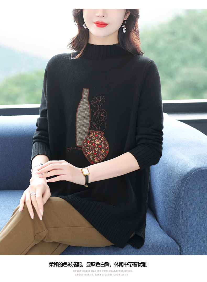 秋冬新款,配大衣毛衣女士中长款宽松大码加厚洋气刺绣打底衫CC-LZ-23108