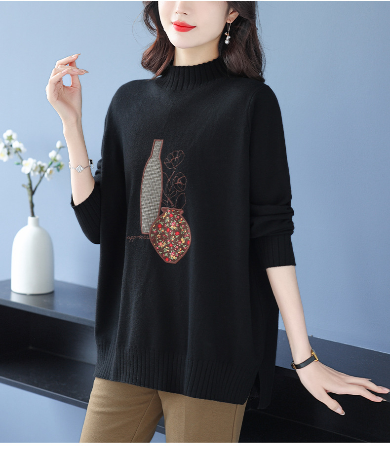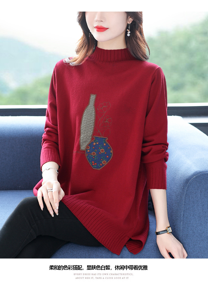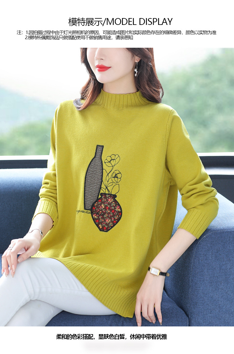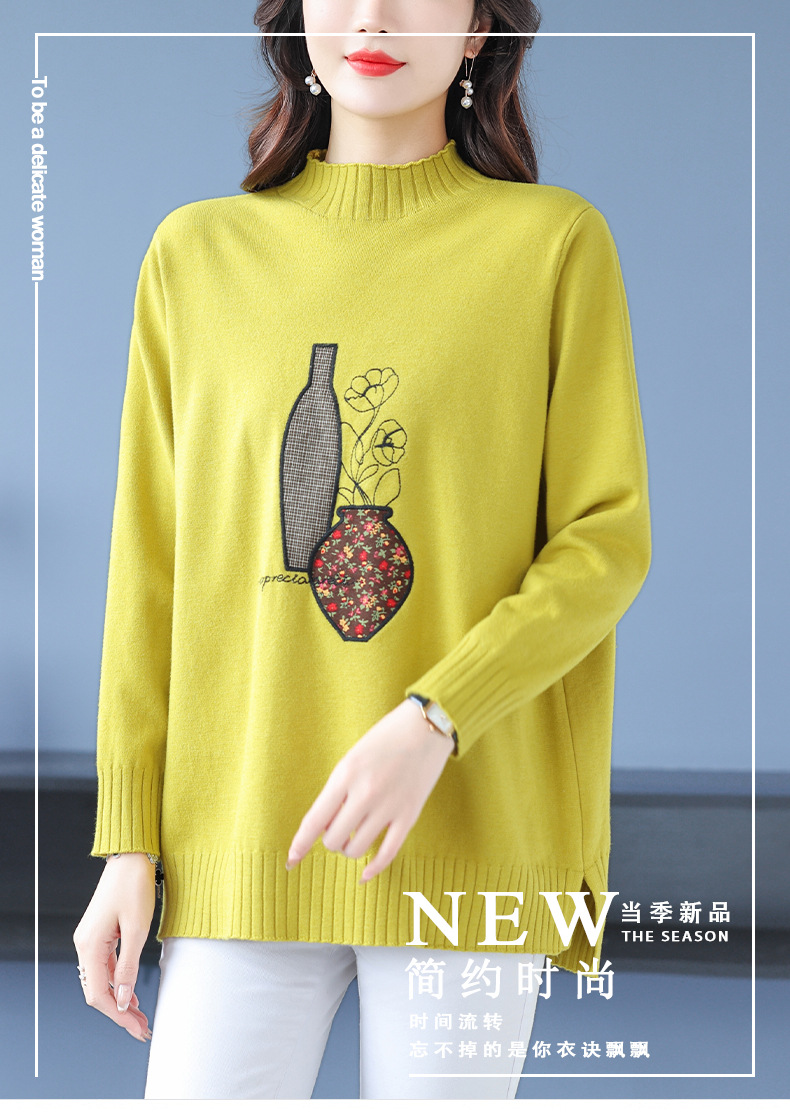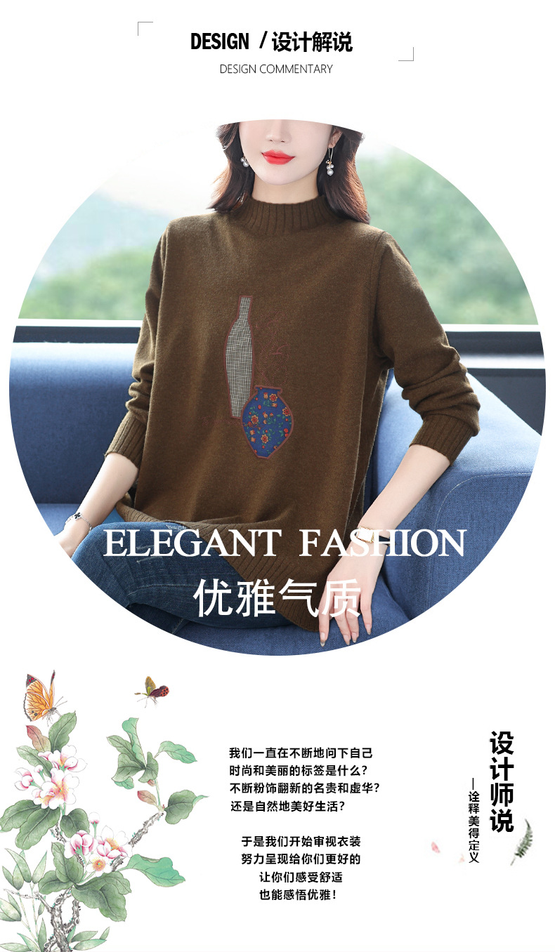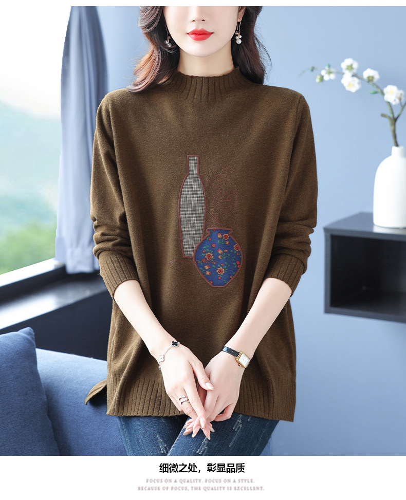 秋冬新款,配大衣毛衣女士中长款宽松大码加厚洋气刺绣打底衫CC-LZ-23108
