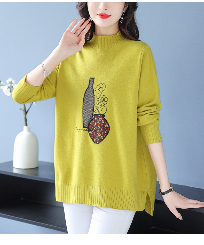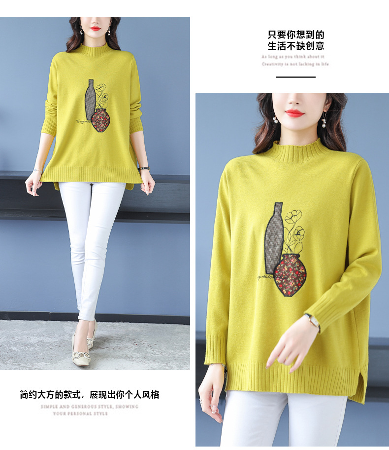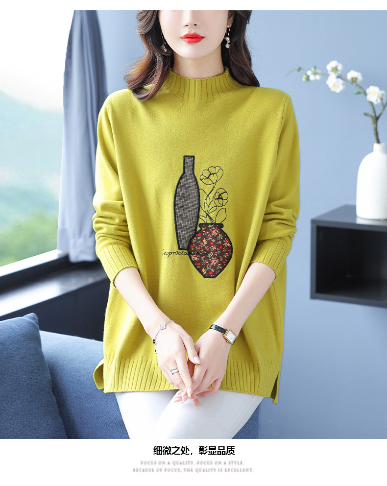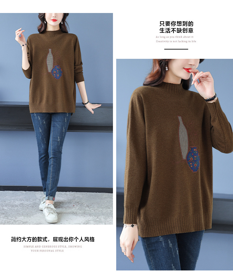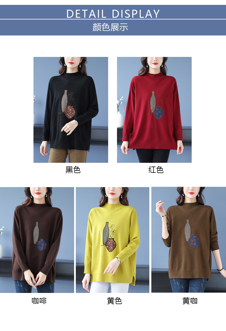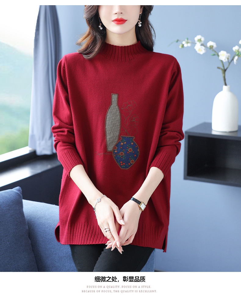 秋冬新款,配大衣毛衣女士中长款宽松大码加厚洋气刺绣打底衫CC-LZ-23108
