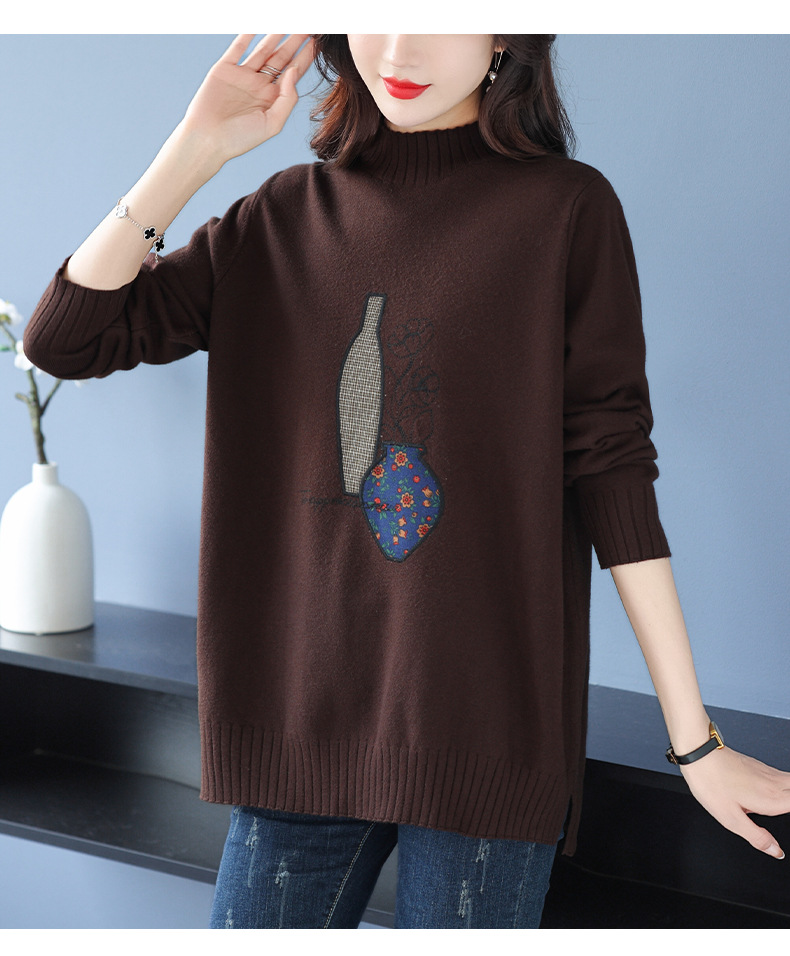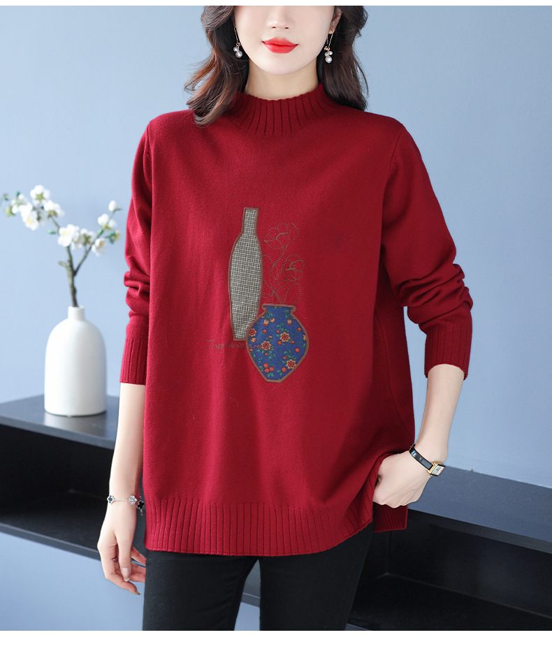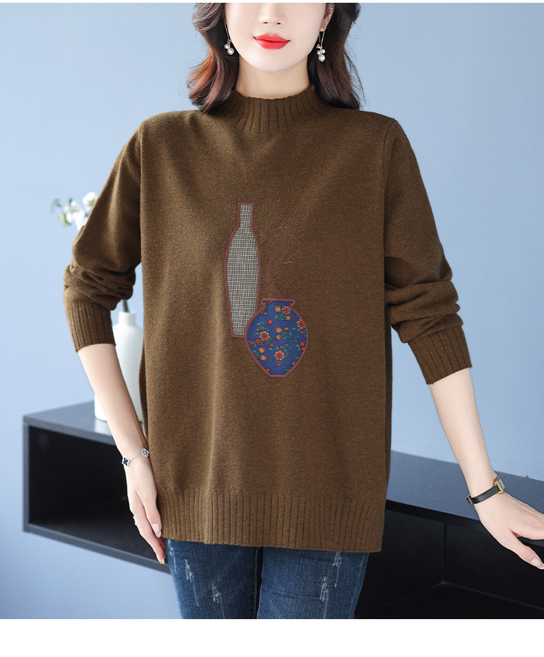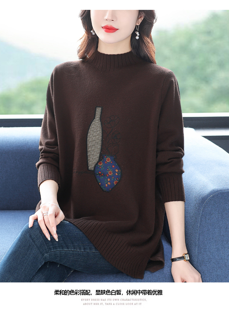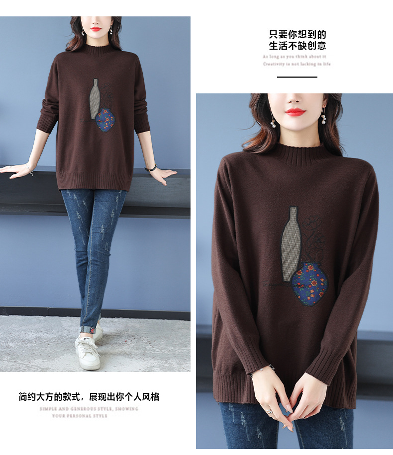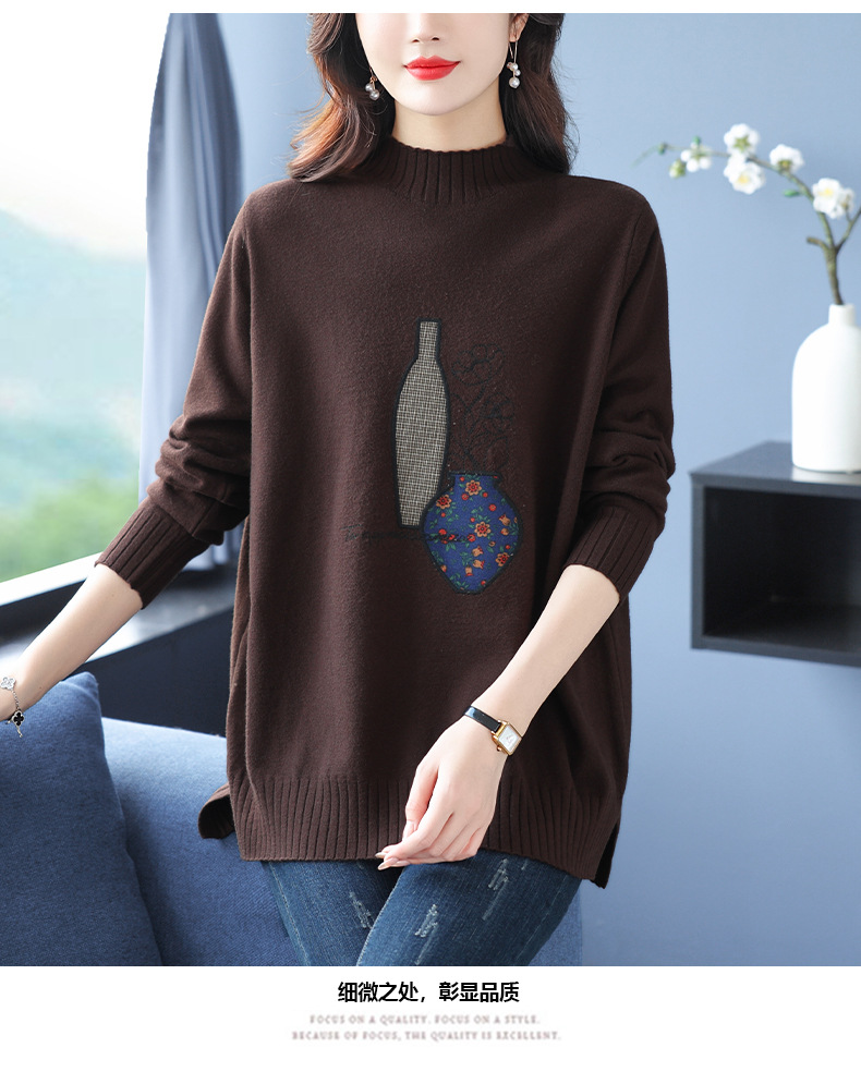 秋冬新款,配大衣毛衣女士中长款宽松大码加厚洋气刺绣打底衫CC-LZ-23108