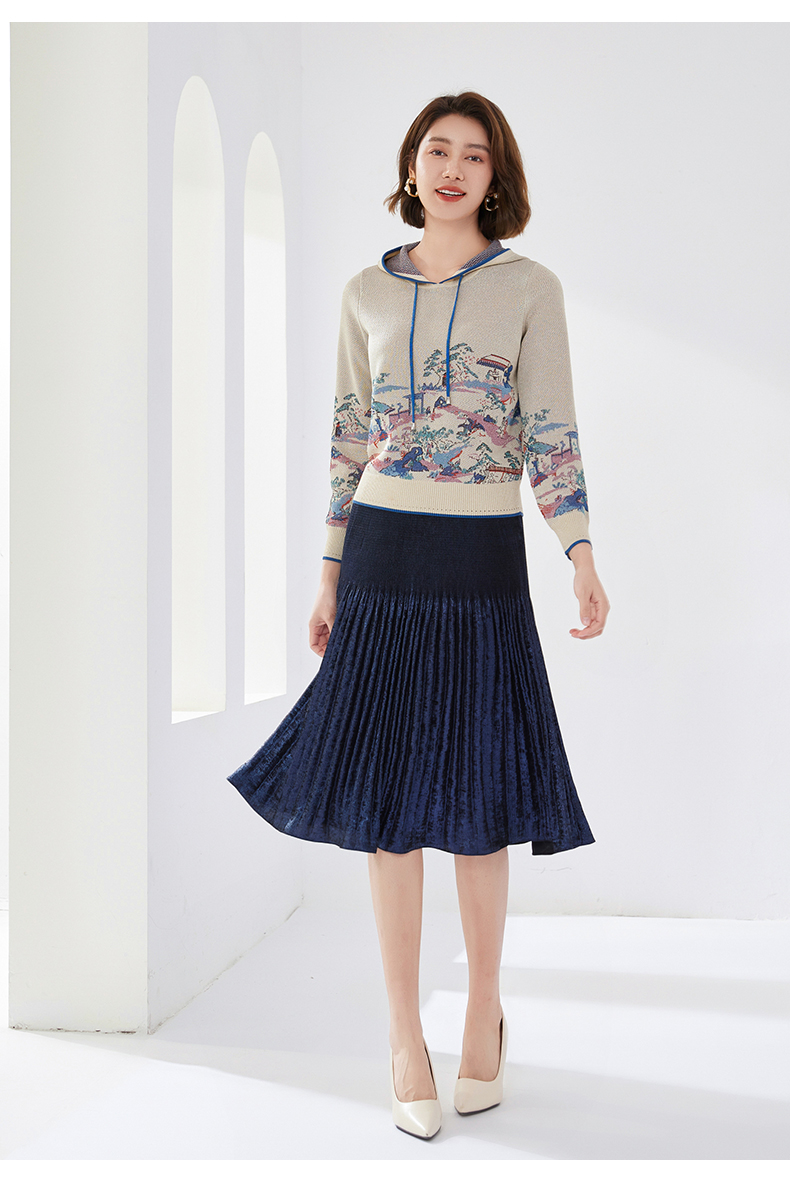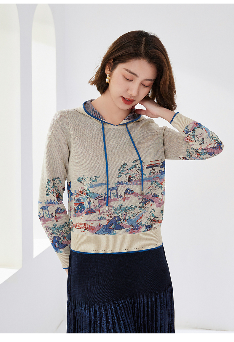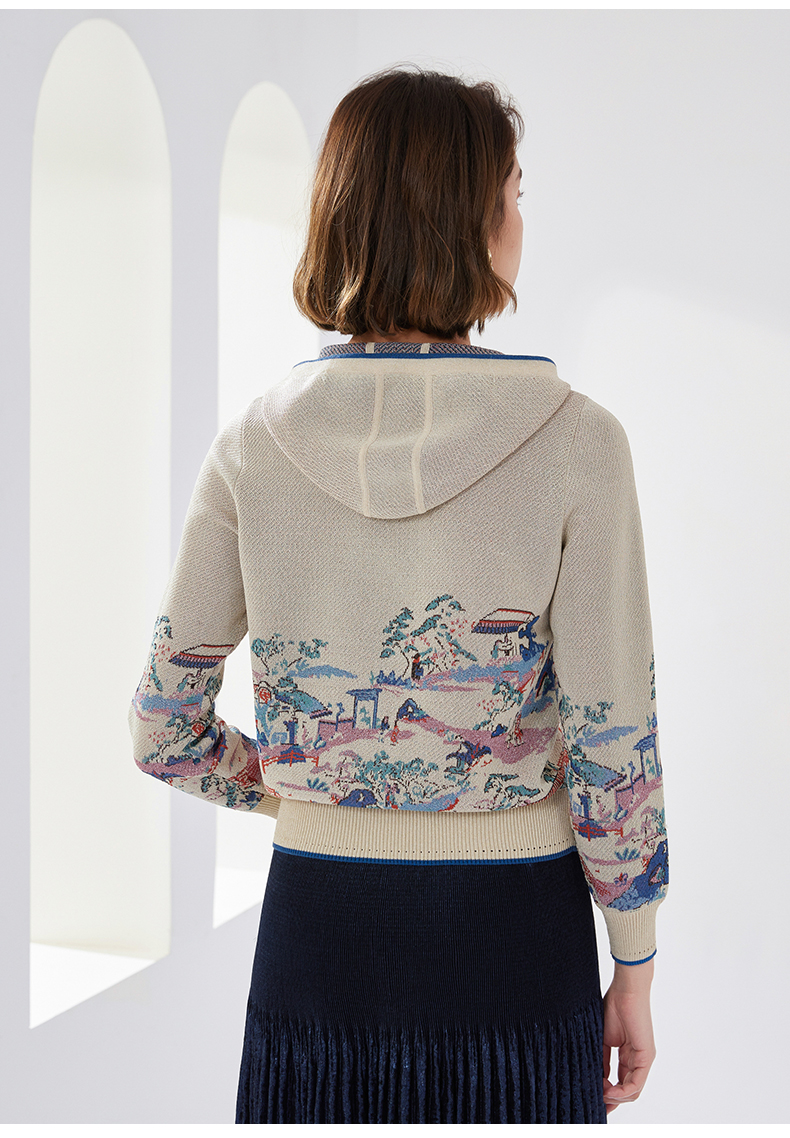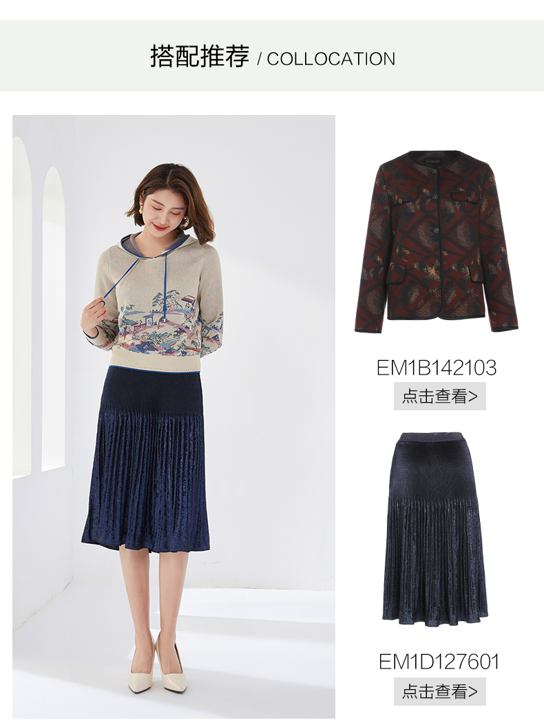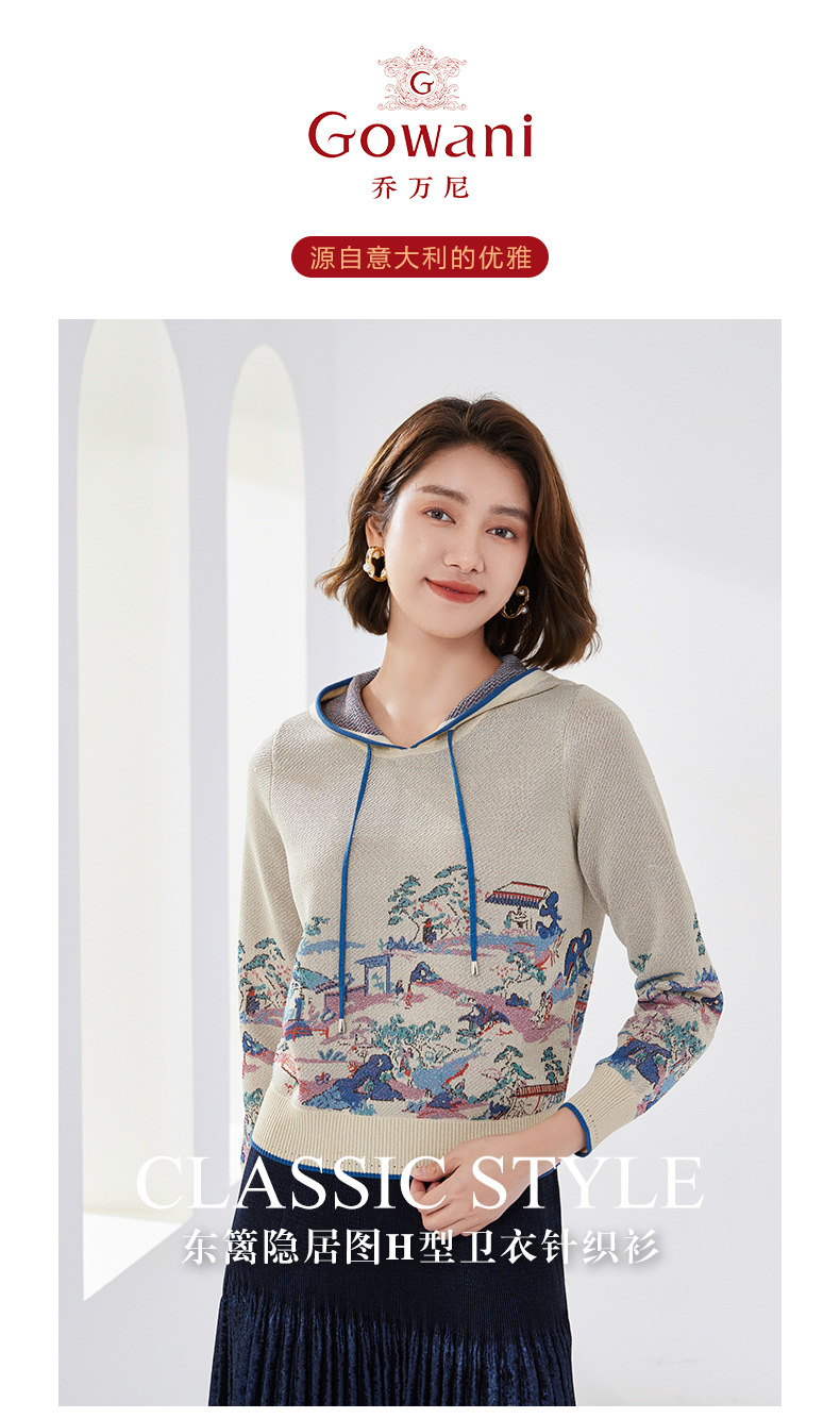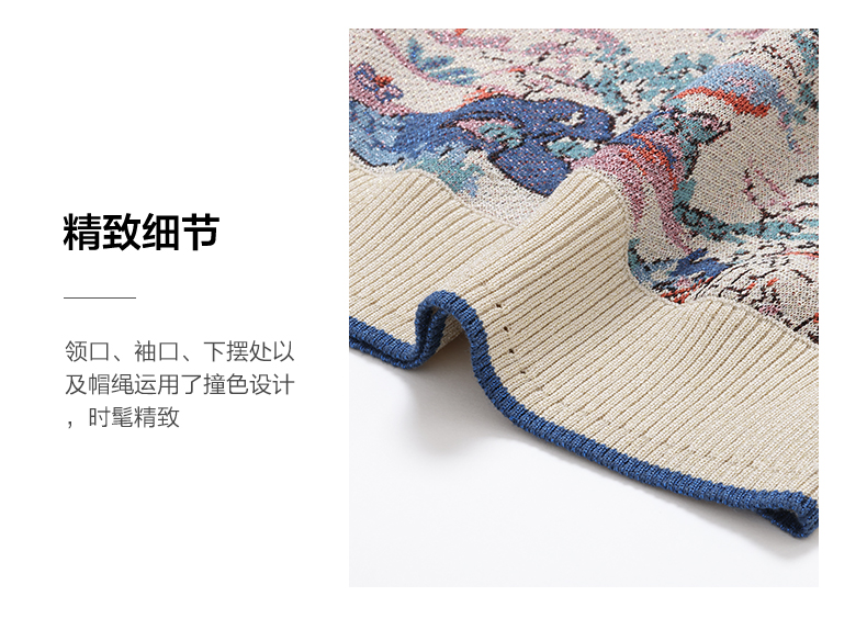 乔万尼撞色设计针织衫国风编织精致感连帽减龄EM1M129