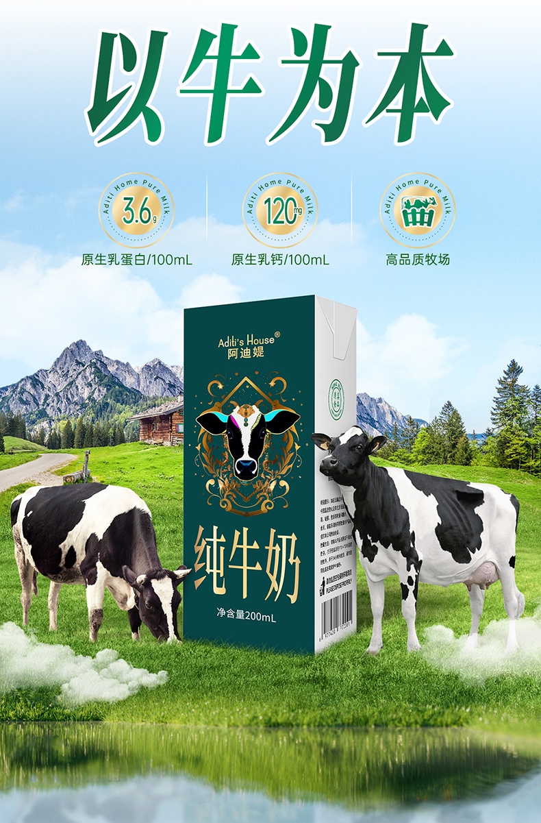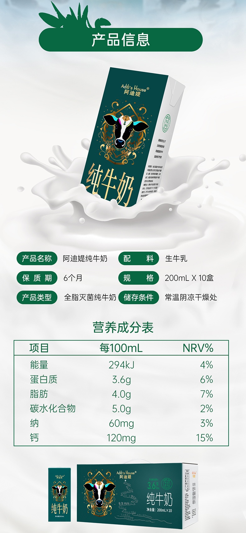 阿迪媞3.6g乳蛋白纯牛奶200ml*10盒/箱~贺兰山黄金奶源带口感香醇,优质厚乳,高钙丰富乳蛋白