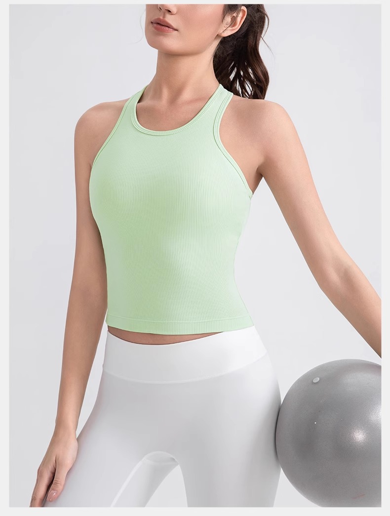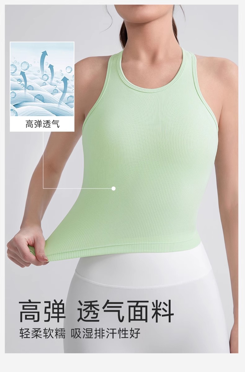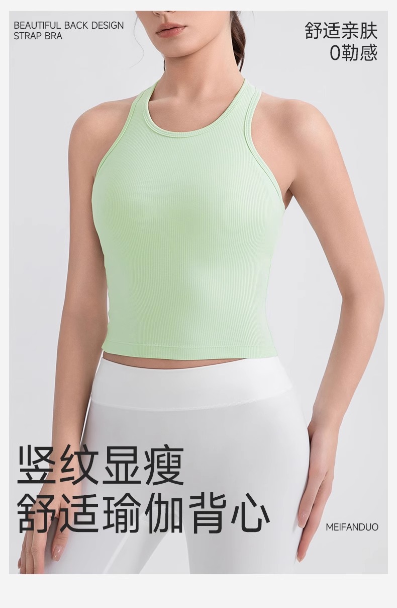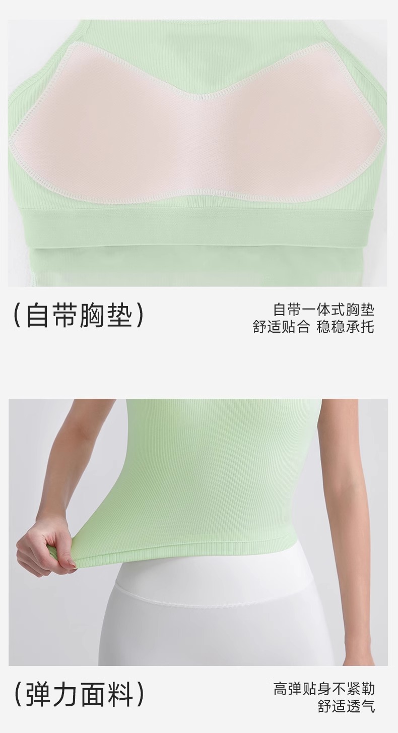 跃牌【欲动春风】系列 条纹瑜伽背心女带胸垫高弹透气跑步健身文胸运动背心52170