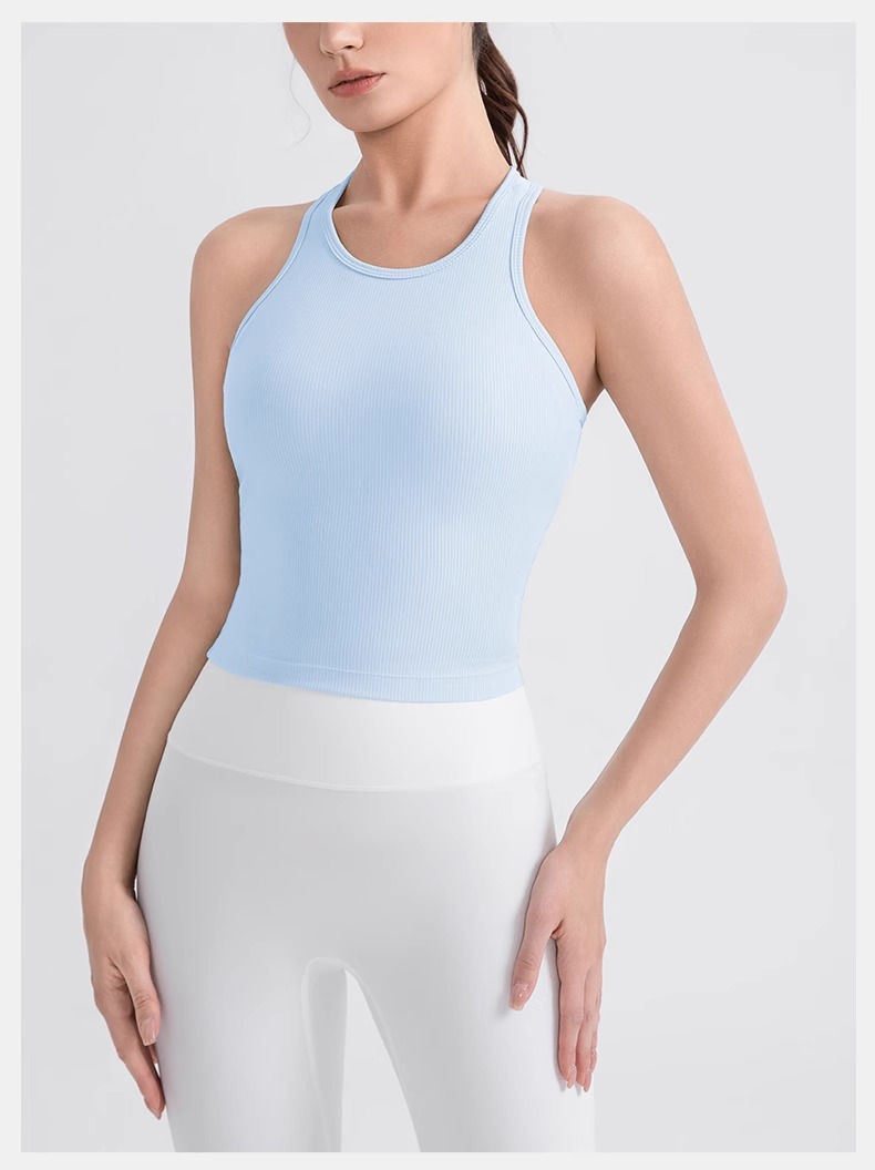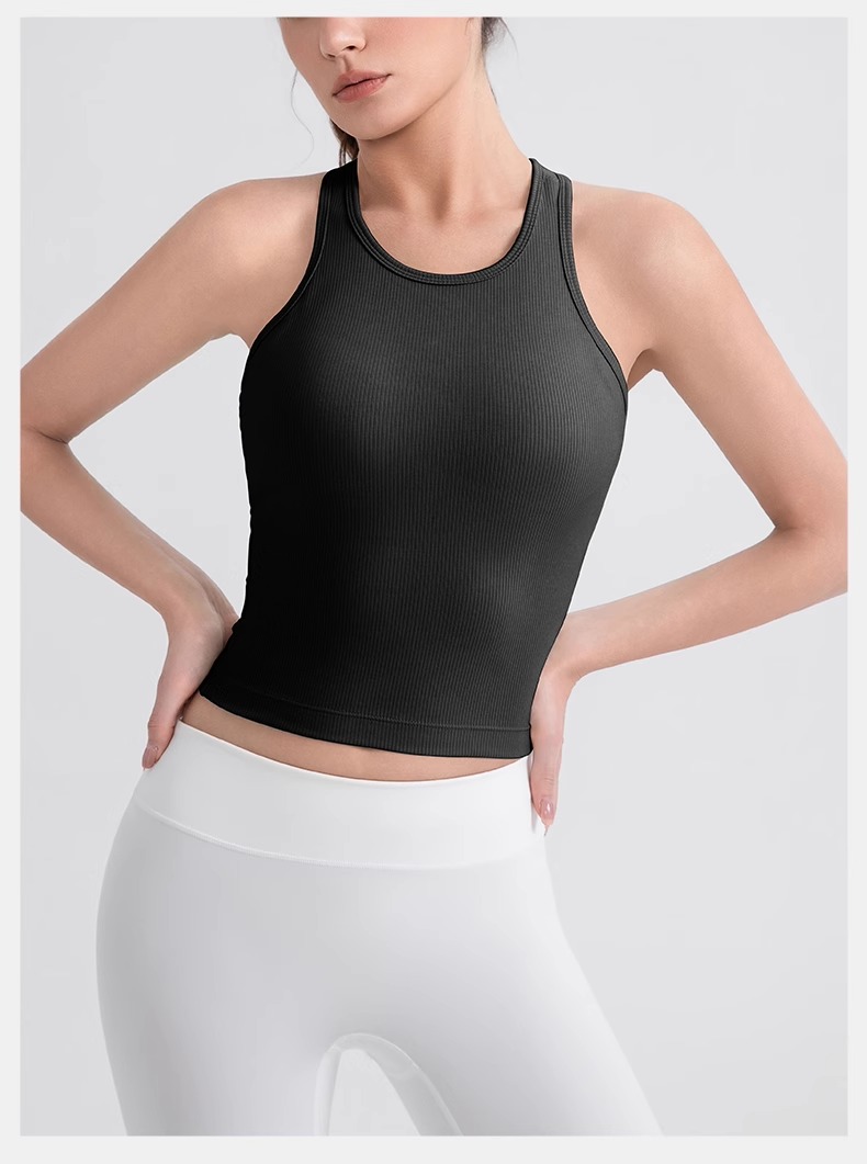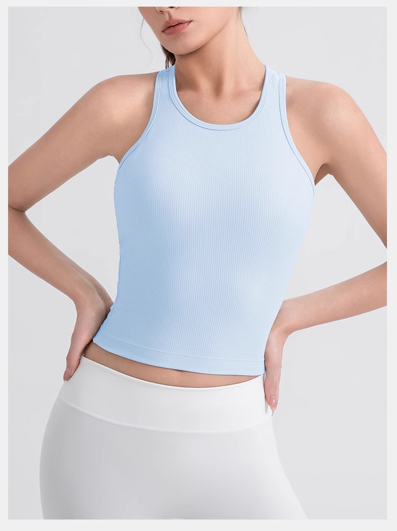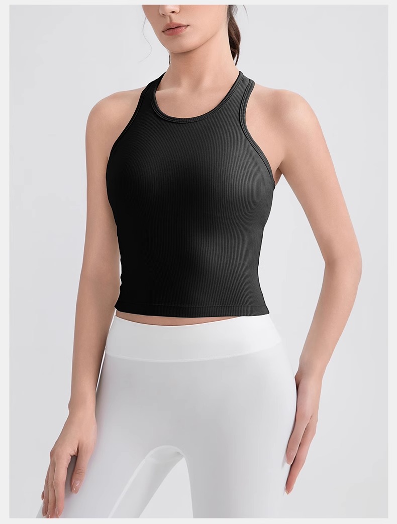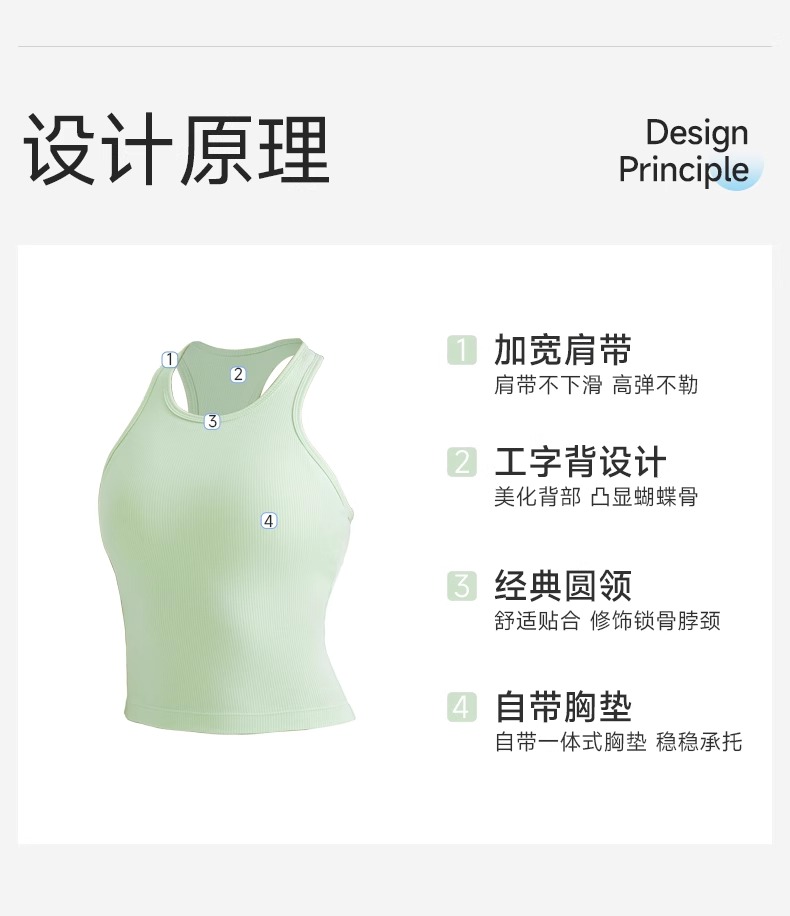 跃牌【欲动春风】系列 条纹瑜伽背心女带胸垫高弹透气跑步健身文胸运动背心52170