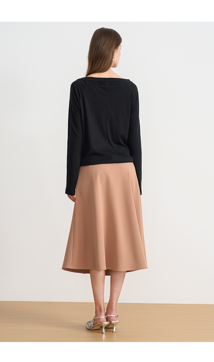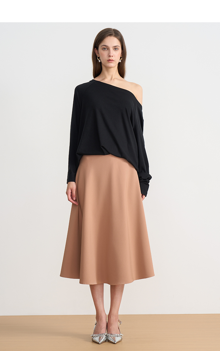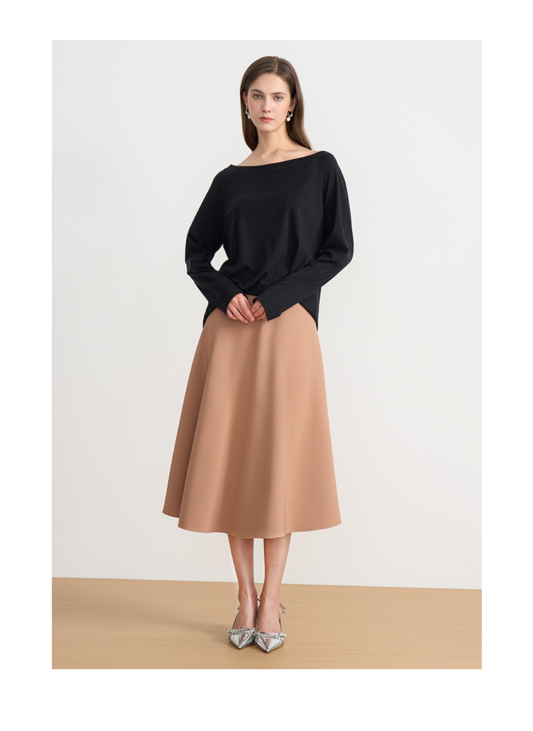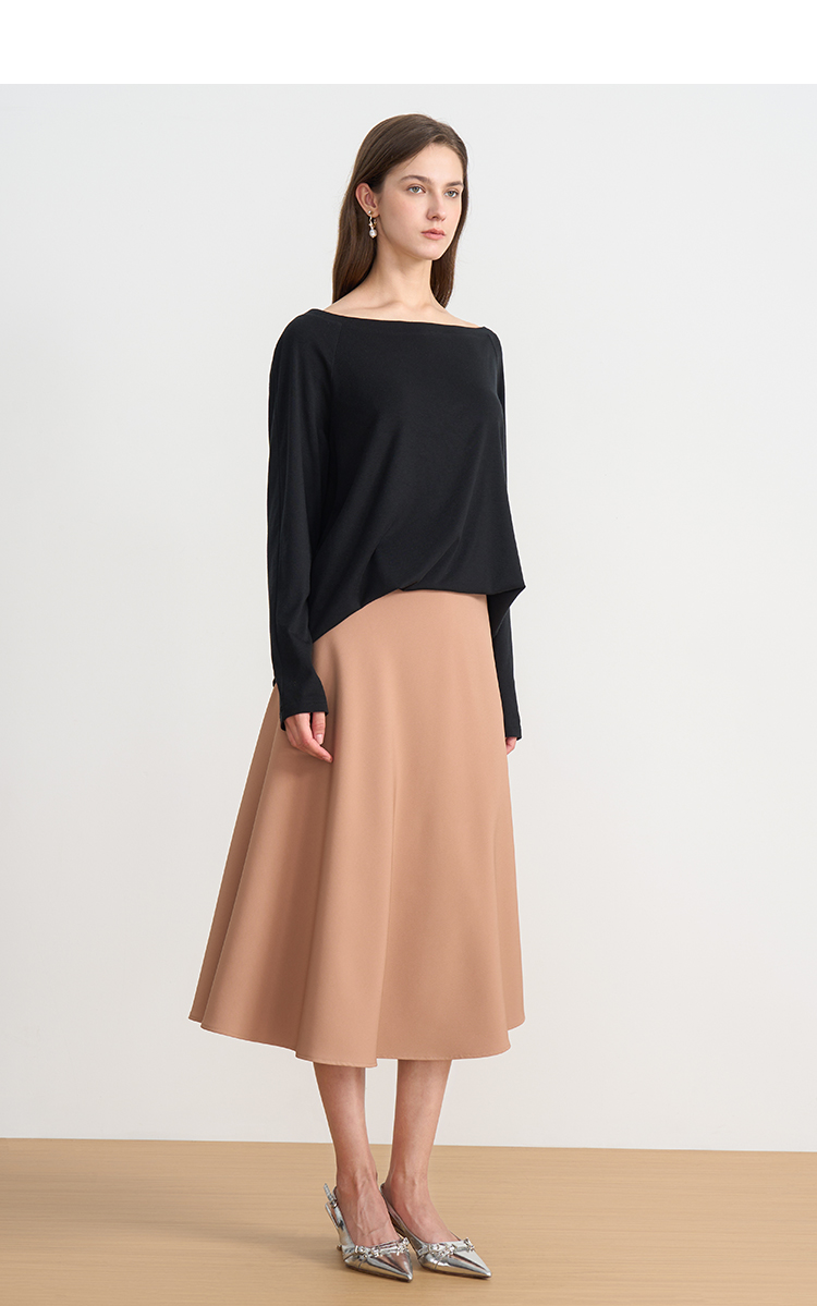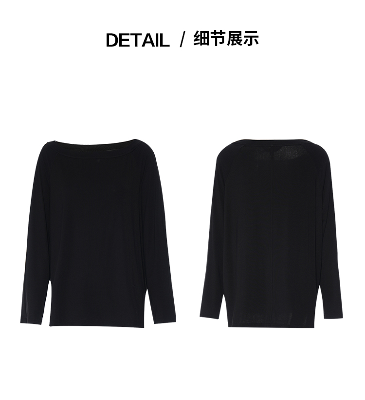 EITIE爱特爱简约黑色慵懒宽松一字领莱赛尔长袖T恤衫2025秋季新款小上衣C2513820