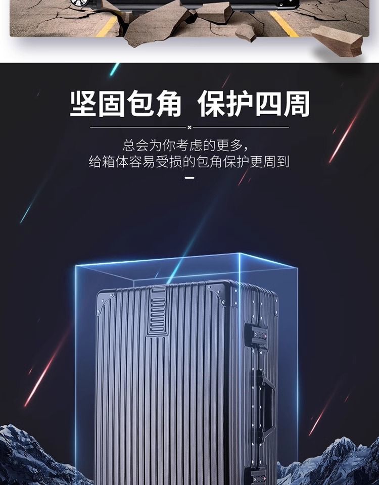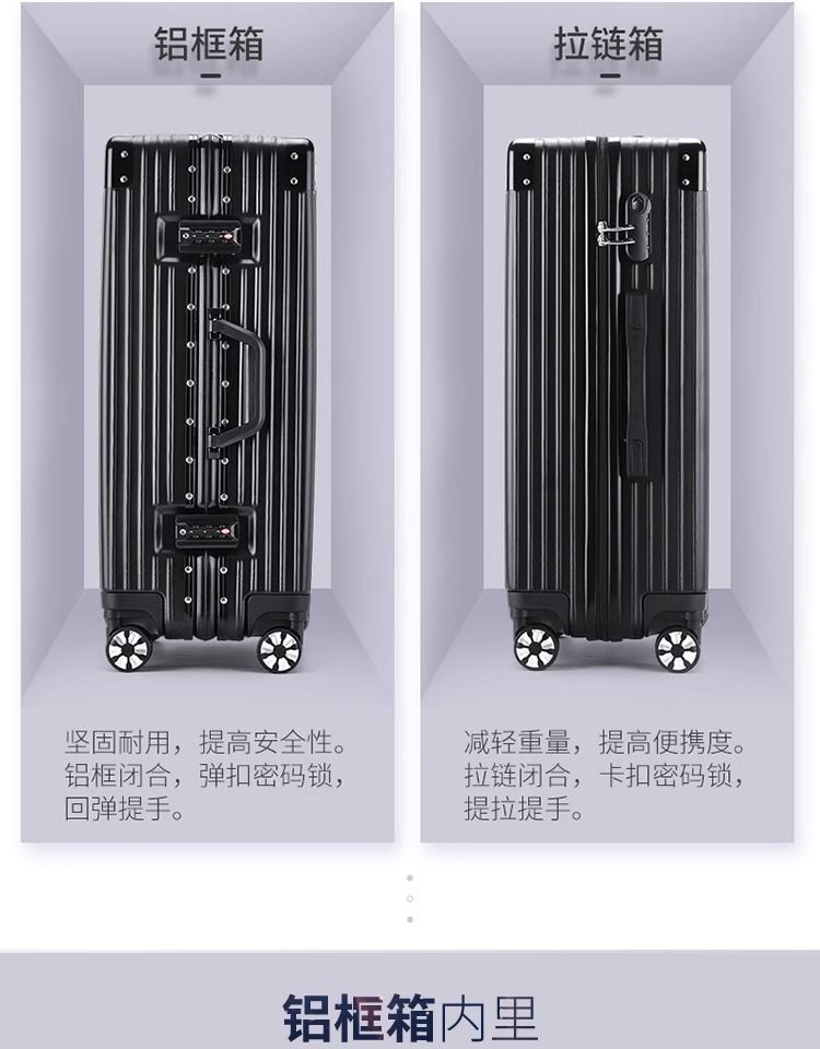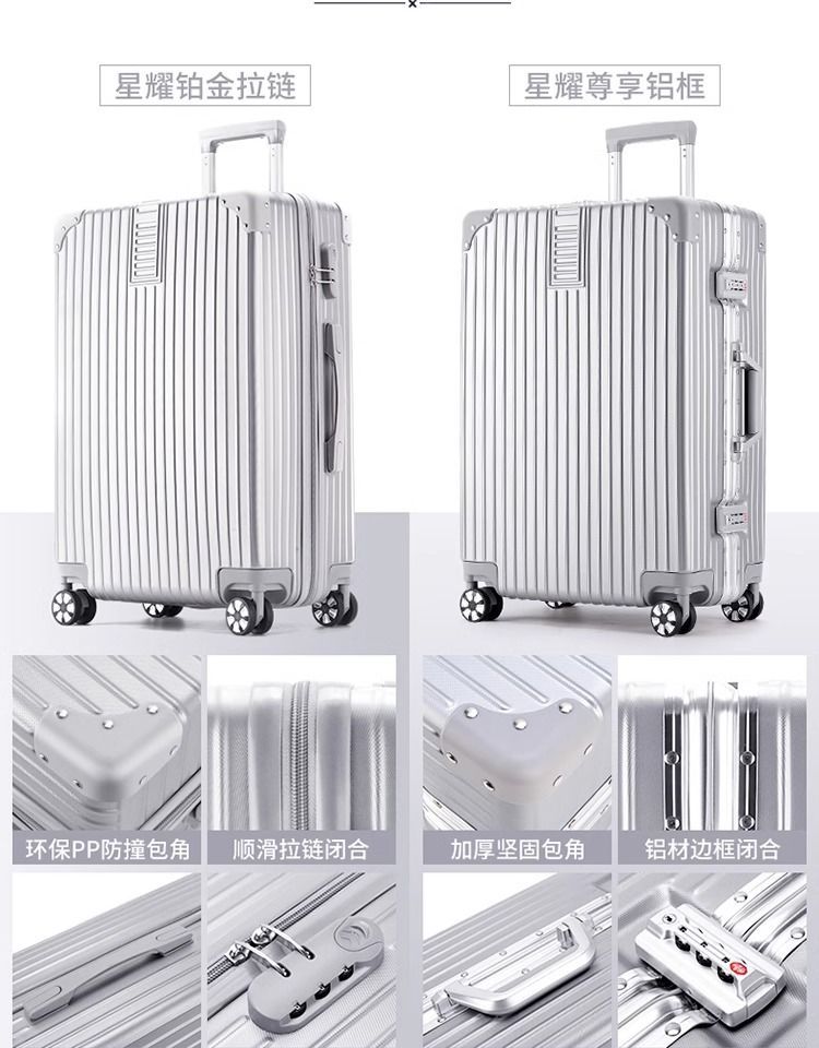 【顺丰包邮】大容量行李箱结实耐用铝框拉杆箱旅行箱男女学生密码箱子ABC+PC箱体静音万向轮