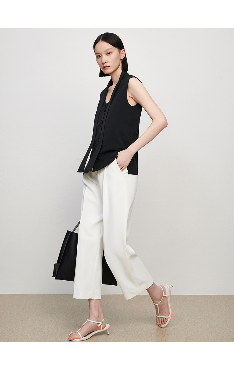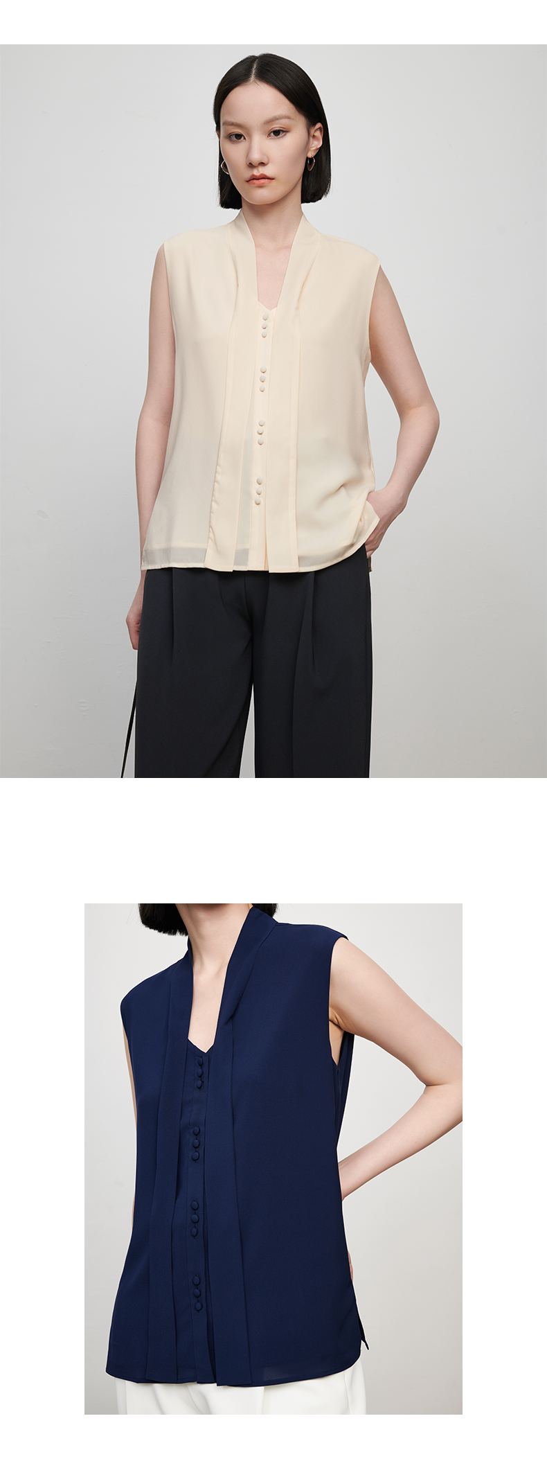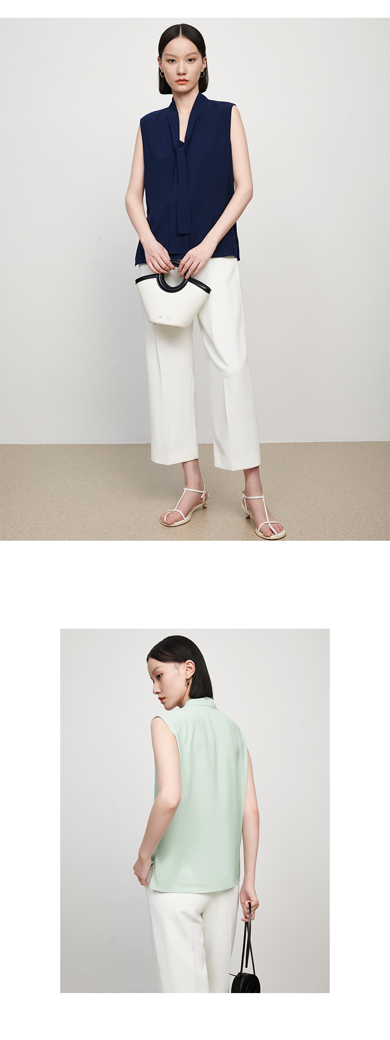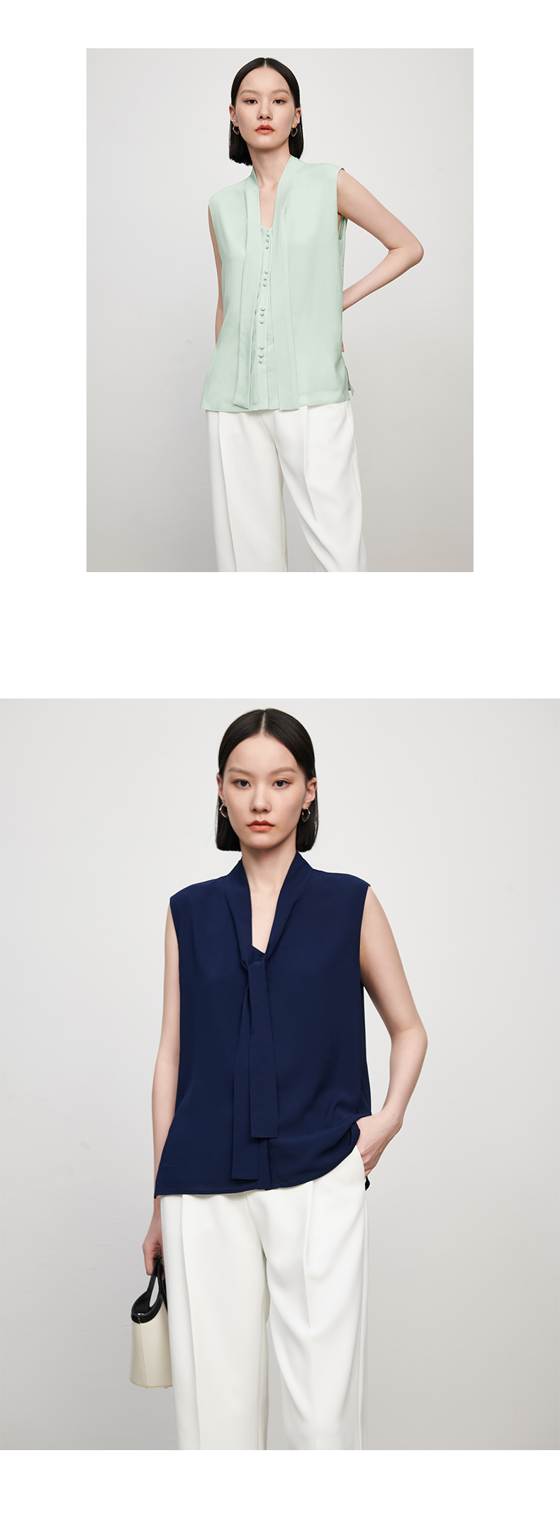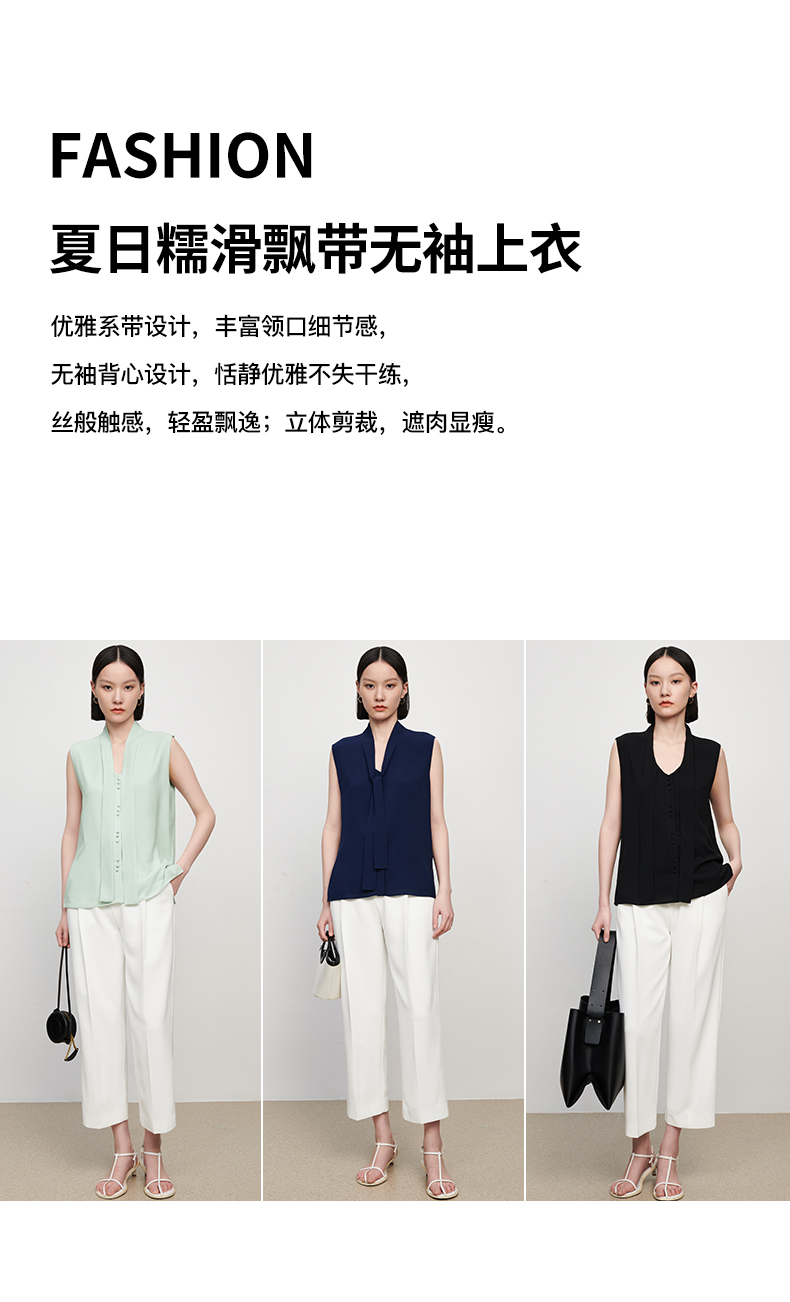 IN AND ON21210夏季新款设计感丝滑飘带衬衫女V领丝质无袖背心上衣
