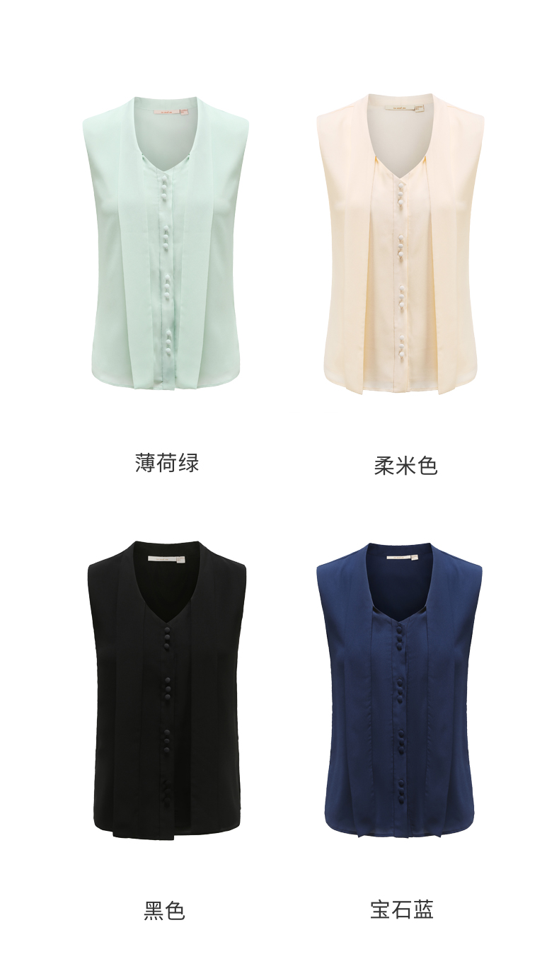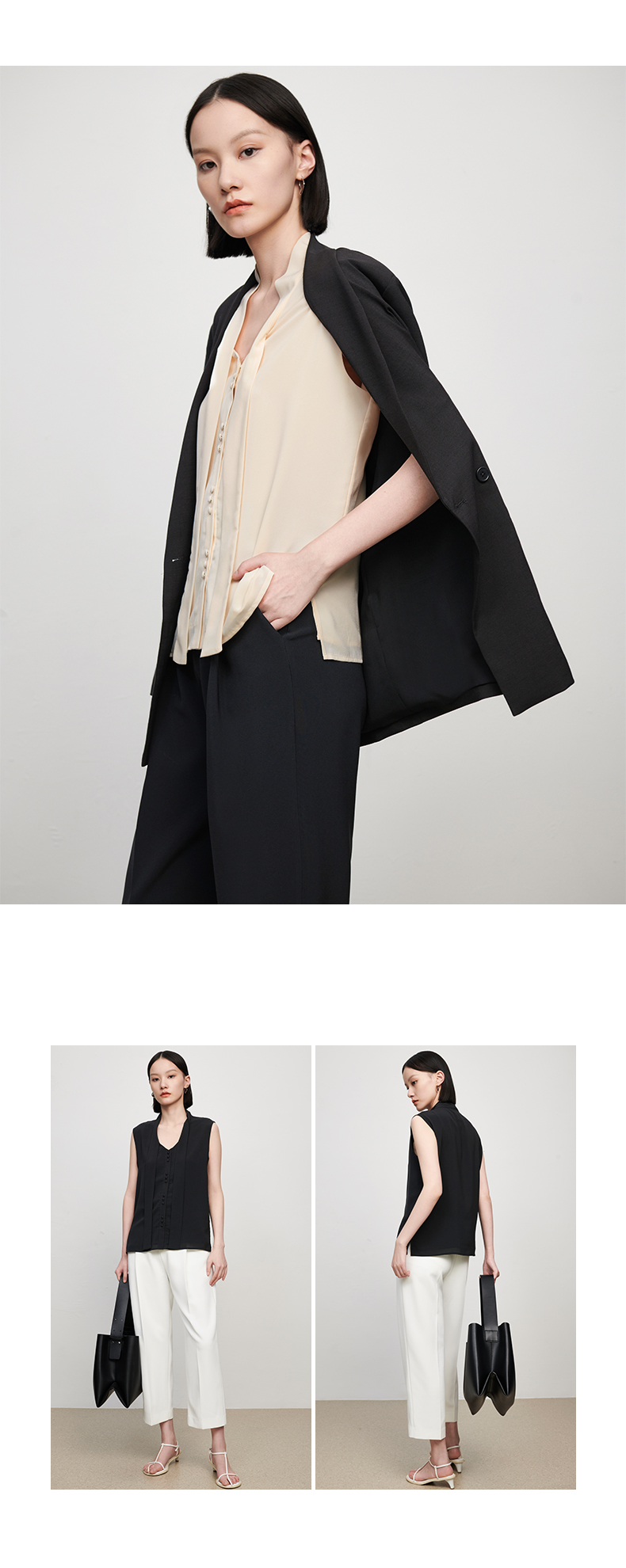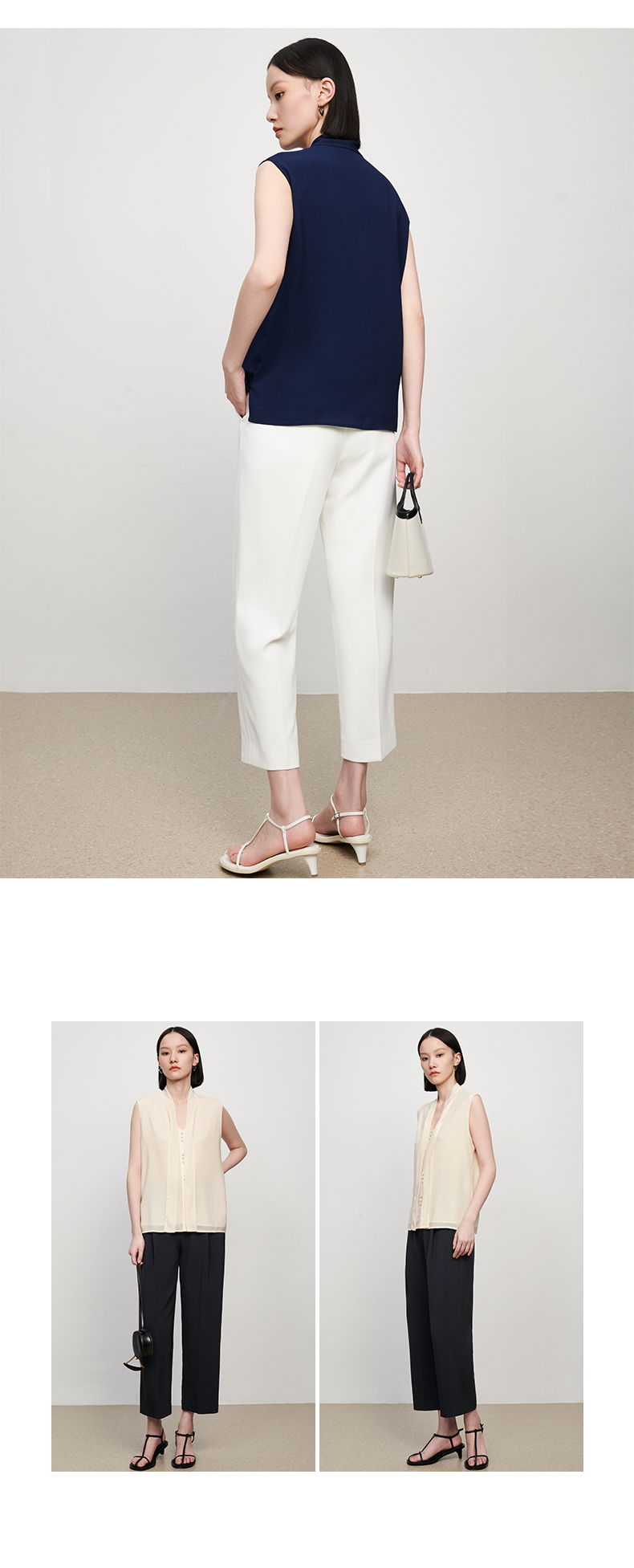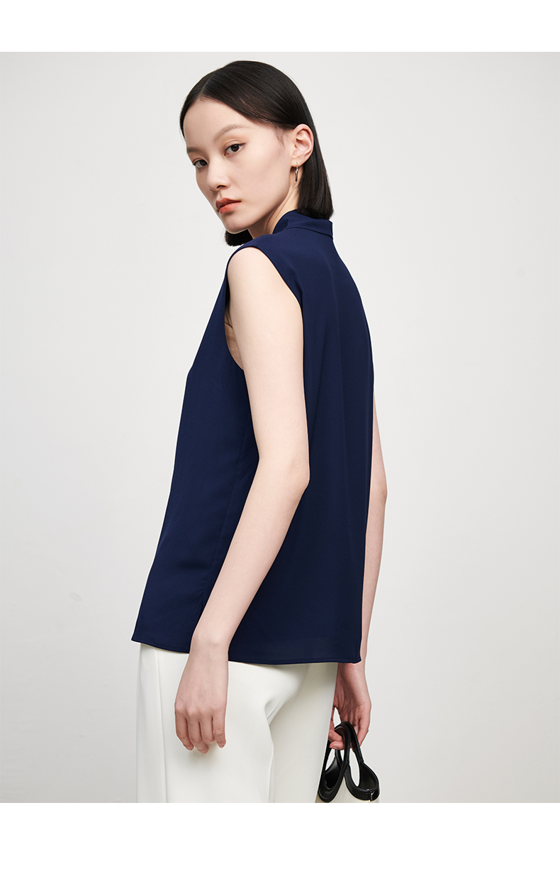 IN AND ON21210夏季新款设计感丝滑飘带衬衫女V领丝质无袖背心上衣