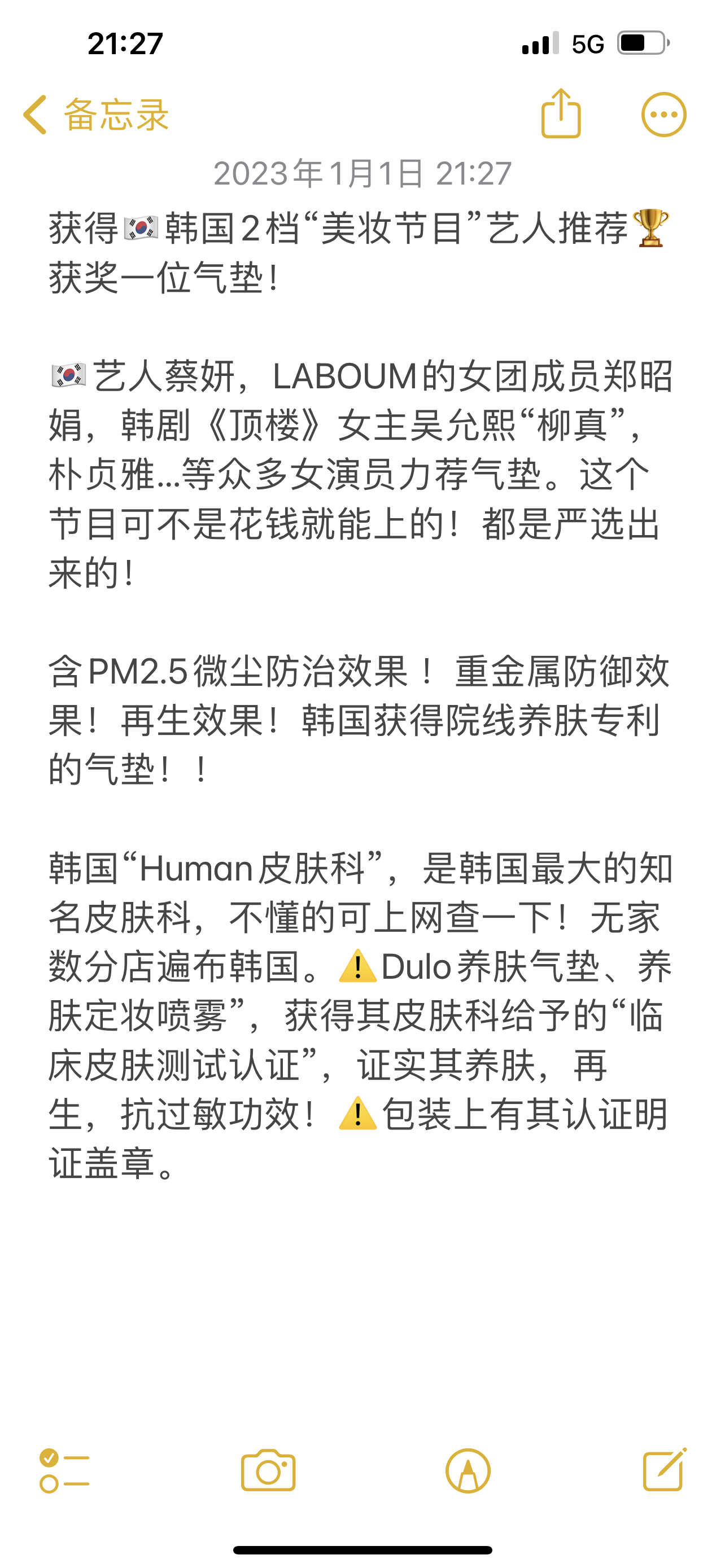 现货 EXP27年4月 韩国DULO院线气垫 自然养肤不浮粉 细腻滋润清透