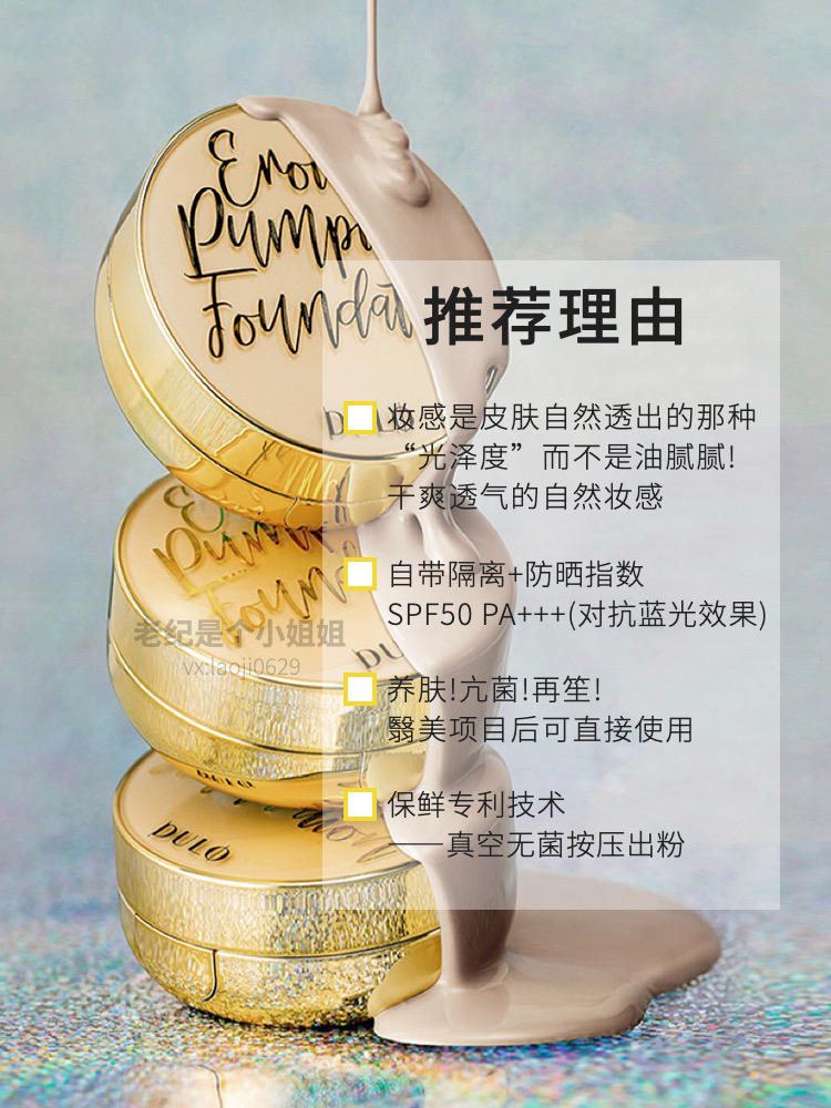 我的气垫不少于5个,这是目前大爱,滋润不拔干,手残能使用,无菌按压取粉设计,轻轻摁一下,每次都感觉是新气垫。取的粉底液在盖子上再拍一拍,可以很均匀,很均匀。
