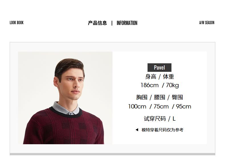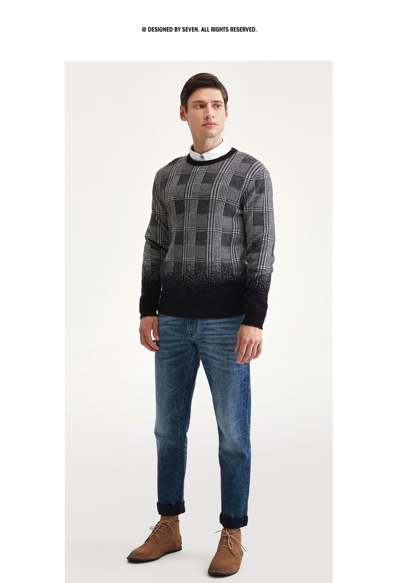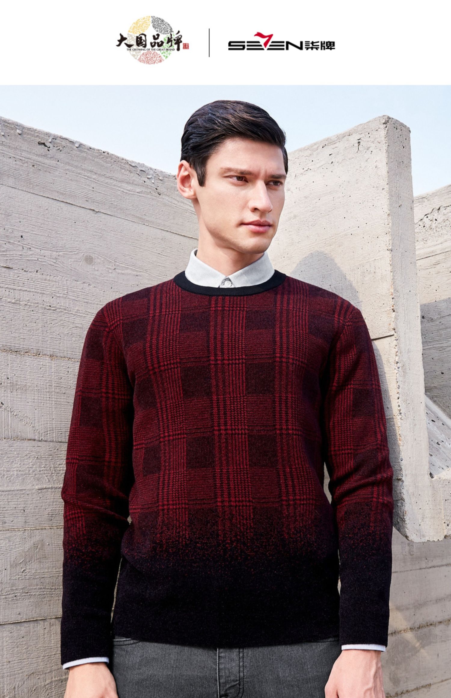 【特价】A【反季福利羊毛混纺】柒牌男装圆领商务休闲弹力打底衫117Y70110 117Y70110