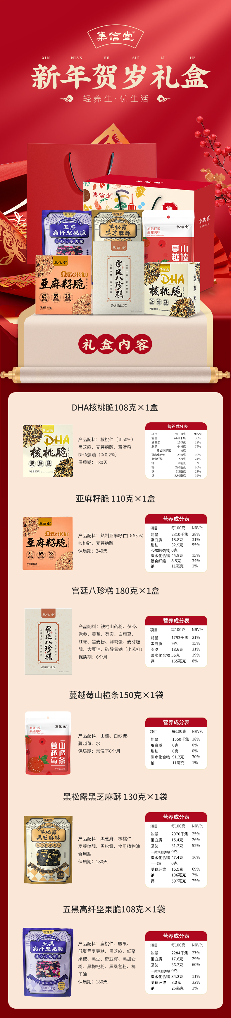 新年贺岁6包零食礼盒 786克/提 A-5664 集信堂(效期26-6)