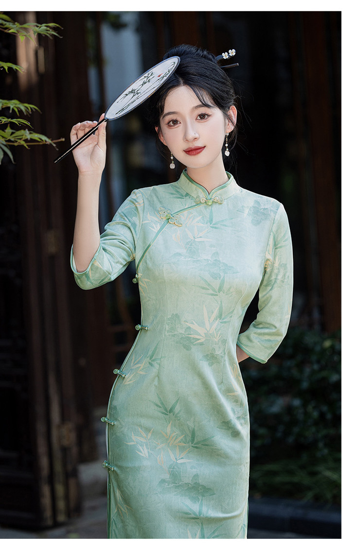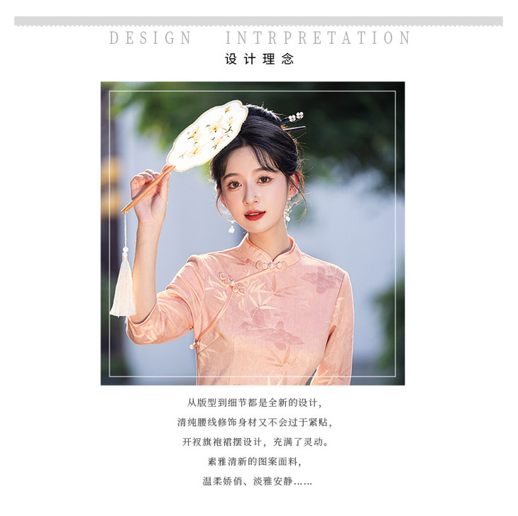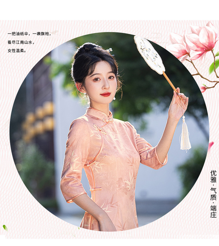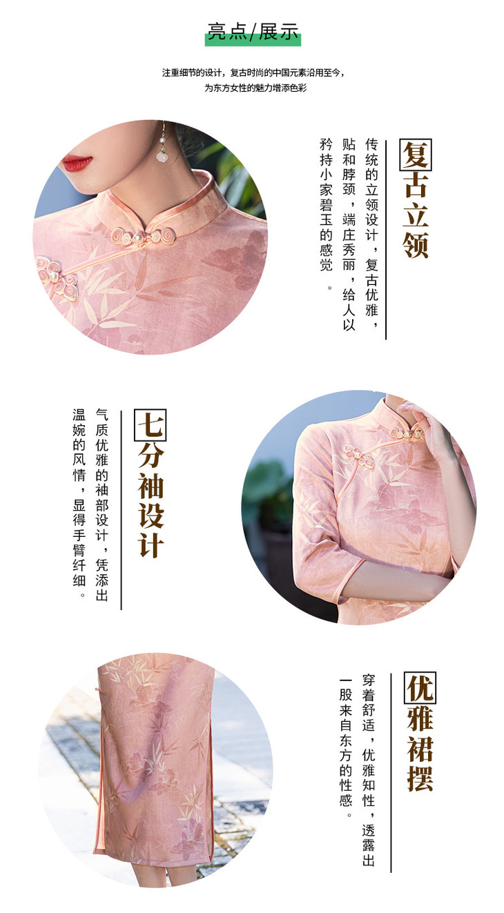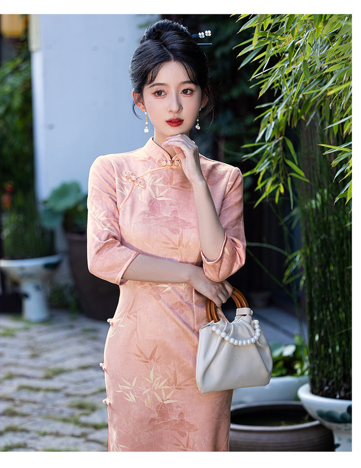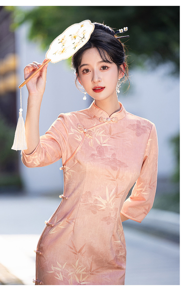 2024新中式改良秋季粉色麂皮绒年轻款显瘦甜美减龄长款旗袍MLS7061