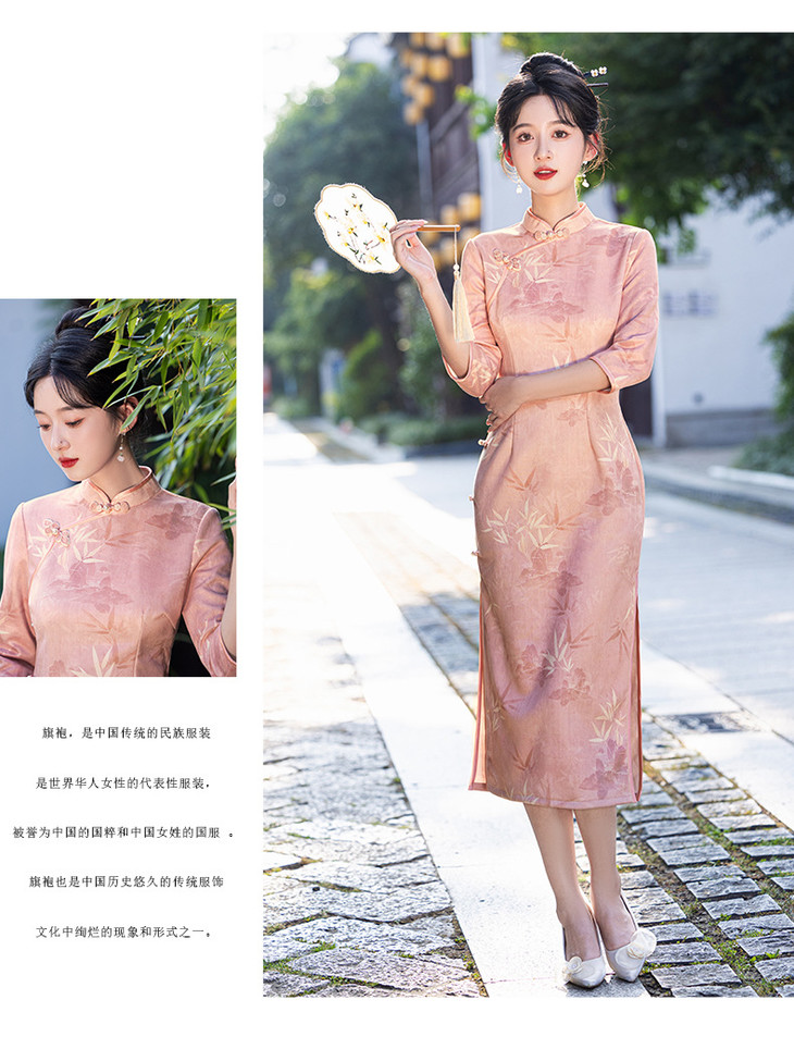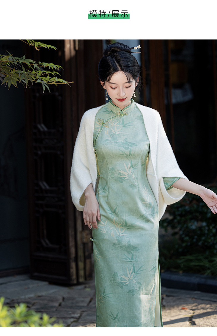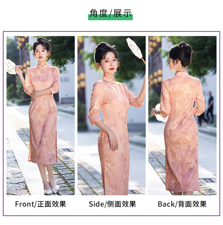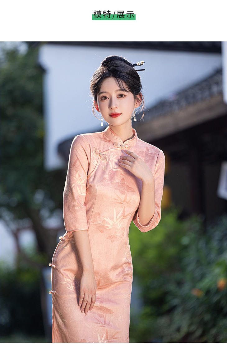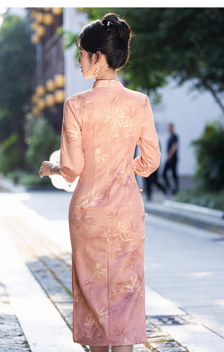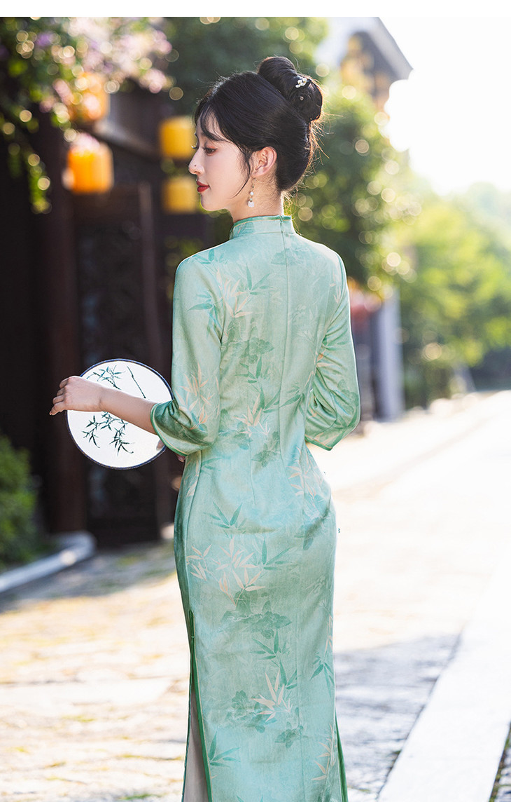2024新中式改良秋季粉色麂皮绒年轻款显瘦甜美减龄长款旗袍MLS7061