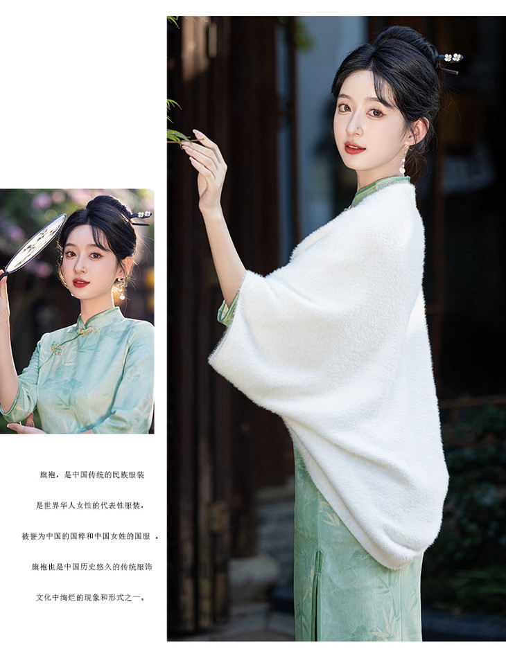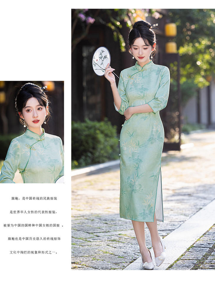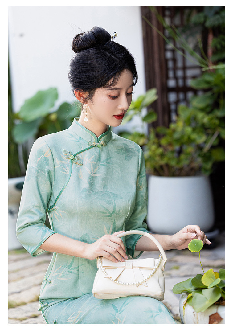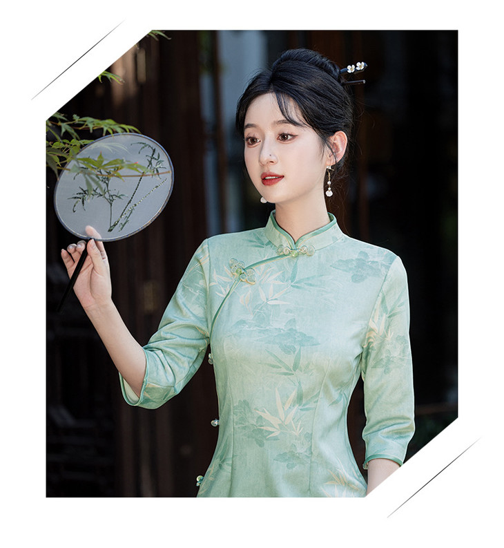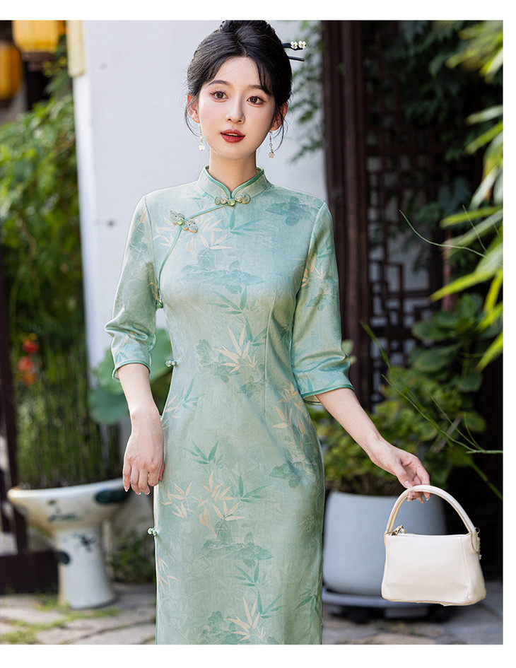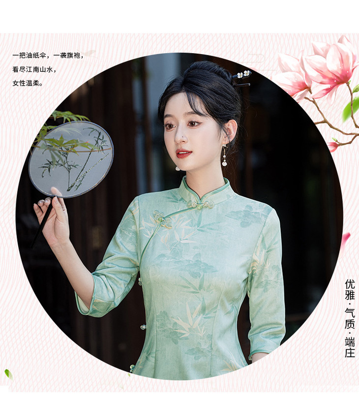 2024新中式改良秋季粉色麂皮绒年轻款显瘦甜美减龄长款旗袍MLS7061