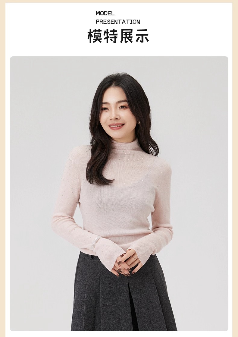 【门店同款】ENJOY冬季“暖冬新奢”高领镶钻打底针织 167993411