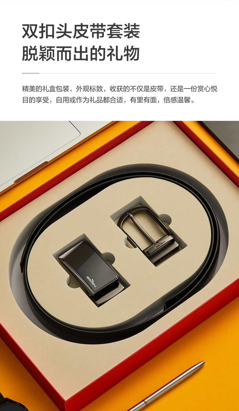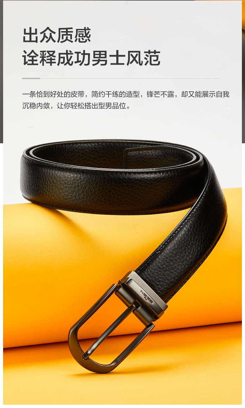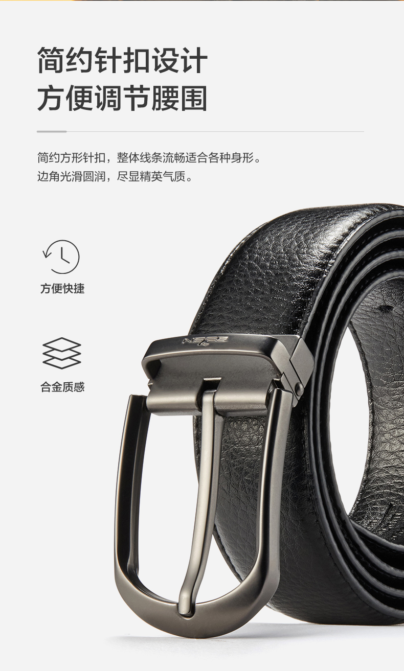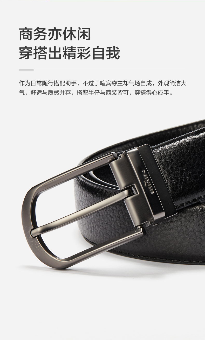 柒牌男士针扣皮带新款中年青年休闲男式配饰裤带双扣头礼盒装 123P70230