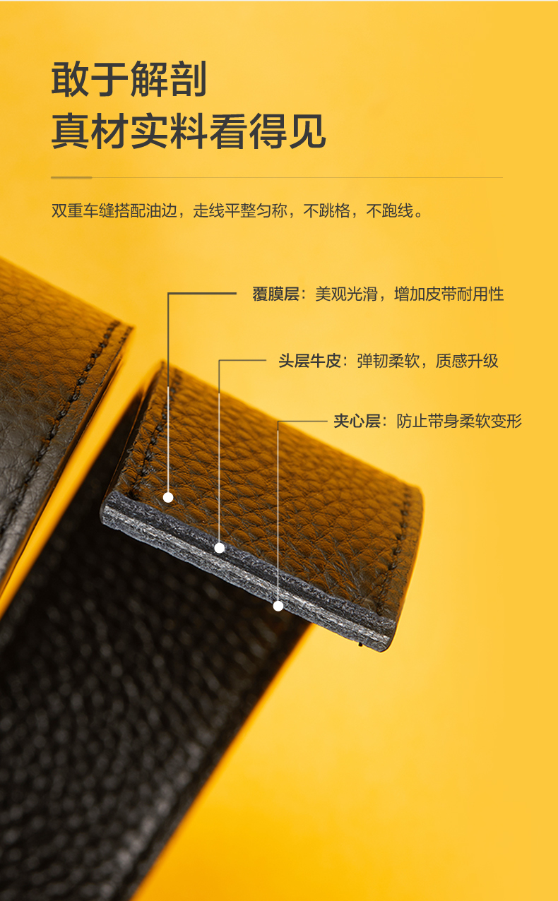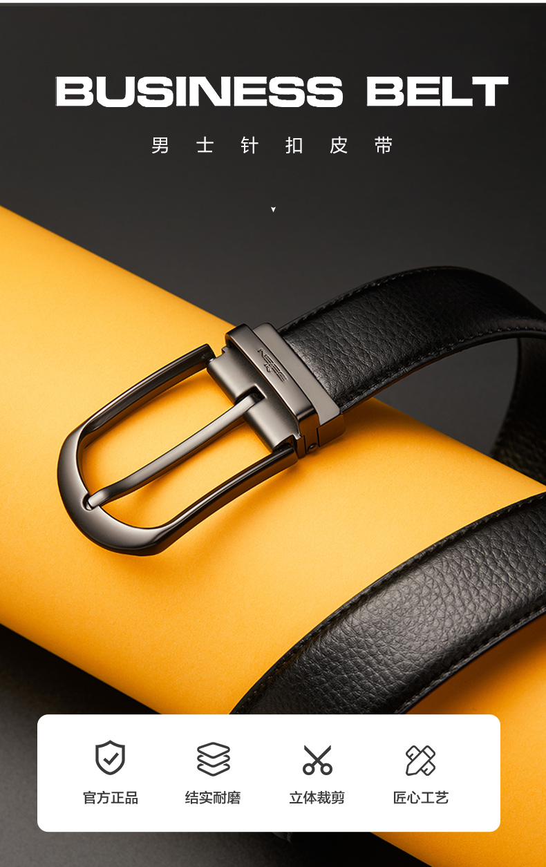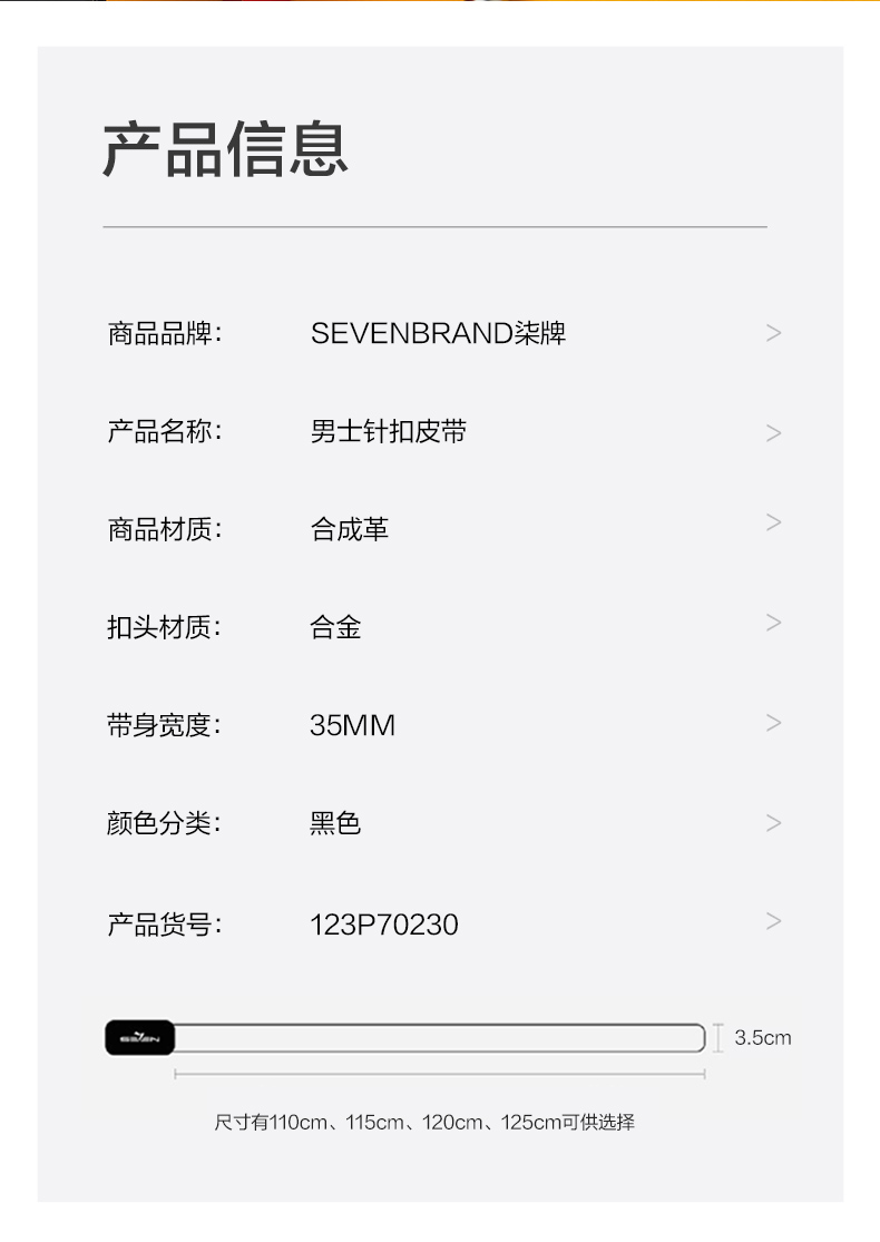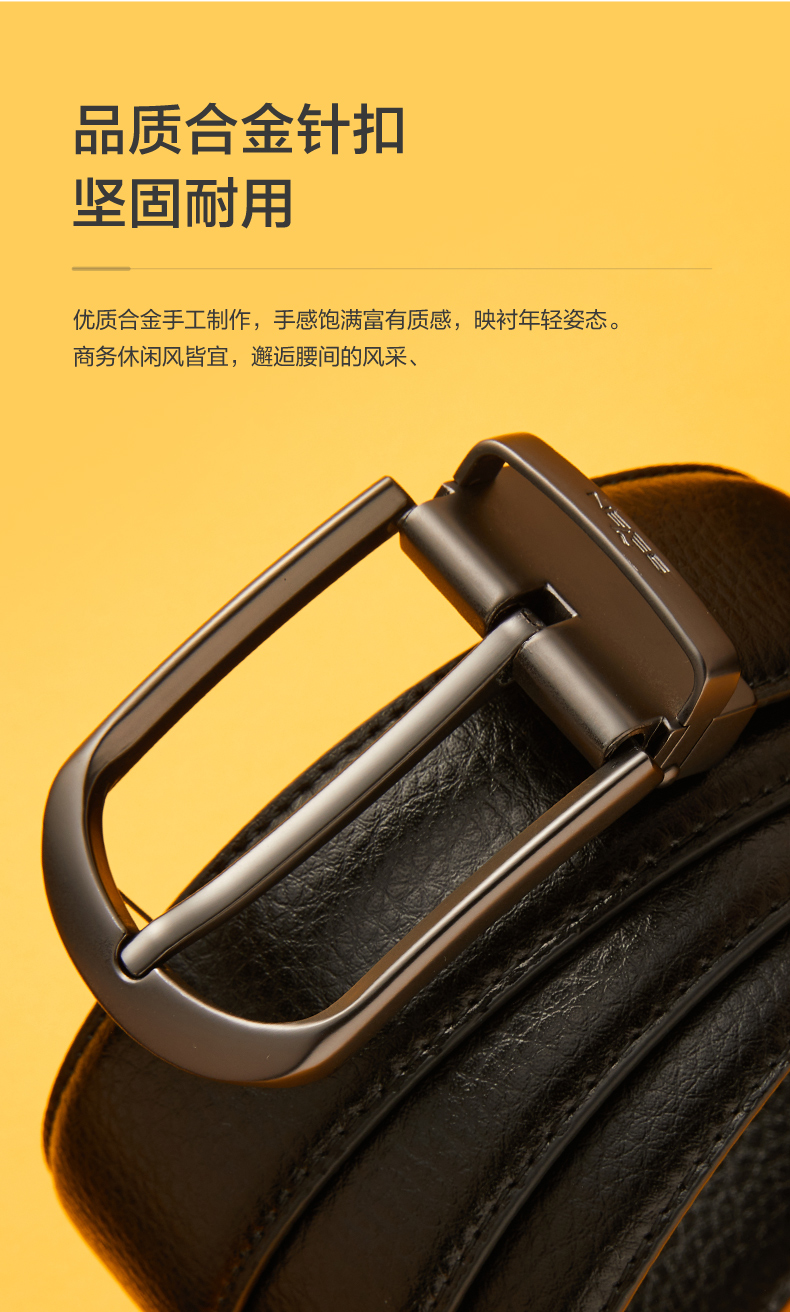 柒牌男士针扣皮带新款中年青年休闲男式配饰裤带双扣头礼盒装 123P70230