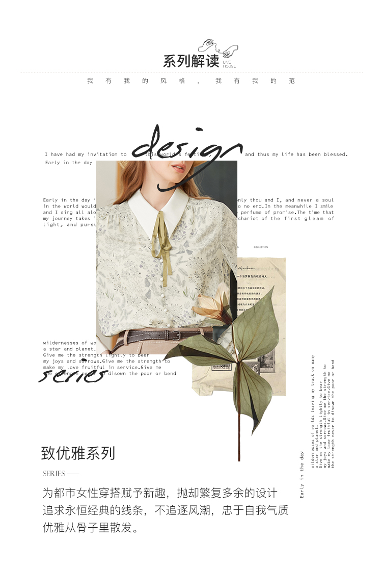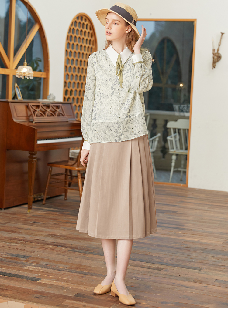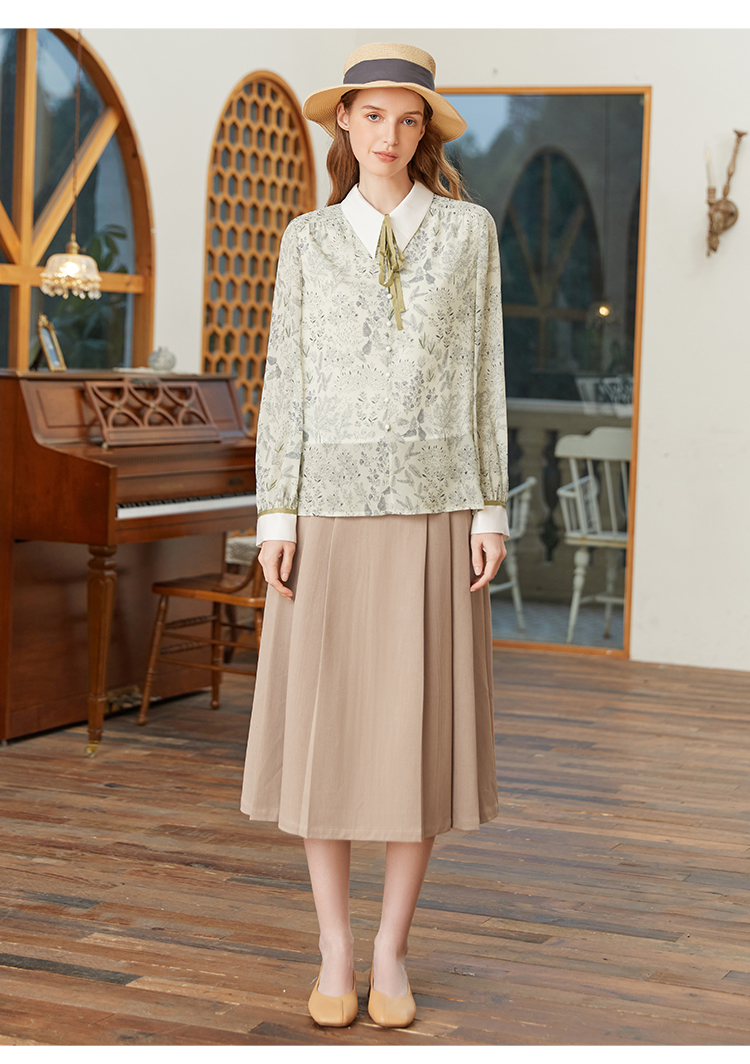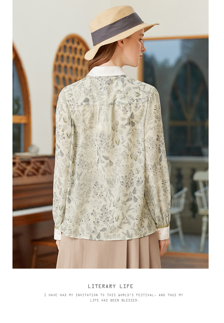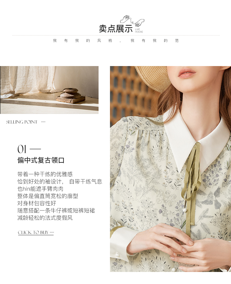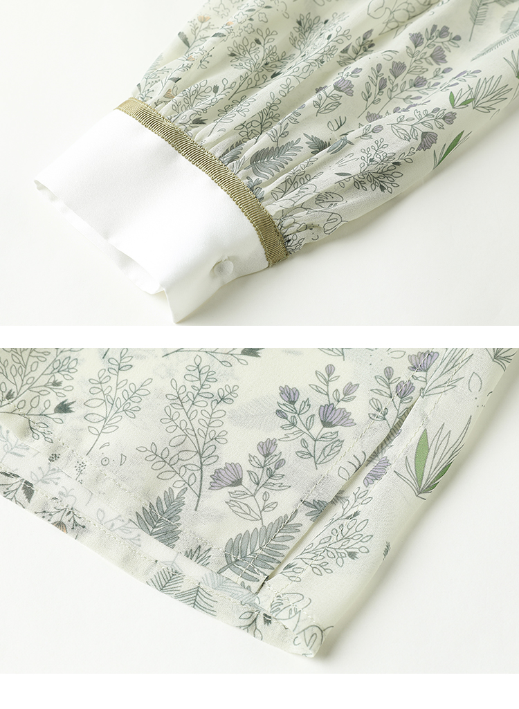 famecoco范可儿尖领系带雪纺衬衫女春款显瘦优雅印花上衣FAB1BA014