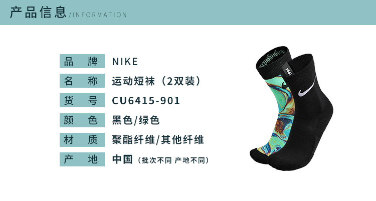 NIKE/耐克FC两双装印花运动训练足球中袜CU6415901