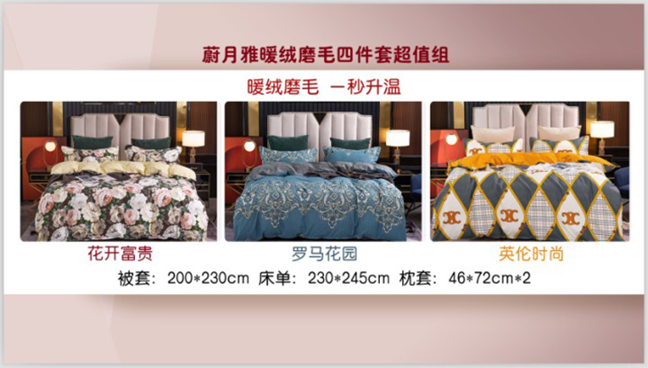 蔚月雅暖绒磨毛四件套超值组