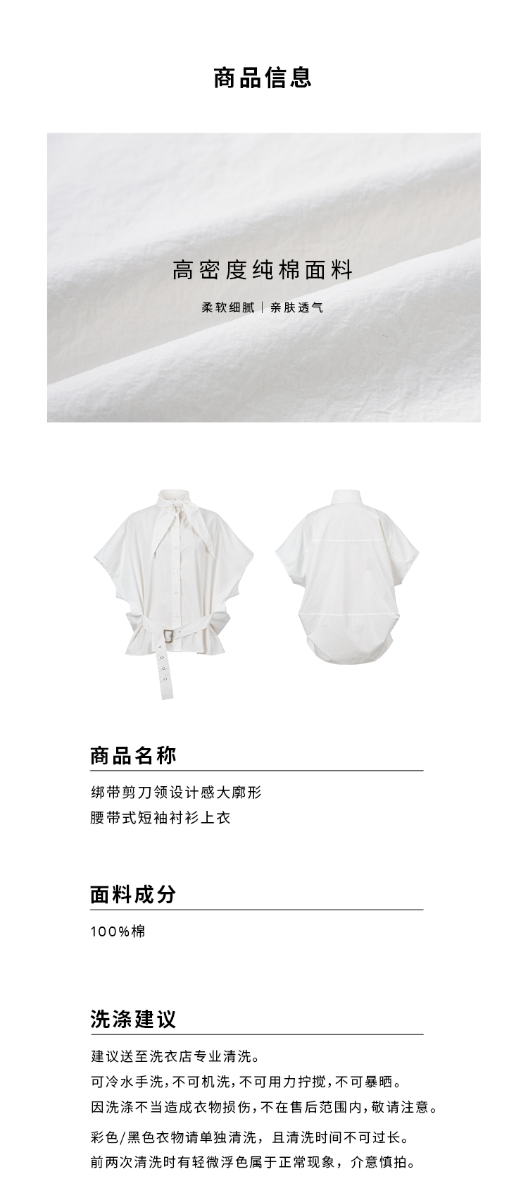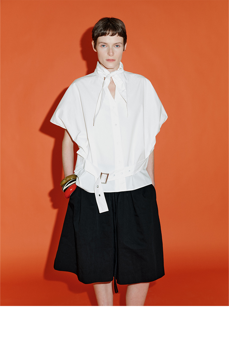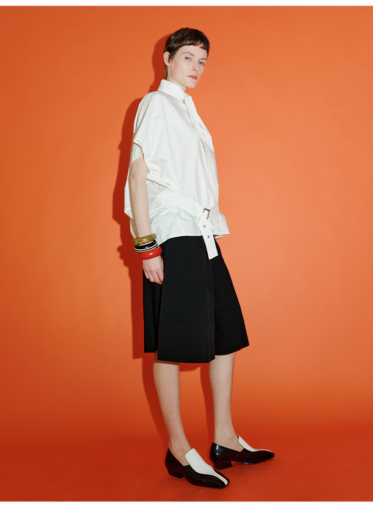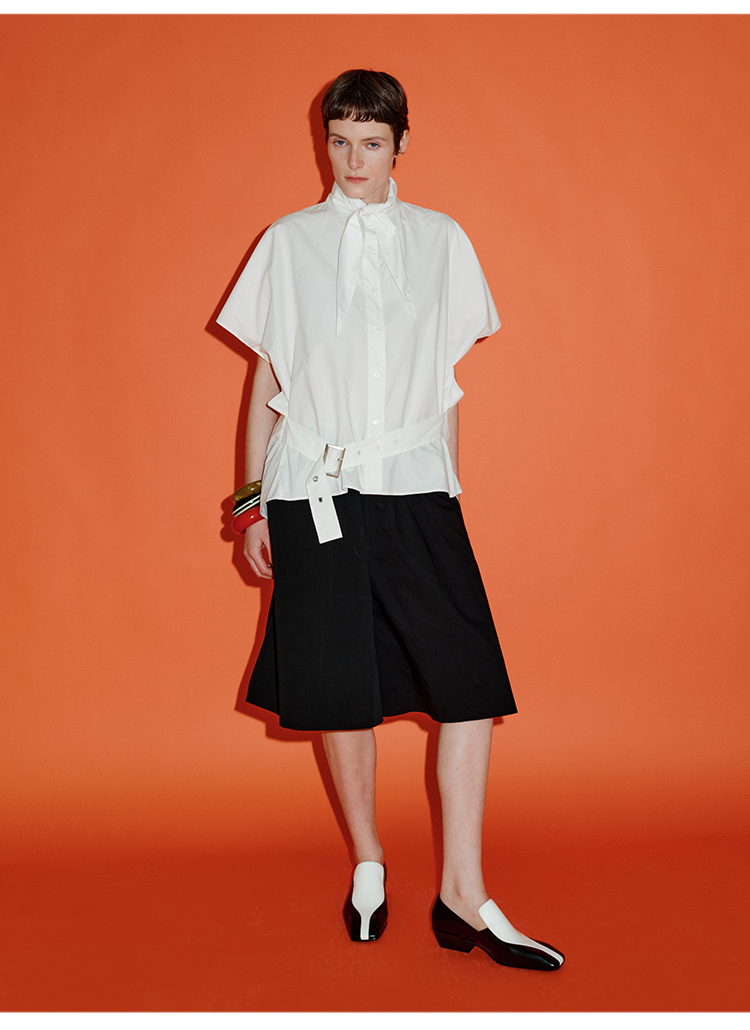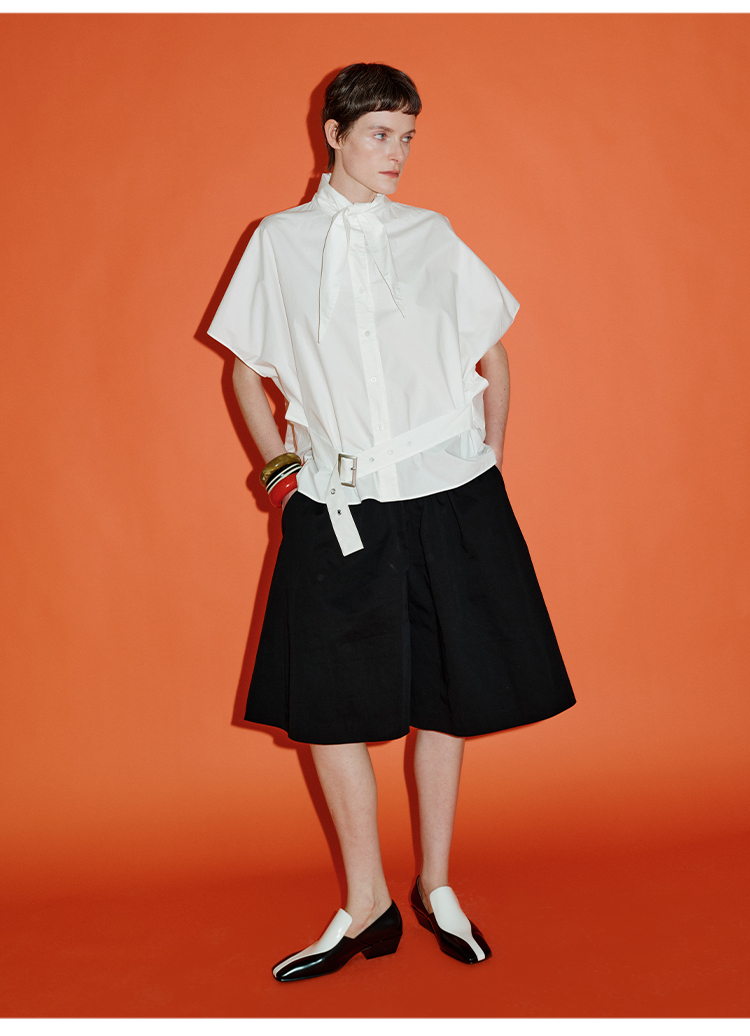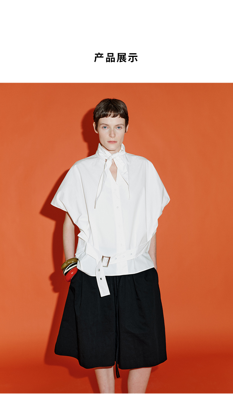 HIDEMI绑带剪刀领设计感大廓形腰带式短袖衬衫上衣