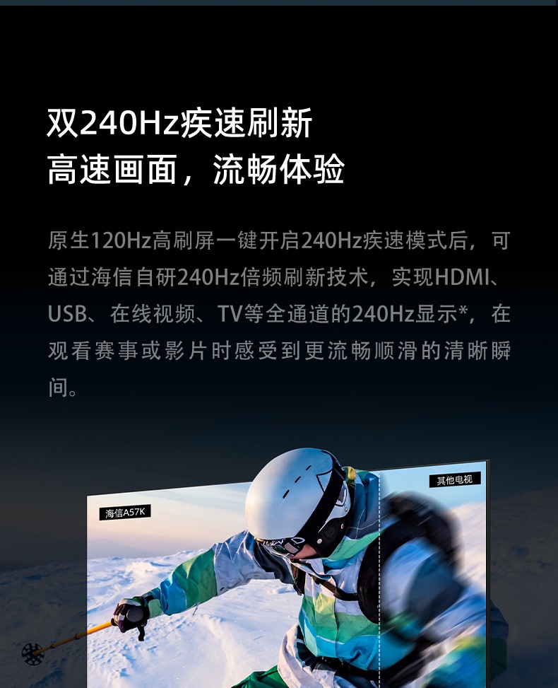 海信【65A57K】65英寸 HIFI高保真音响系统/240HZ超高刷/U+超画质引擎 PRO/高色域电视