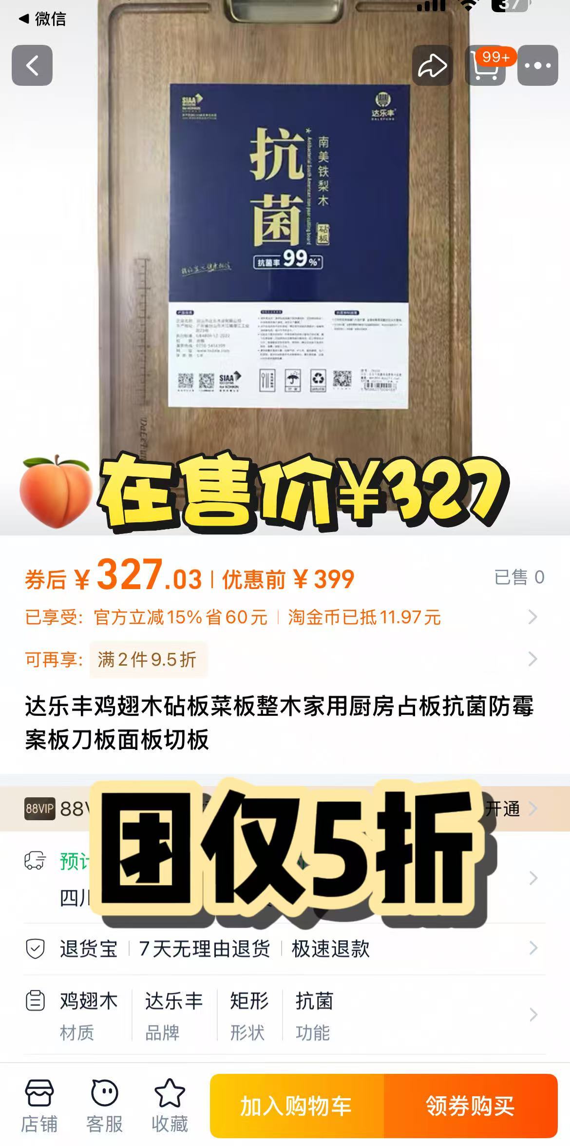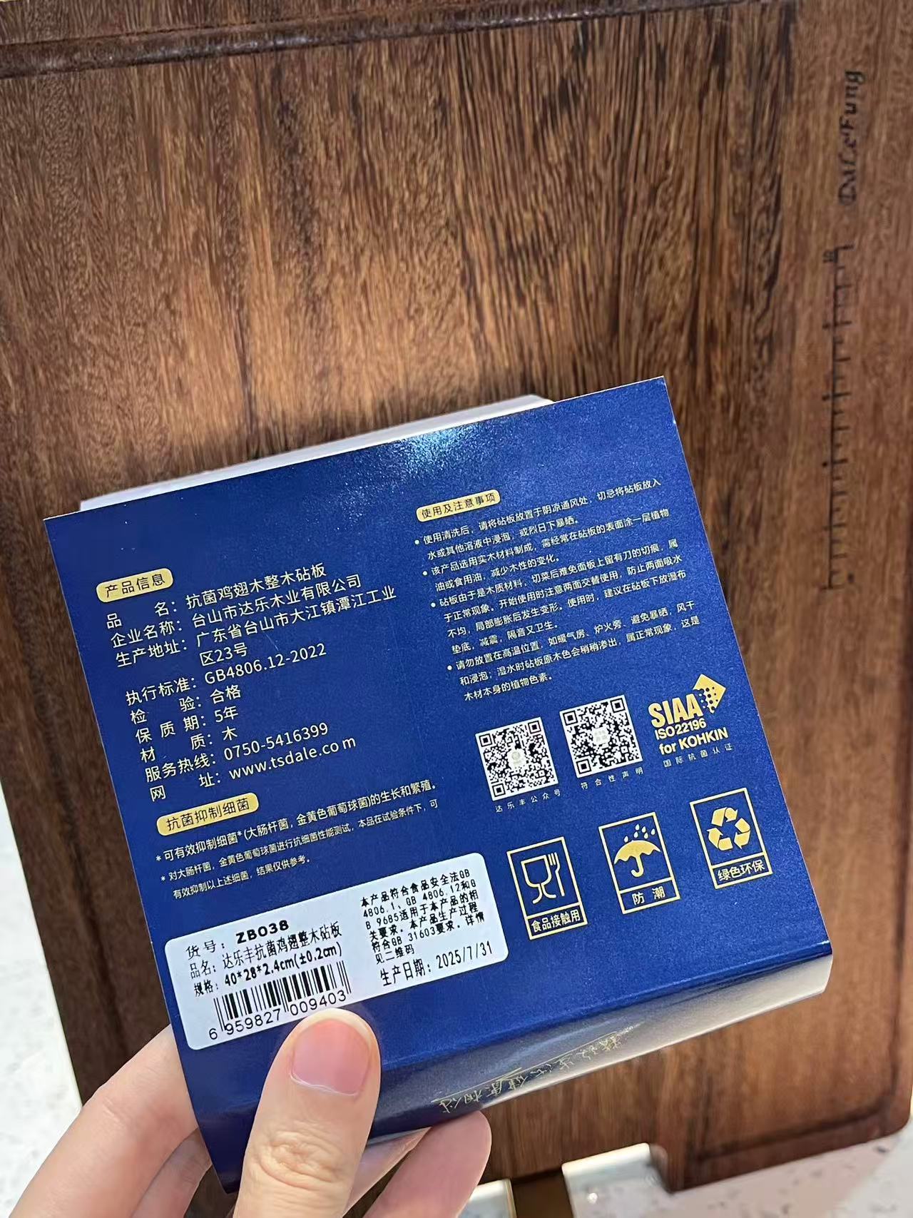 72小时发货【抗菌整木砧板】南美进口铁梨木+抗菌鸡翅木,硬度高、耐腐蚀,原木完整切割,不拼接无胶水!纯实木!防霉抗菌!无漆无蜡无甲醛,菜板加厚2.4厘米,耐高温,实拍