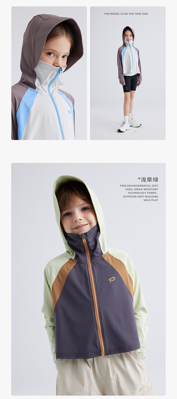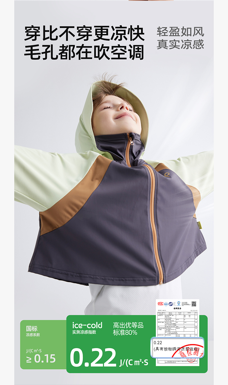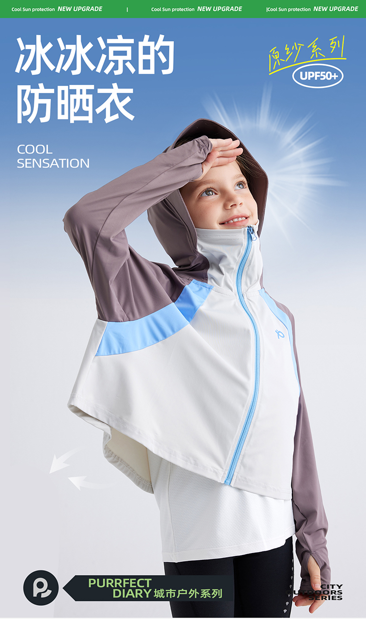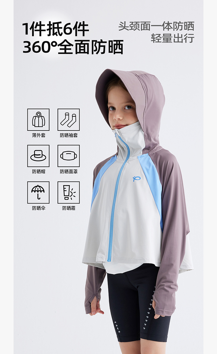 fx-【凉感防晒 UPF50+】儿童撞色冰皮斗篷防晒衣 PXW2409