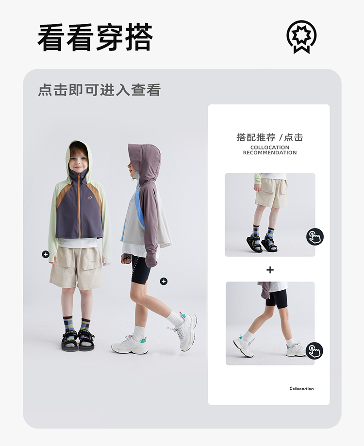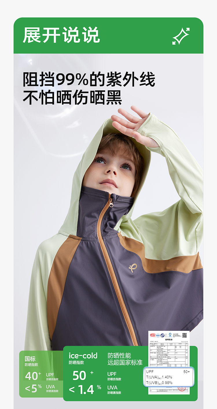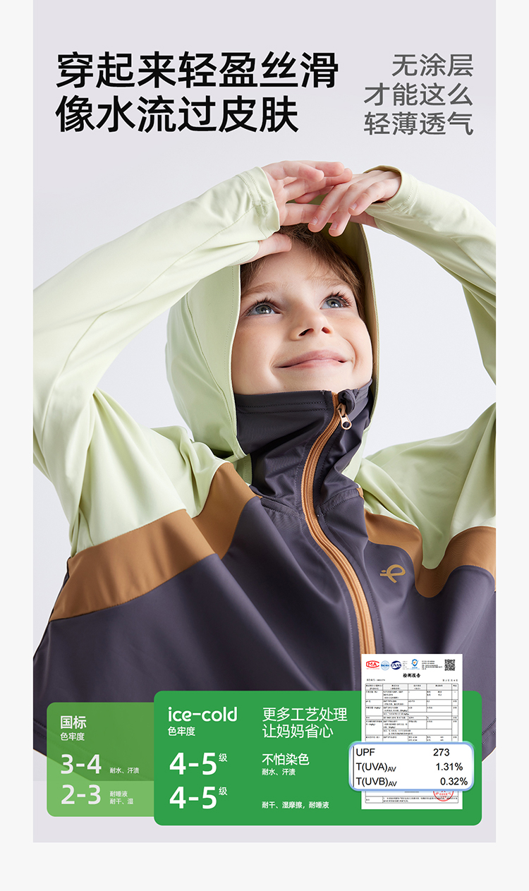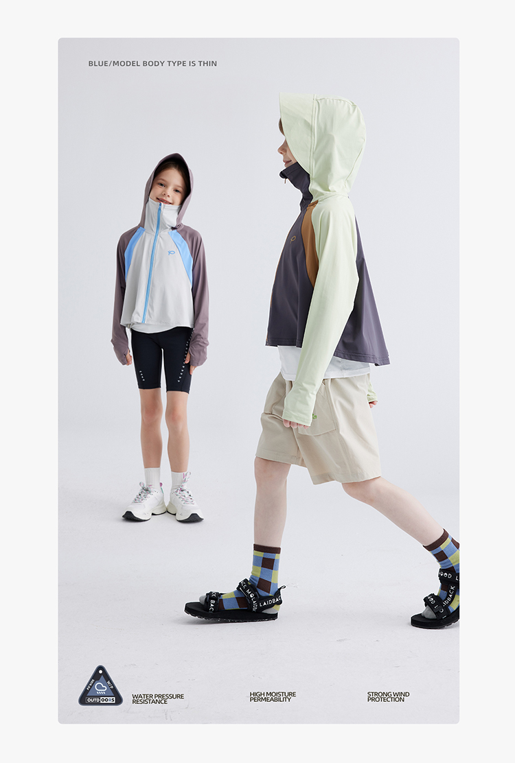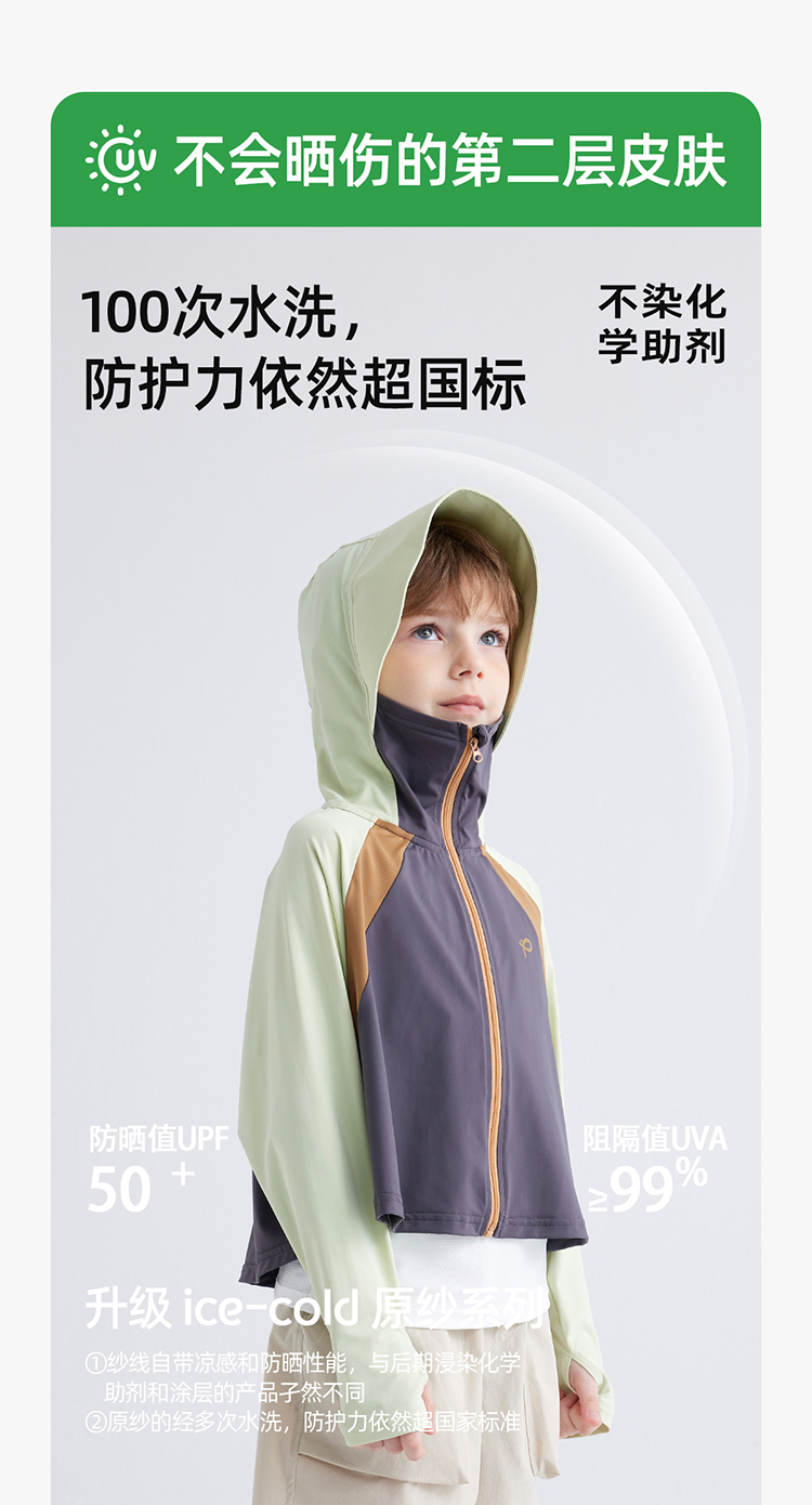 fx-【凉感防晒 UPF50+】儿童撞色冰皮斗篷防晒衣 PXW2409