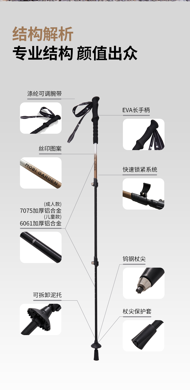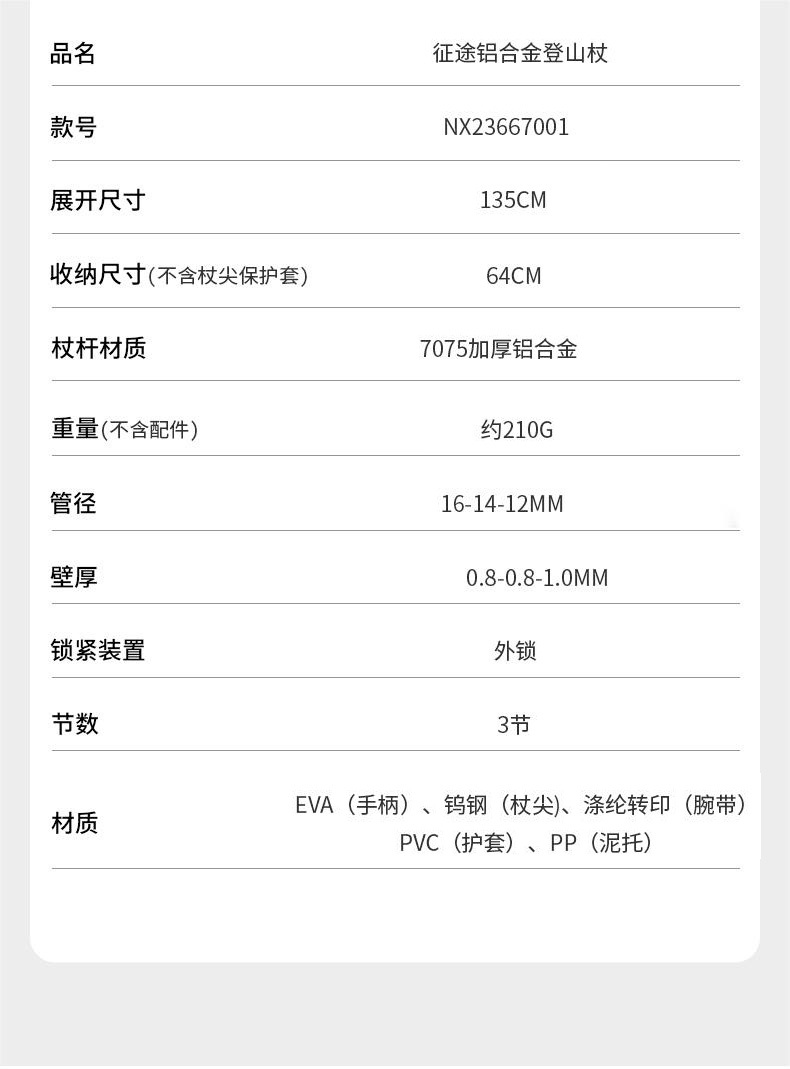 牧高笛(MOBIGARDEN)征途铝合金登山杖 NX23667001