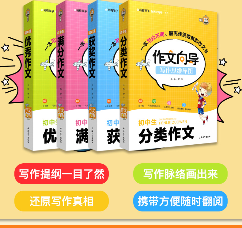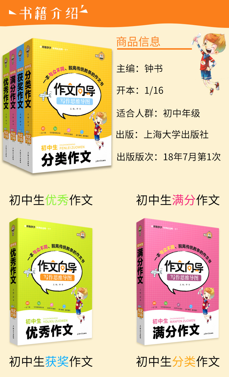 钟书初中生作文书大全2019年中学生作文素材2020人教版中考满分作文最新版作文书优秀写作技巧书籍初中初一七年级人教版写作技巧书
