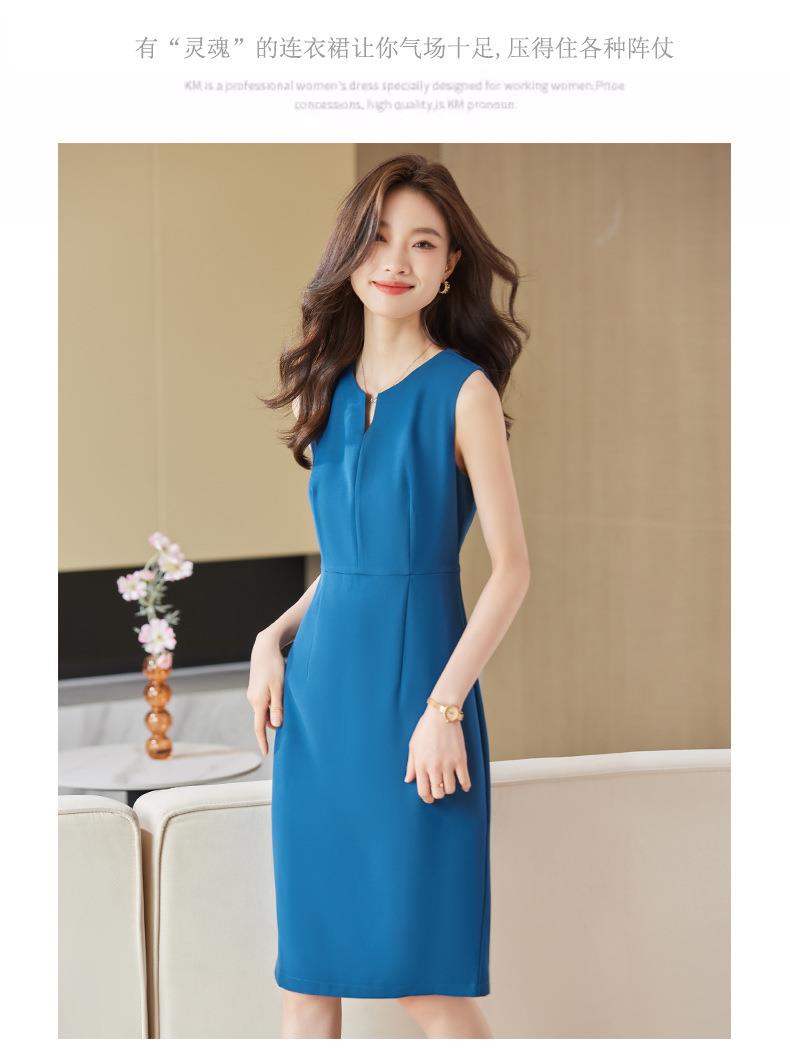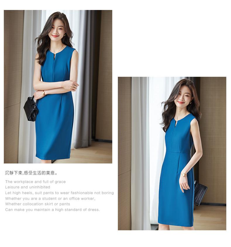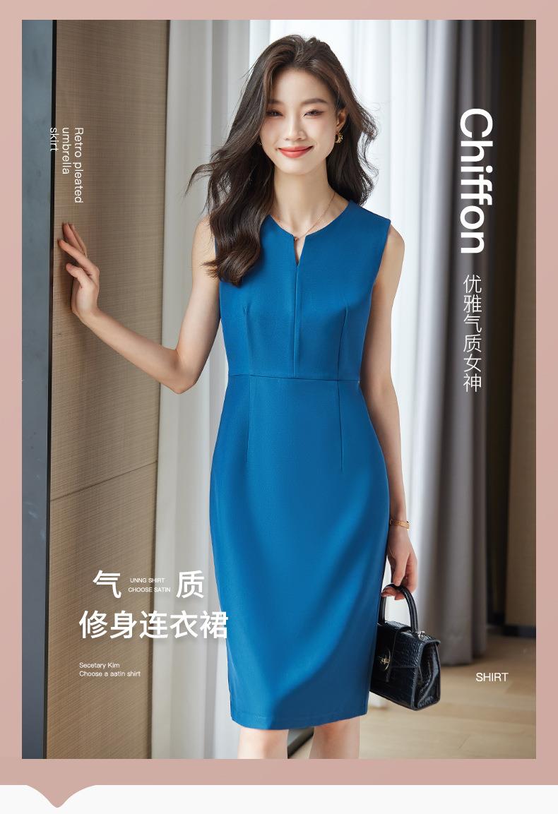 娜璐多 蓝色垂感连衣裙女秋季2023新款气质名媛高端裙子内搭单穿无袖上衣