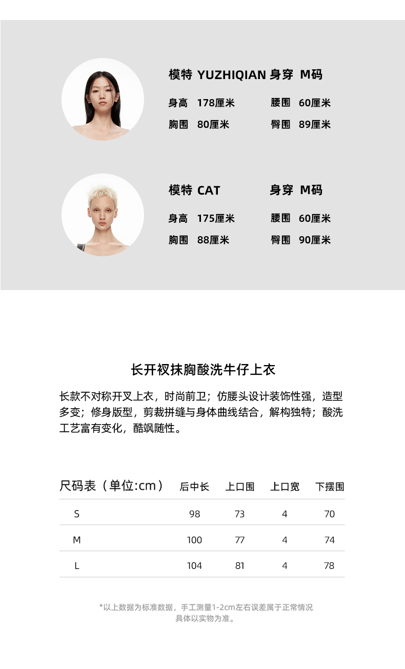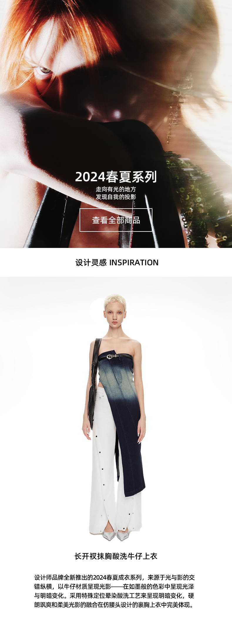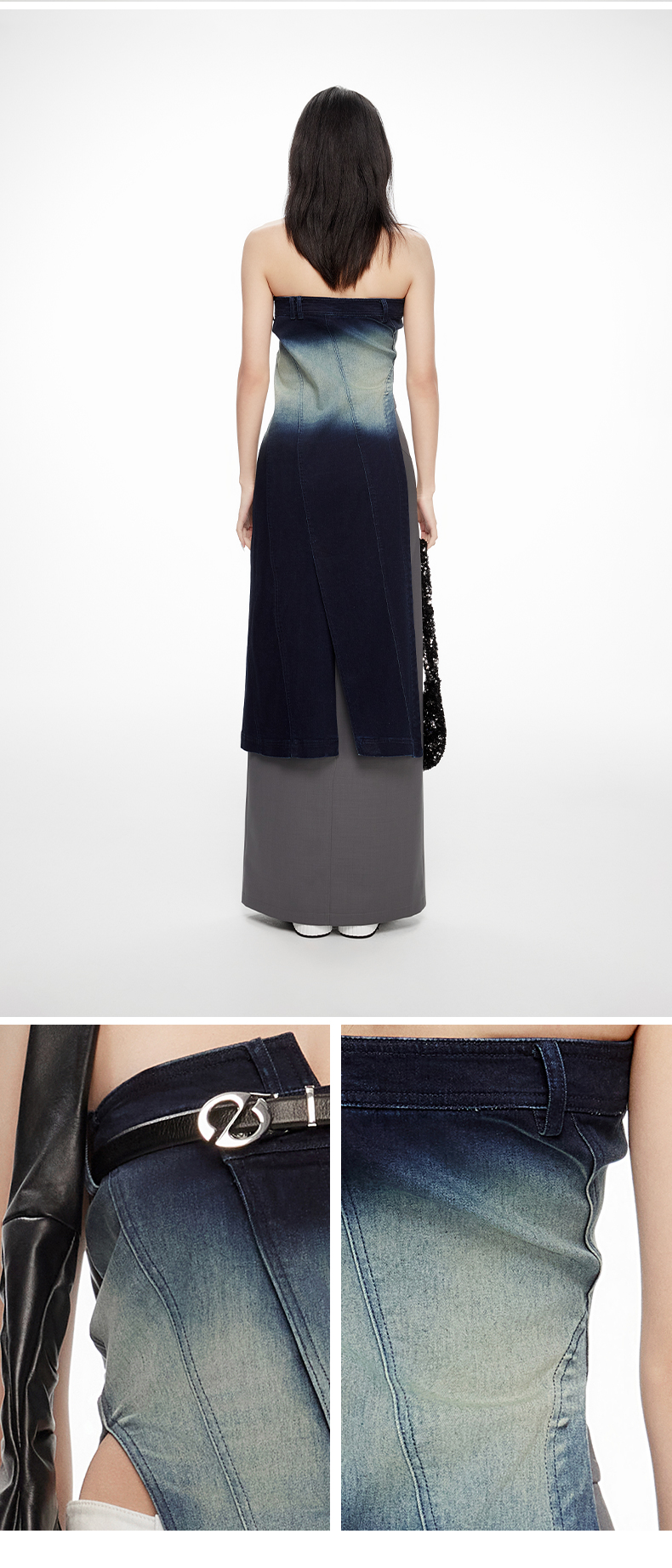 lost in echo2024春季新品设计师品牌长开衩抹胸酸洗牛仔上衣