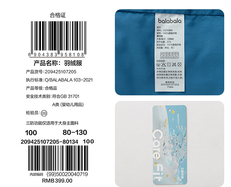 【爆品主推】巴拉巴拉balaOne儿童羽绒服男童女童冬连帽外套保暖宝宝三防2025