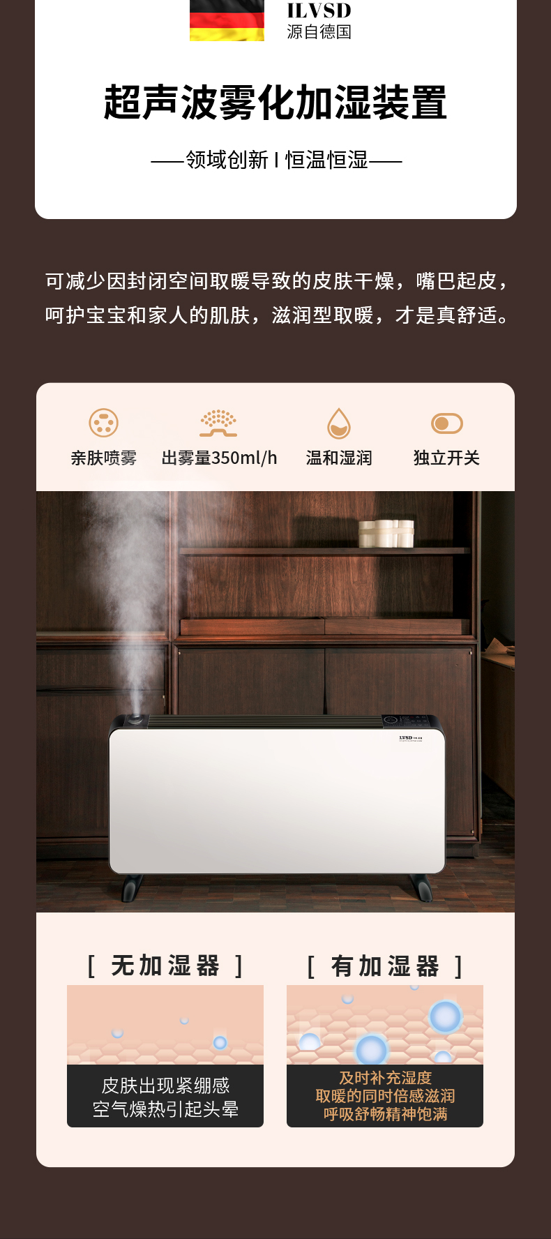 利维斯顿(ILVSD) 德国取暖器节能家用省电暖风欧式快热炉暖气片浴室暖风机电暖气大面积电暖器 2200w APP操控 ≤20㎡适用【加湿】