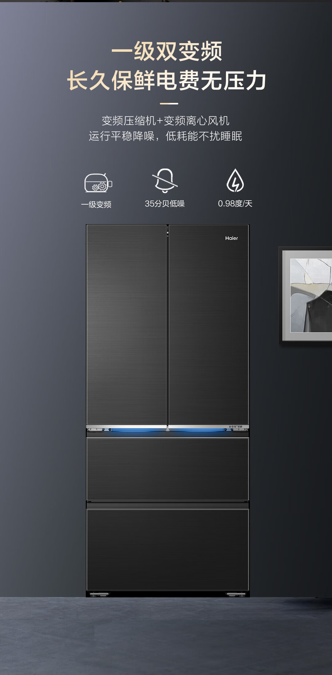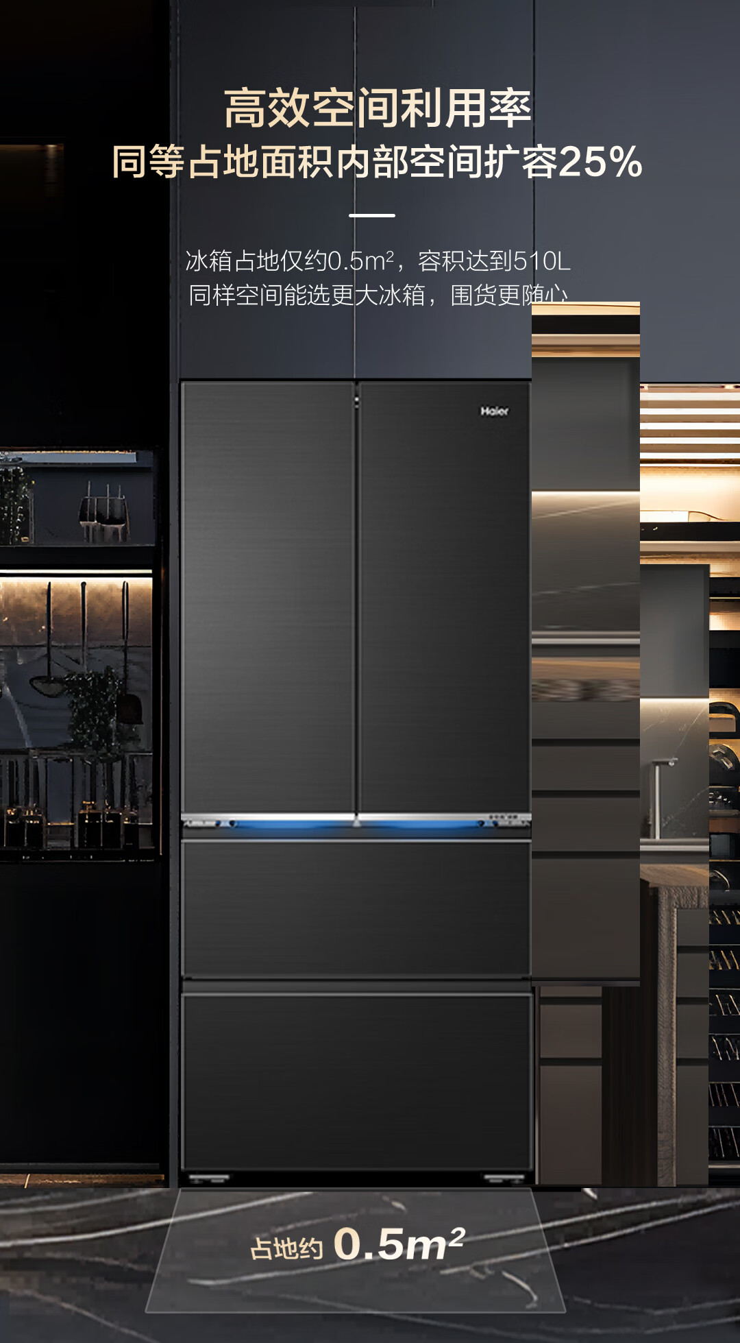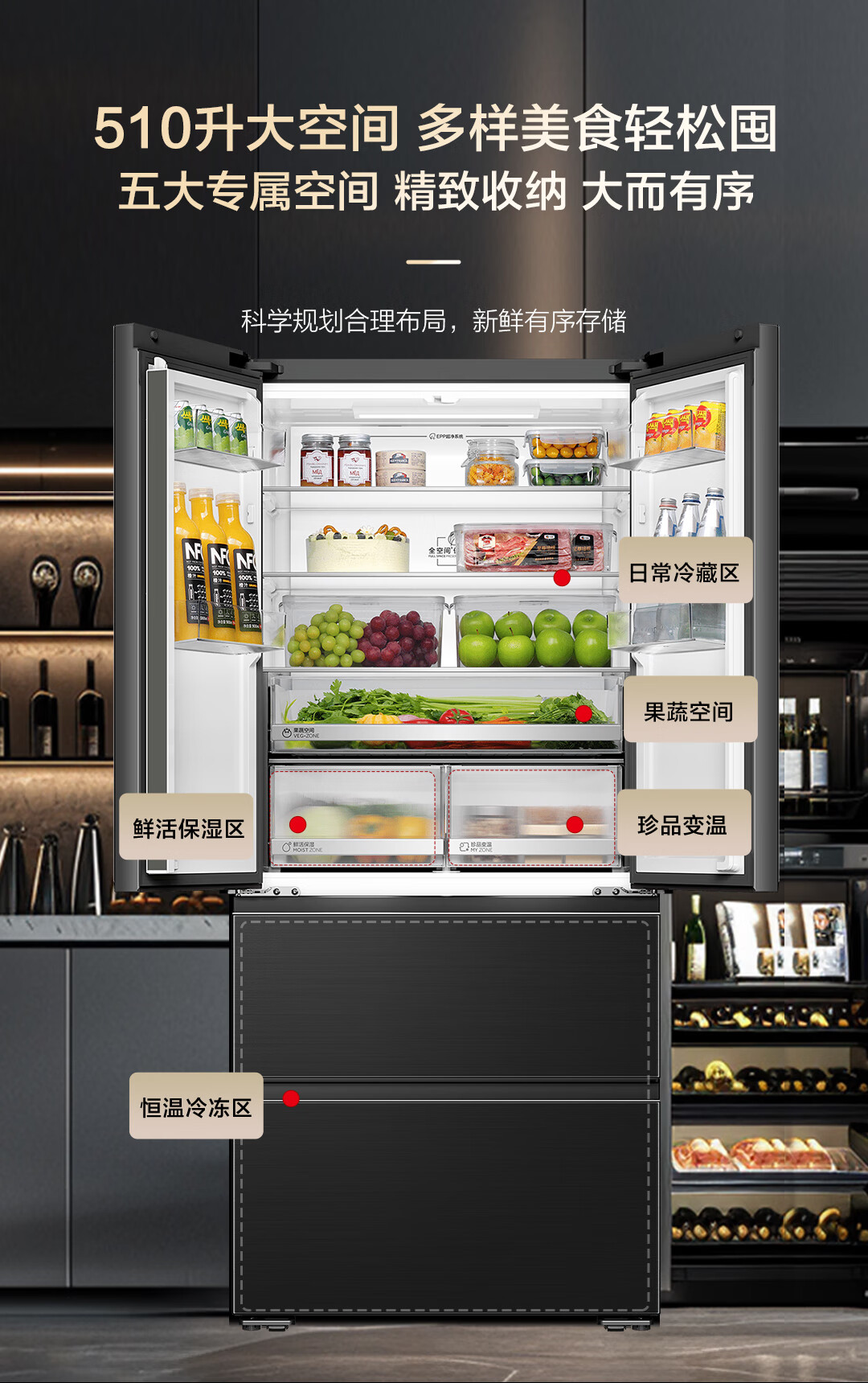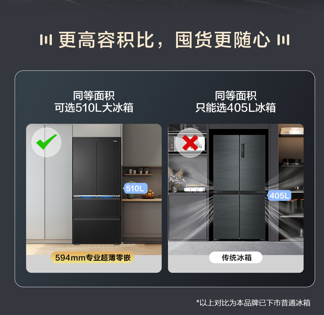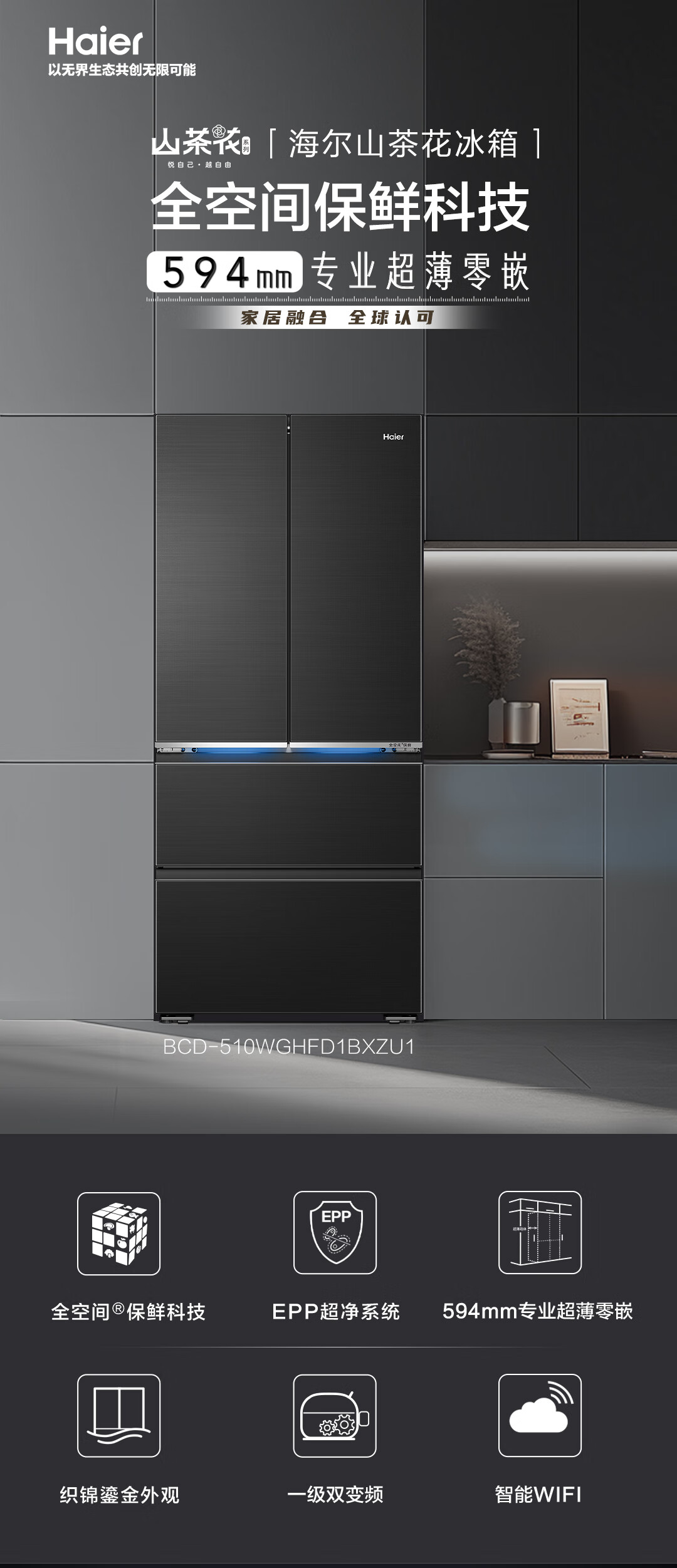 海尔山茶花冰箱 全空间保鲜 超薄零嵌 法式 BCD-510WGHFD1BXZU1