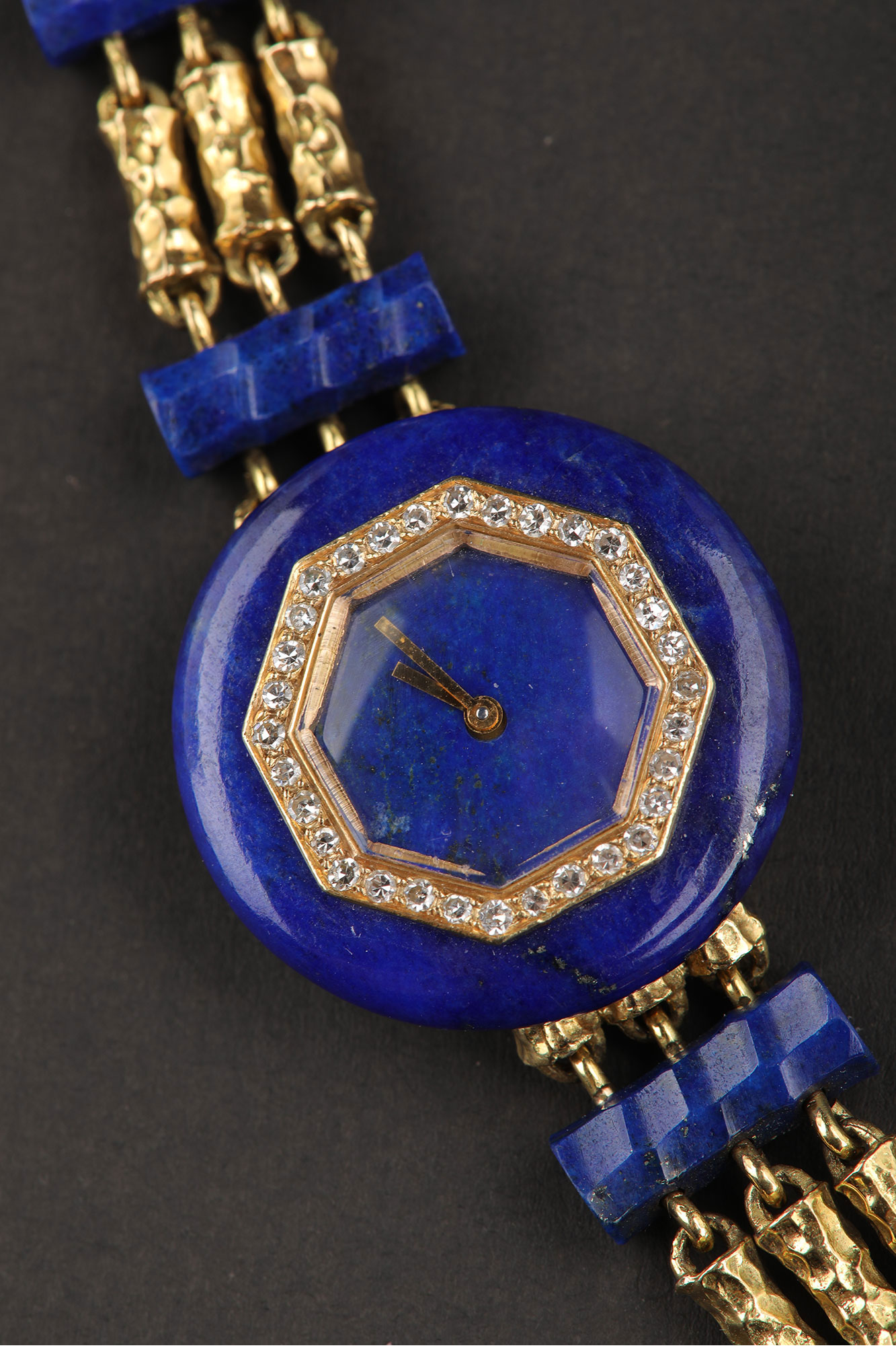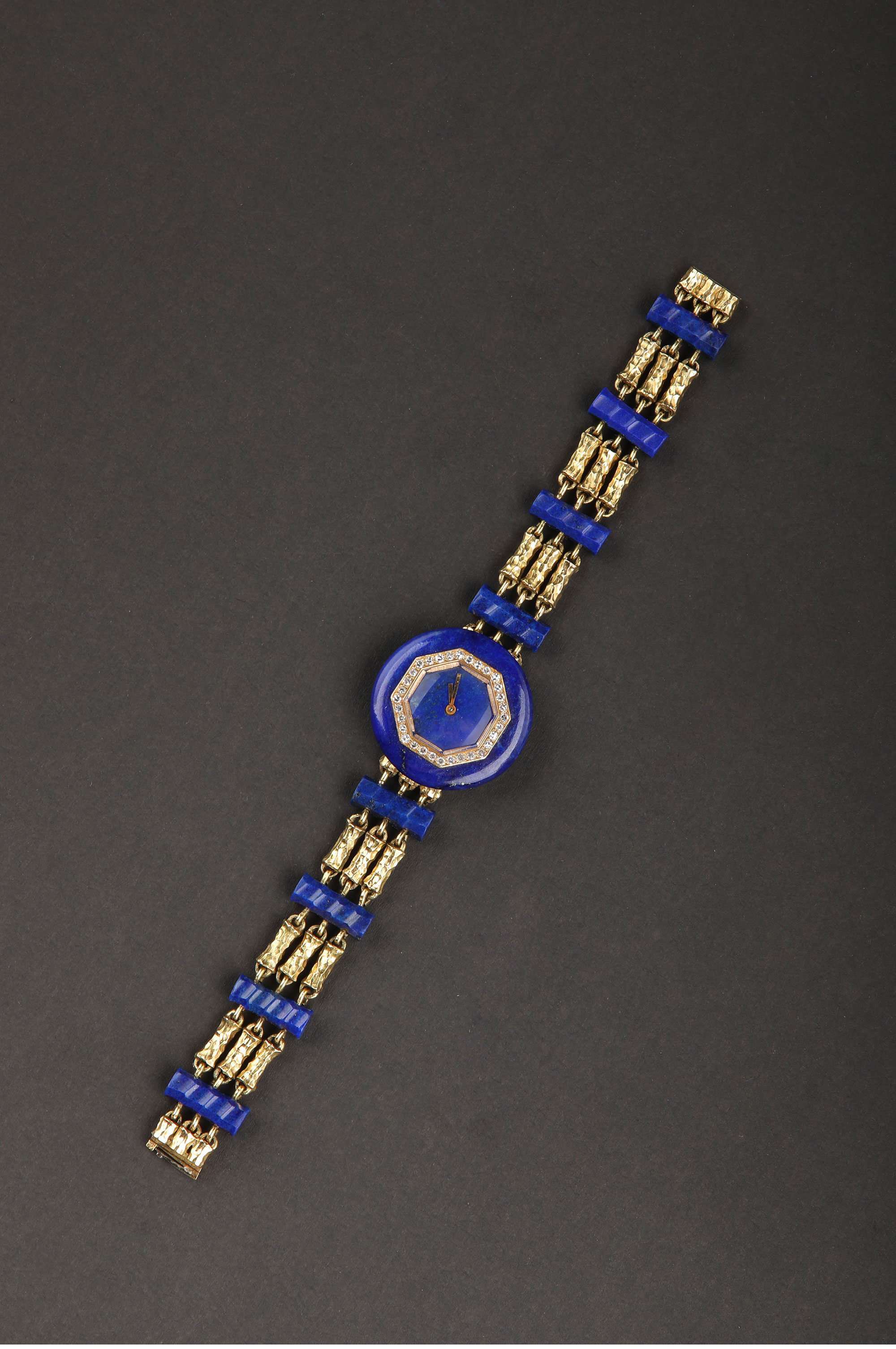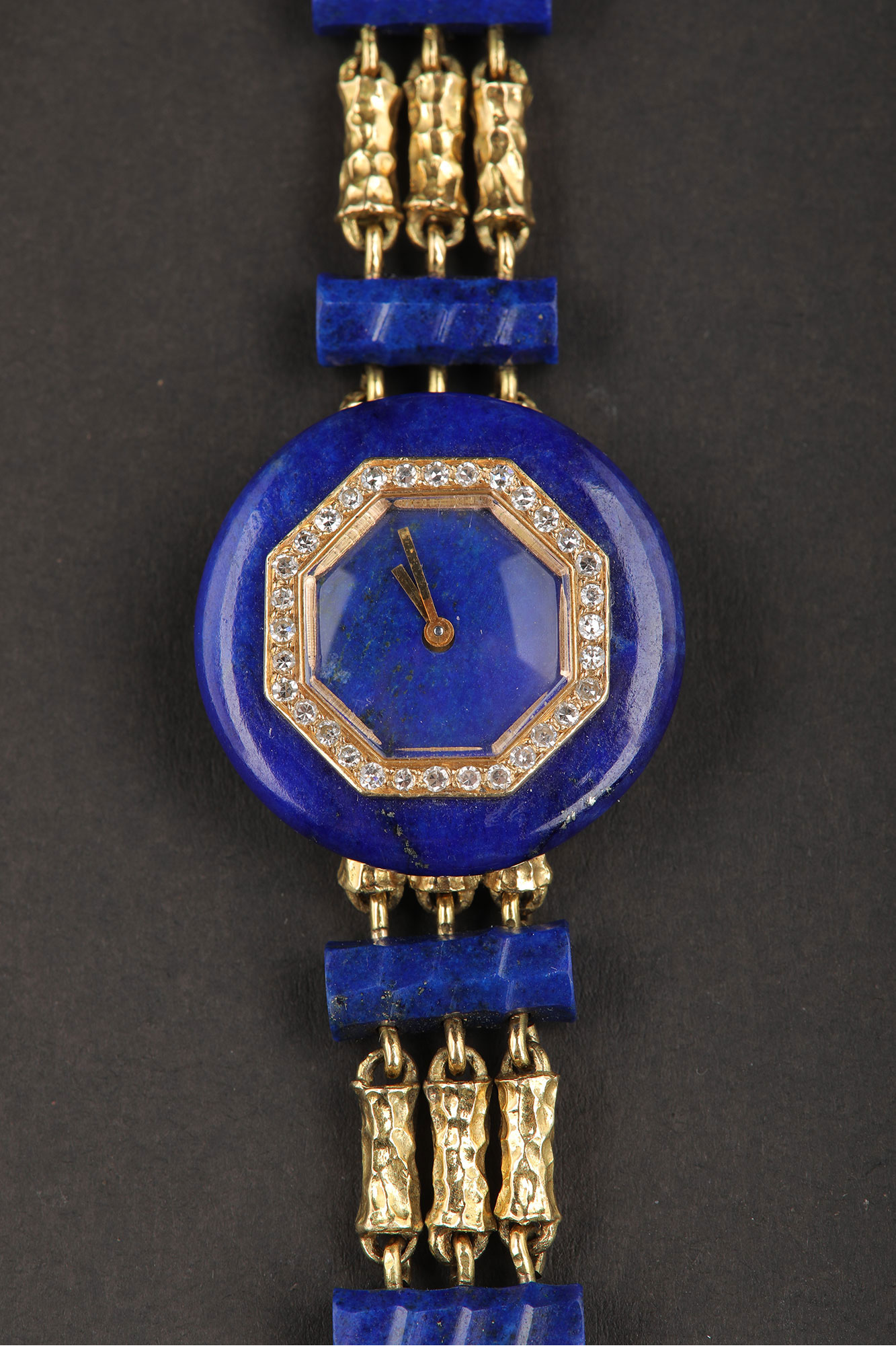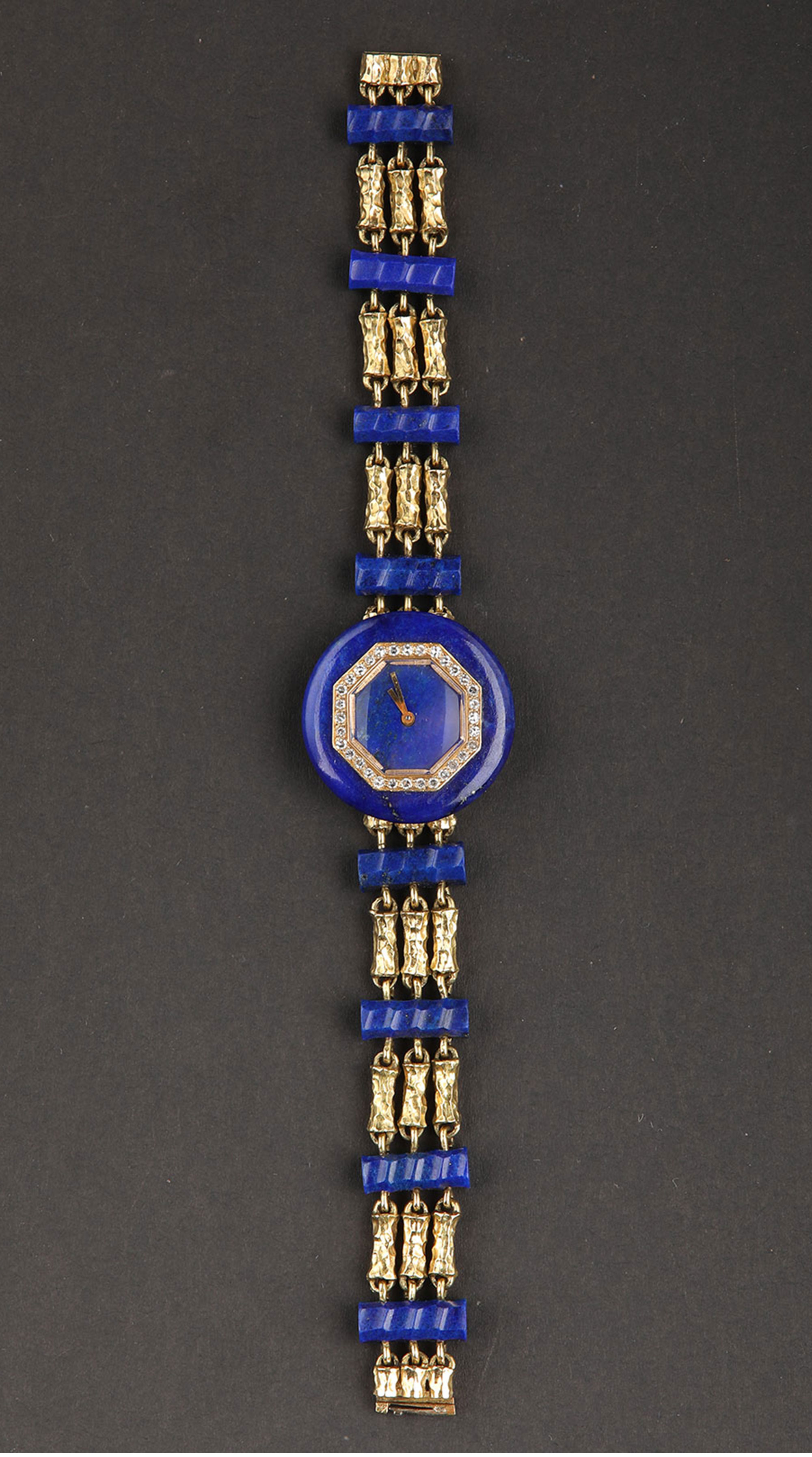 1950年代法国出品18K黄金镶嵌钻石青金石女士腕表