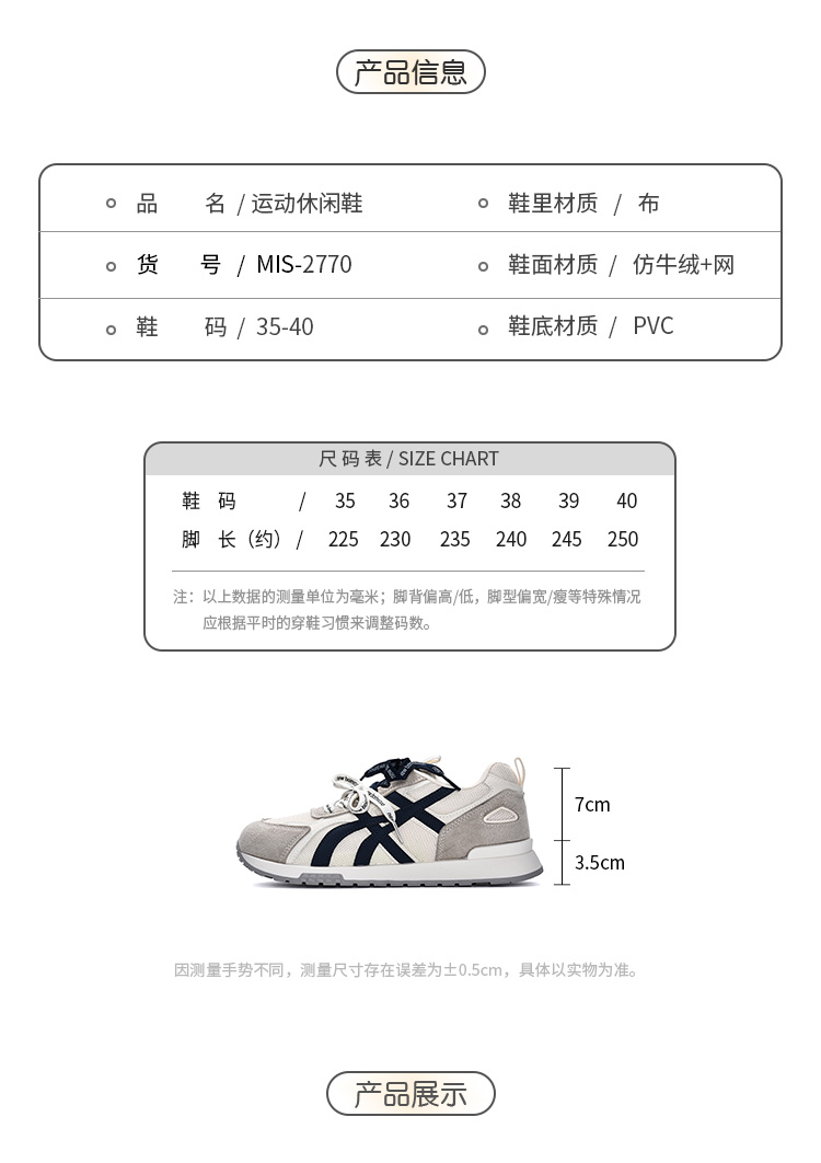 【YW】无忧购 网面女款休闲运动百搭时尚德训鞋 MIS-2770(截单后3-5天发货)