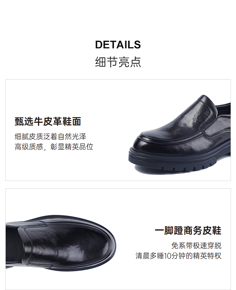 4楼千百度2025质感牛皮鞋面免系带一脚蹬商务皮鞋男单鞋A25431696